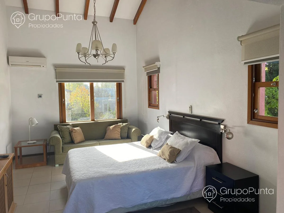 Excelente casa en alquiler anual en barrio privado- zona de colegios.Cuenta con 4 dormitorios en total; 3 dormitorios en planta alta, 2 baños (uno de ellos en suite), master suite con vestidor y terazza.En planta baja cuenta con living, cocina completamente equipada con comedor diario, toilette, dormitorio de servicio completo, lavadero.Amplio jardin completamente cercada con un gran privacidad, piscina, y patio techado con parrillero.Calefaccion por loza radiante sectorizada a gas.Aire acondicionada en cada ambiente.Riego automatico.