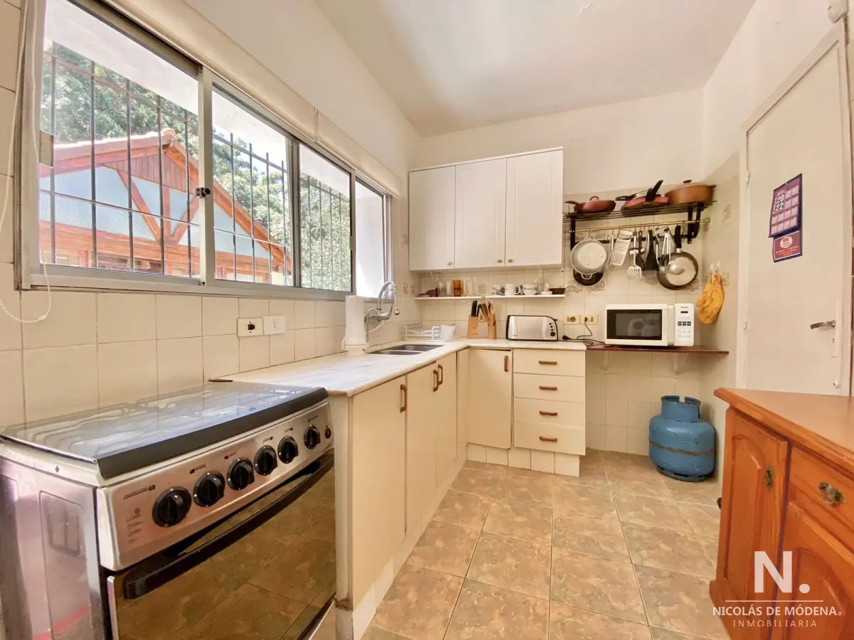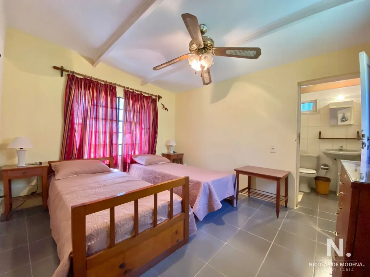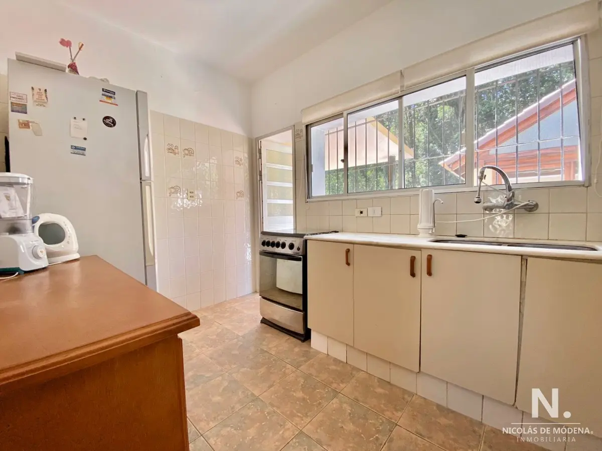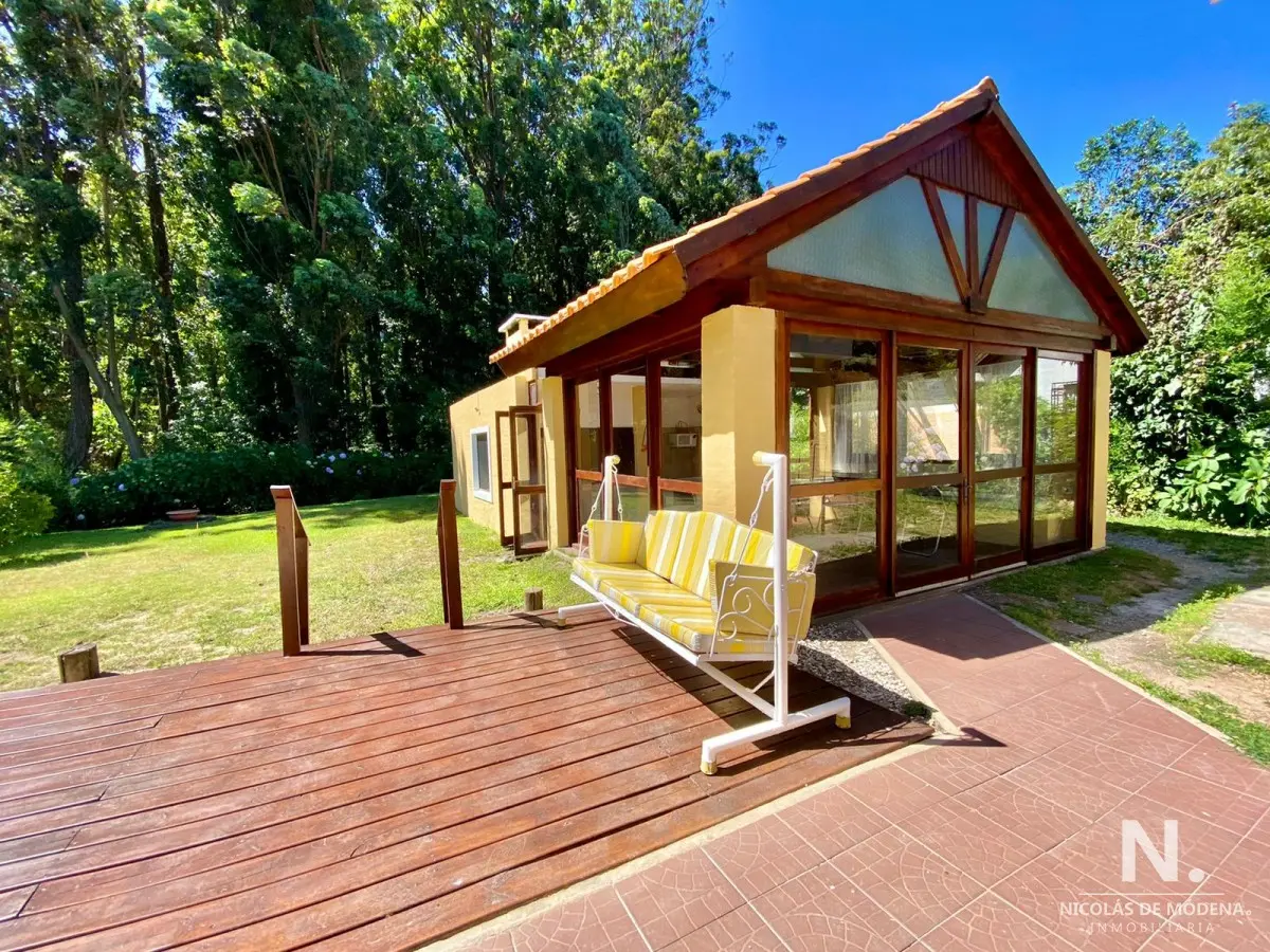 La propiedad consta de un dormitorio en suite, dos cuartos, un baño y cocina muy bien equipada, un living comedor con un estilo super cálido con estufa a leña. En el fondo se encuentra el parillero cerrado y una pieza amplia con baño en suite, un gran jardin lleno de verde, ideal para jugar con mascotas o hacer actividades recreativas con los niños., ubicado en un barrio super tranquilo y rodeado de naturaleza, a pocas cuadras de la playa y próximo a zonas comerciales podras contar con variedad de servicios a disposición, ideal para vivir o vacacionar .