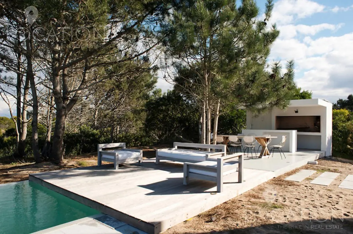 Piscina, deck y parrillero, lavadero, garage para tres autos.