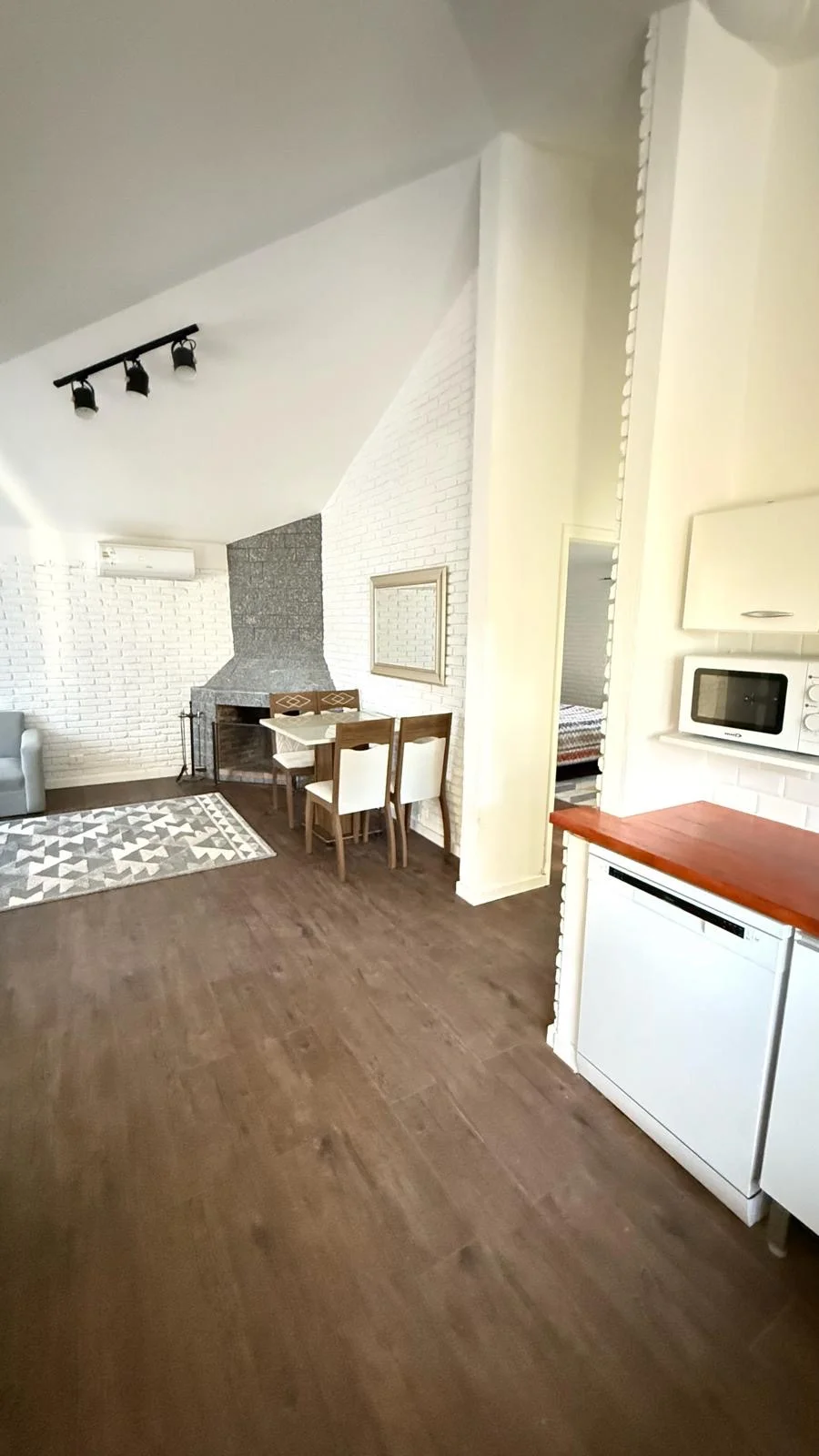 Distribución: 1 dormitorio + cocina integrada con sala de estar