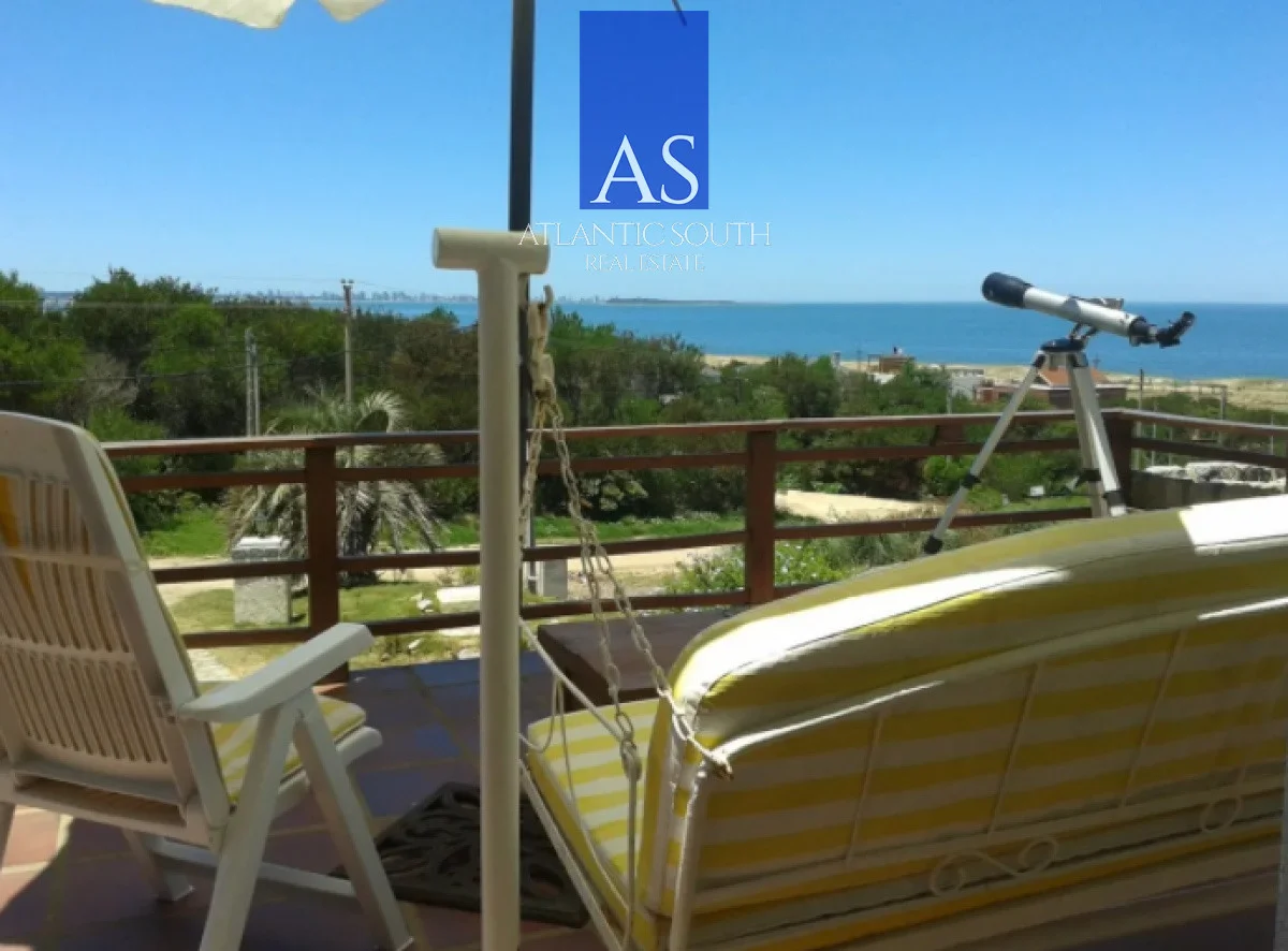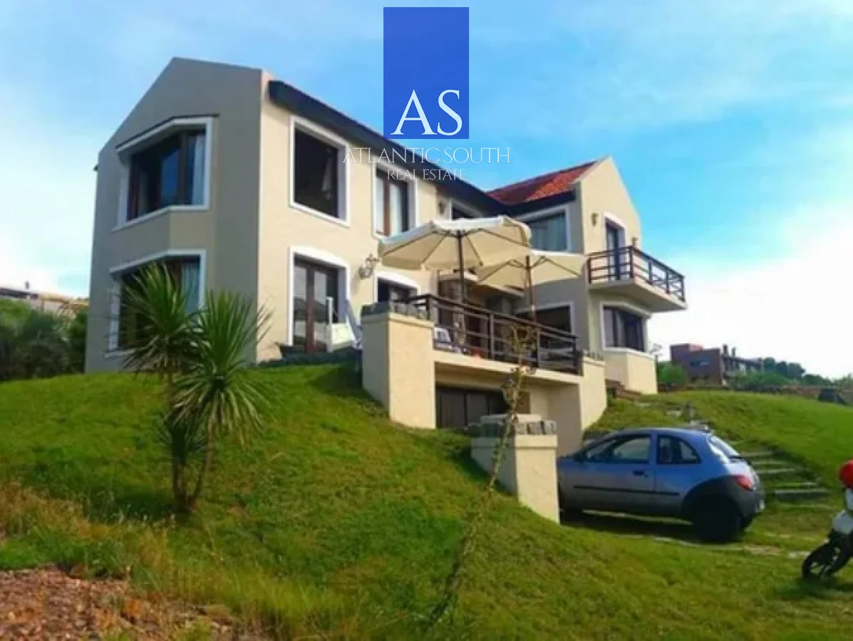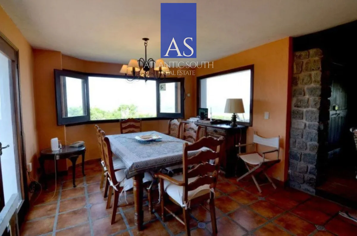 Casa frente al mar playa las Grutas sobre la sierra de Punta Ballena, vistas espectaculares a toda la bahía de Punta del Este e isla de Gorriti, Planta baja: Recibidor, gran Living con estufa a leña vista al mar y aire acondicionado, Comedor amplio con vista a la península y aire acondicionado , Cocina completa, horno gas, heladera con freezer, microondas y demás electrodomésticos, toilette social, lavadero con lavarropas, Planta Alta : Master suite de dos plazas con vista al mar con aire acondicionado y baño, biblioteca con balcón con vista a la península, dormitorio dos plazas con balcón, aire acondicionado y vista a la península, dormitorio de huéspedes con dos camas singles, baño completo, dormitorio individual con aire acondicionado o escritorio . Subsuelo : Garage y cava de vinos , Fondo : alero techado de quincho con mesa de madera y bancos, horno a gas de pizza, deck de madera con jacuzzi para 4 personas, parrillero exterior para 8 personas . Ideal casa para vacaciones de invierno o verano en un entorno natural, con todas las comodidades, Direct TV , WI FI , Alarma. Cámara video vigilancia Referencia Interna : Tera-1565