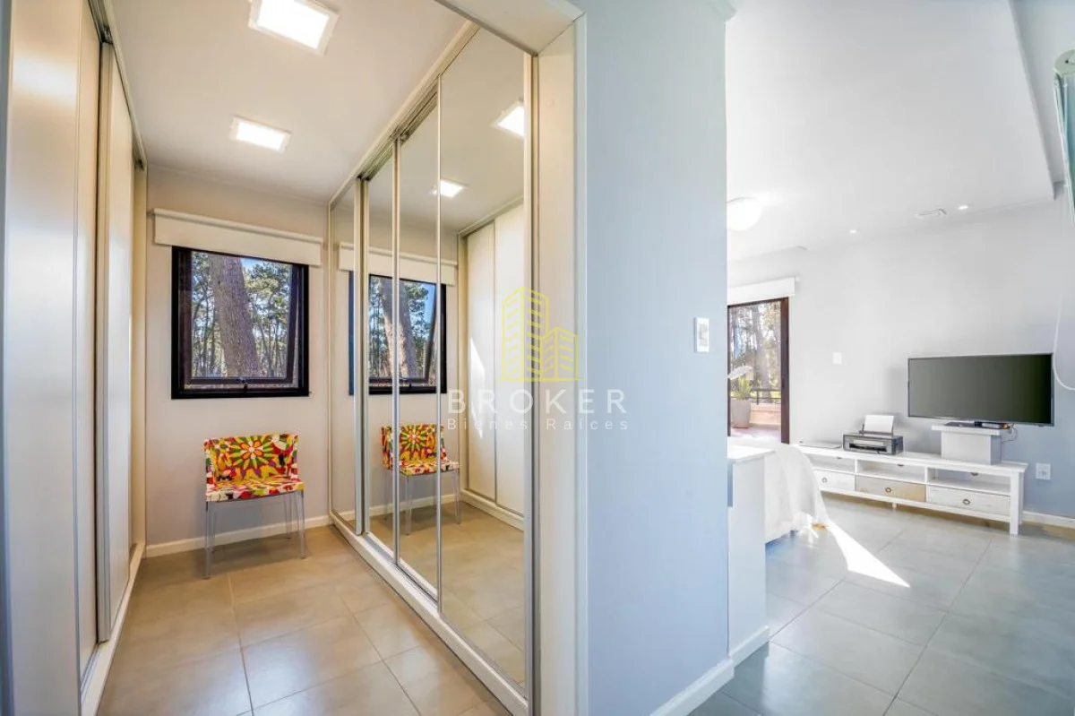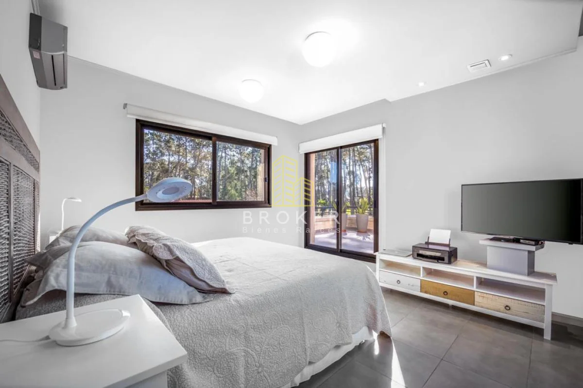 Hermosa y amplia casa en venta en barrio privado a 300 metros del mar. Cuenta con 3 dormitorios, principal en suite con vestidor y terraza, 2.5 baños, parrillero, garita de guardia, salón de usos múltiples, clubhouse, gym, vestuarios, cancha de tennis y padel, piscinas abiertas para grandes y chicos, plazoletas con pérgolas y banco de plaza, subestación eléctrica, casa de encargada con vivienda permanente y cocheras de cortesía dentro y fuera del barrio.