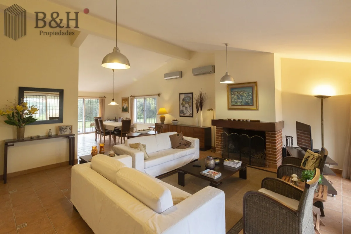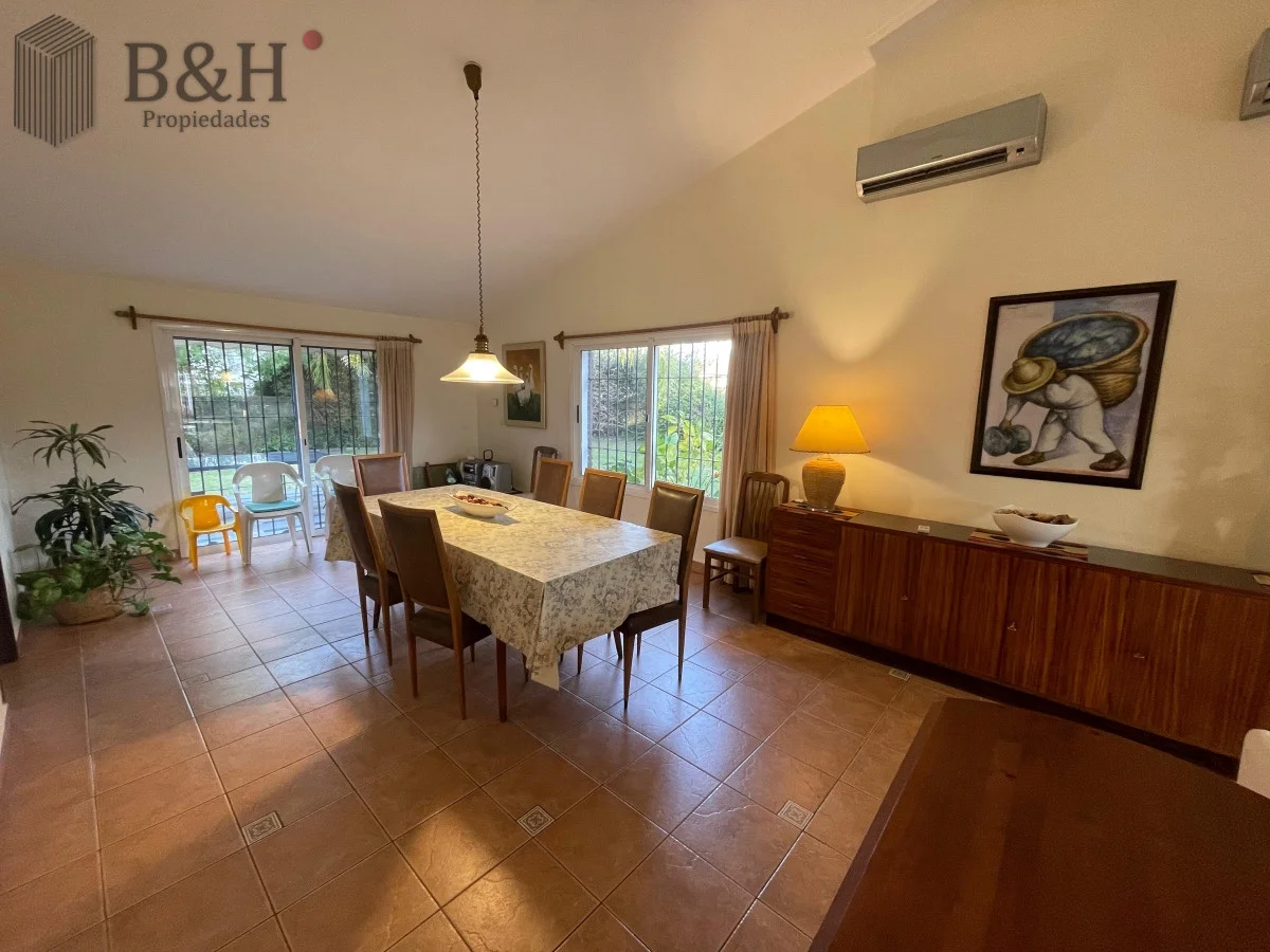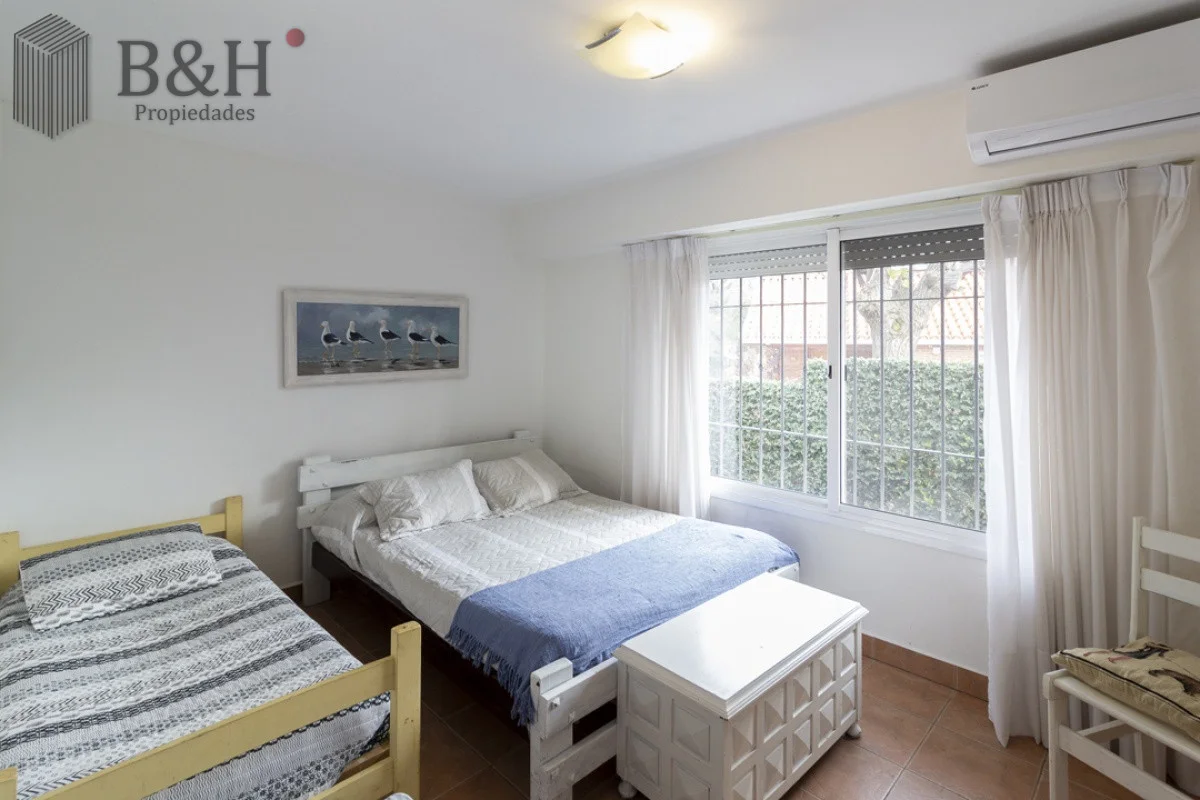 4 dormitorios, 2 en suite, 3 baños, losa radiante mas aires acondicionado en todos los dormitorios. lavarropas y aire acondicionado. Todo bien equipado, mas Bungalow independiente de la casa para servicio o para chicos, 2 ambientes con camas cuchetas, baño completo con calefón, lavarropas y aire acondicionado. Todo bien equipado.