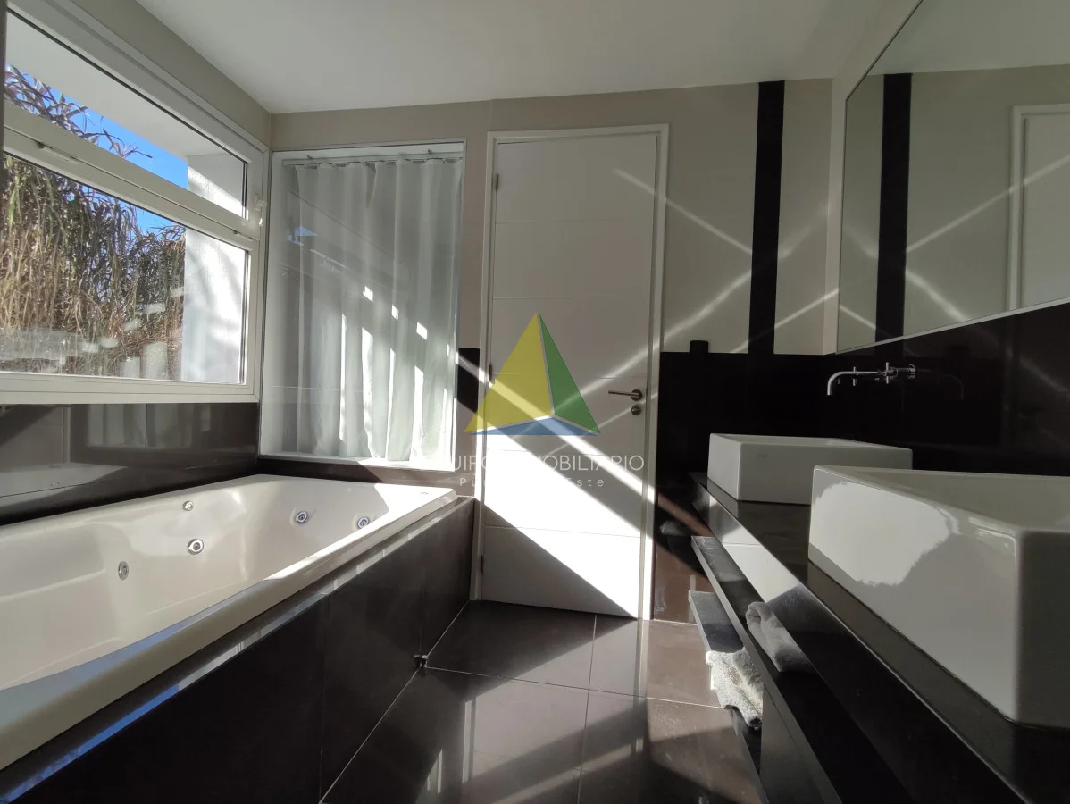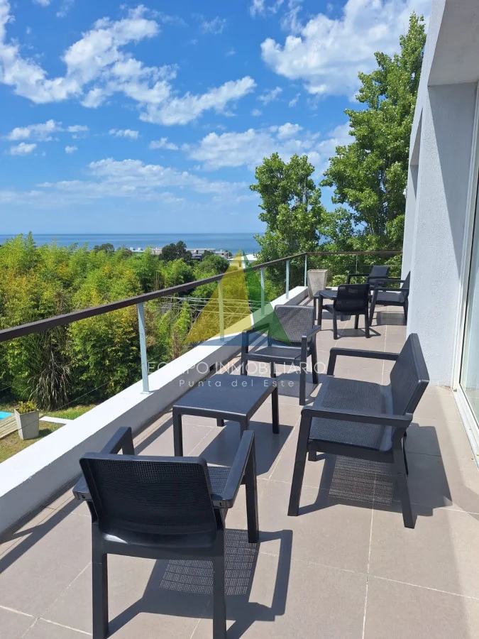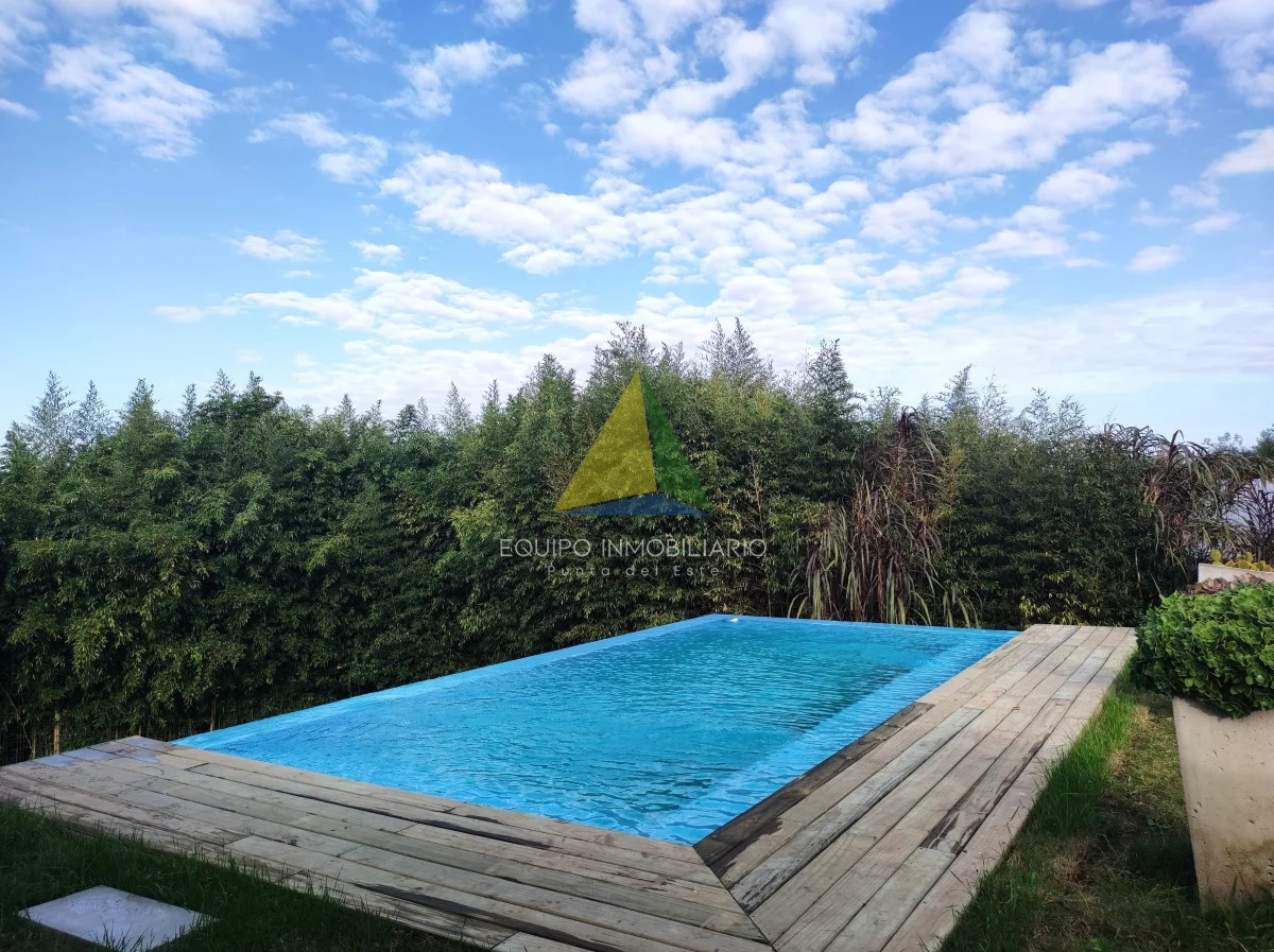 Una casa de la mas alta calidad constructiva con paredes dobles, aberturas de PVC alemán con vidrio doble, techo de hormigón, una casa con terraza con vista al mar, la isla Gorriti y la península de Punta del este, una piscina infinita, parrillero techado.