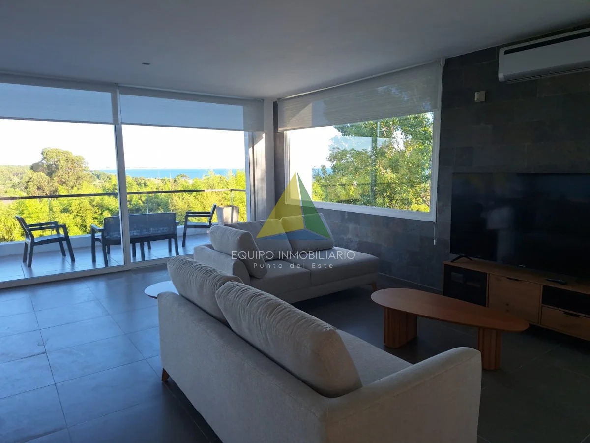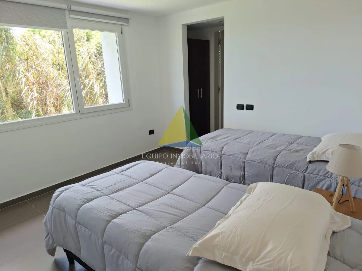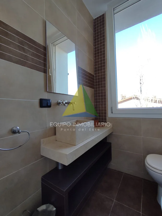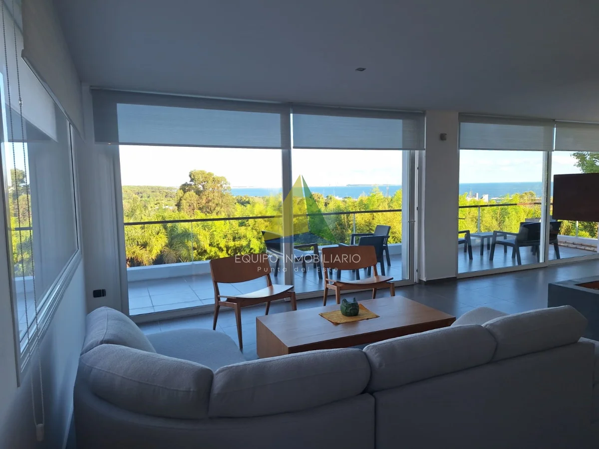 Una casa de la mas alta calidad constructiva con paredes dobles, aberturas de PVC alemán con vidrio doble, techo de hormigón, una casa con terraza con vista al mar, la isla Gorriti y la península de Punta del este, una piscina infinita, parrillero techado.