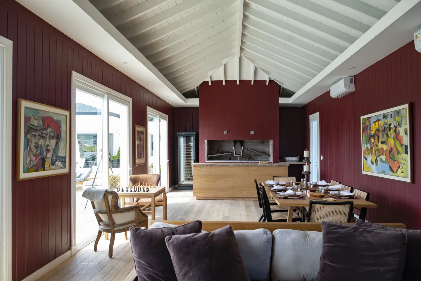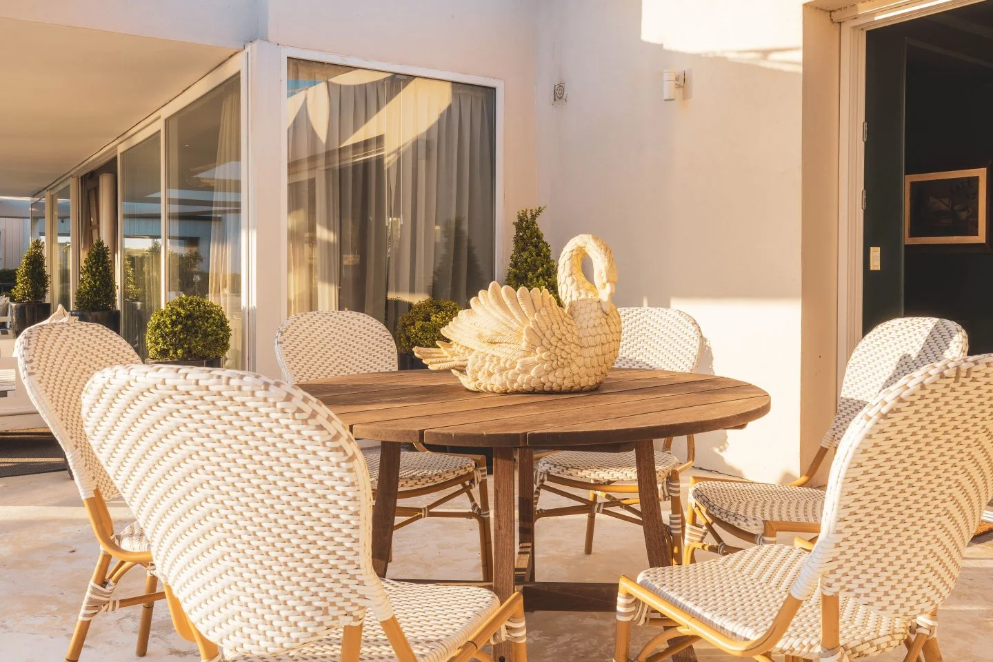 En el exterior cuenta con amplias terrazas, quincho, piscina, fantástico jardín que compone un entorno tranquilo y natural con las vistas paradisíacas al atardecer.
