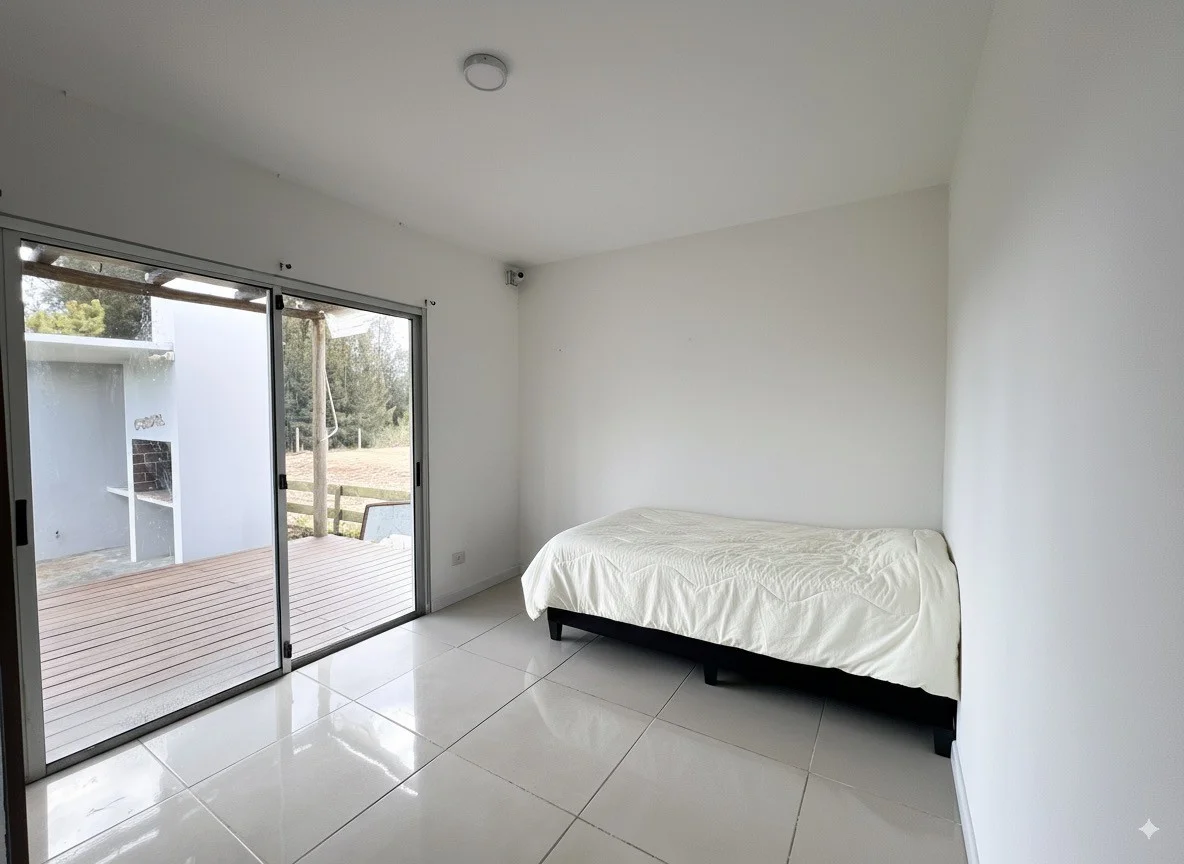 En el corazón de Miramar Acres - El Tesoro, La Barra, se encuentra esta encantadora casa en alquiler anual, ideal para quienes buscan confort y funcionalidad. Con un precio de U$S1.200, esta propiedad se destaca por su amplio jardín y tranquilidad. La casa cuenta con dos dormitorios, un baño, living - comedro y cocina integrada. Los equipamientos son a estrenar como: heladera, cocina a gas, sommier de dos plazas, sommier de una plaza, sillones de tres y dos cuerpos, juego comedor de 4 sillas, mesa ratona y muebles bajo mesada y desayunador.