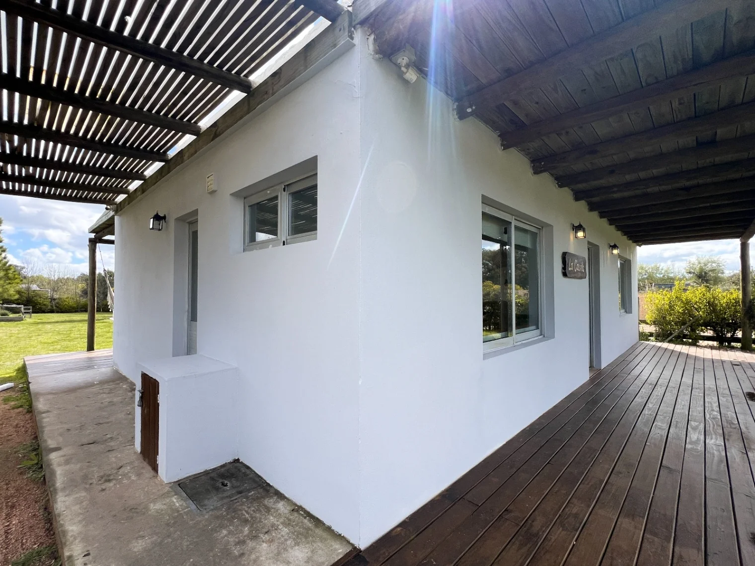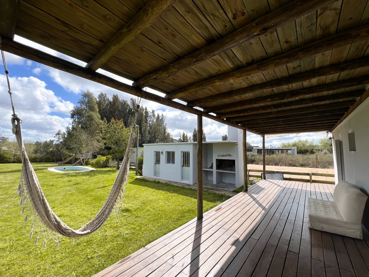 El exterior de la propiedad es igualmente atractivo, con una pérgola y deck tanto al frente como atrás, perfectos para disfrutar de momentos al aire libre. La casa también incluye una huerta, una casa del árbol para los más pequeños, un depósito y un espacio para el armado de un lavadero. El terreno está completamente cercado, brindando seguridad y privacidad, y cuenta con un techo que permite el guardado de vehículos. Entre sus comodidades adicionales, se destacan el aire acondicionado, estufa de alto rendimiento a leña y piscina. Los dormitorios cuentan con placards y espejos.