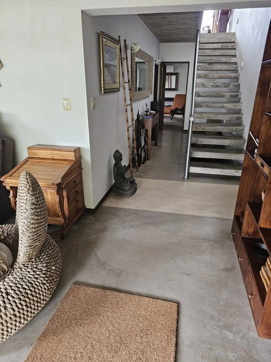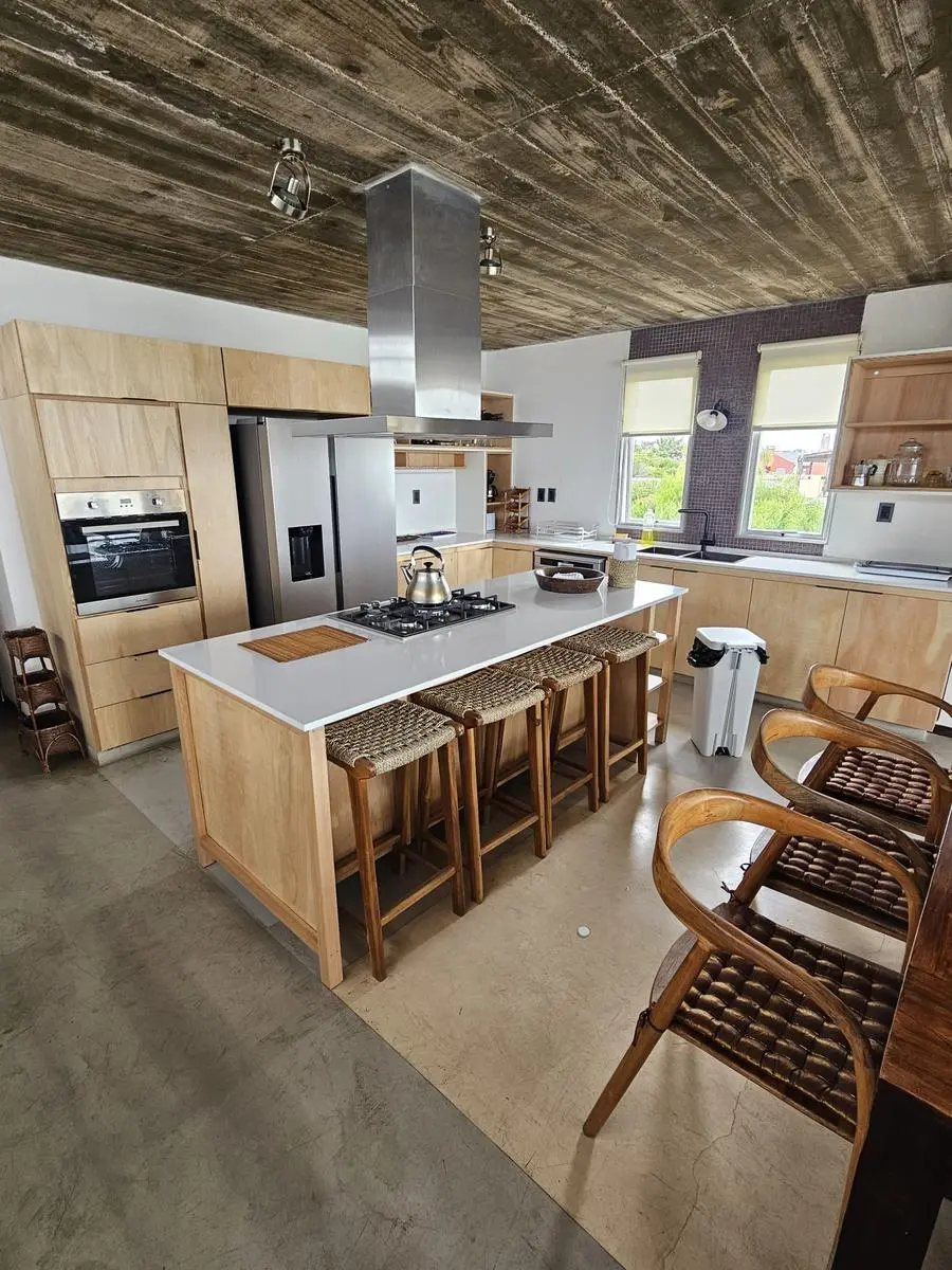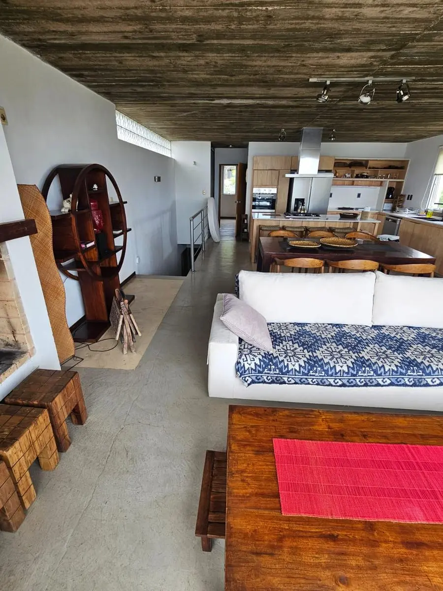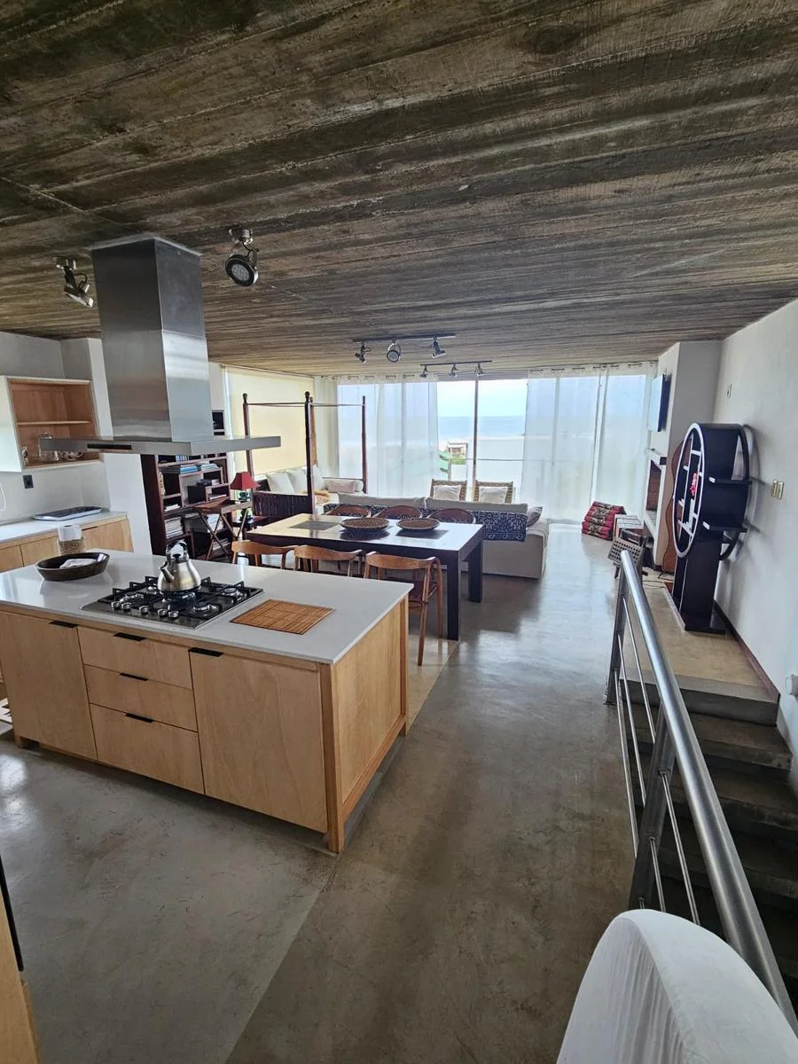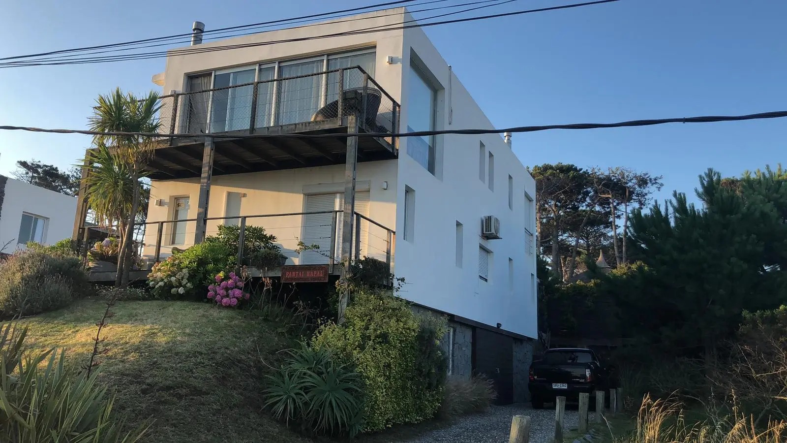 Casa moderna con vista al mar. Construida en 3 niveles. En planta alta tiene el living comedor con moderna cocina integrada y una suite. En planta baja, dos dormitorios en suite muy luminosos. Después en el nivel del garage, cuenta con otro dormitorio con un baño. Galería techada piscina y parrillero .
