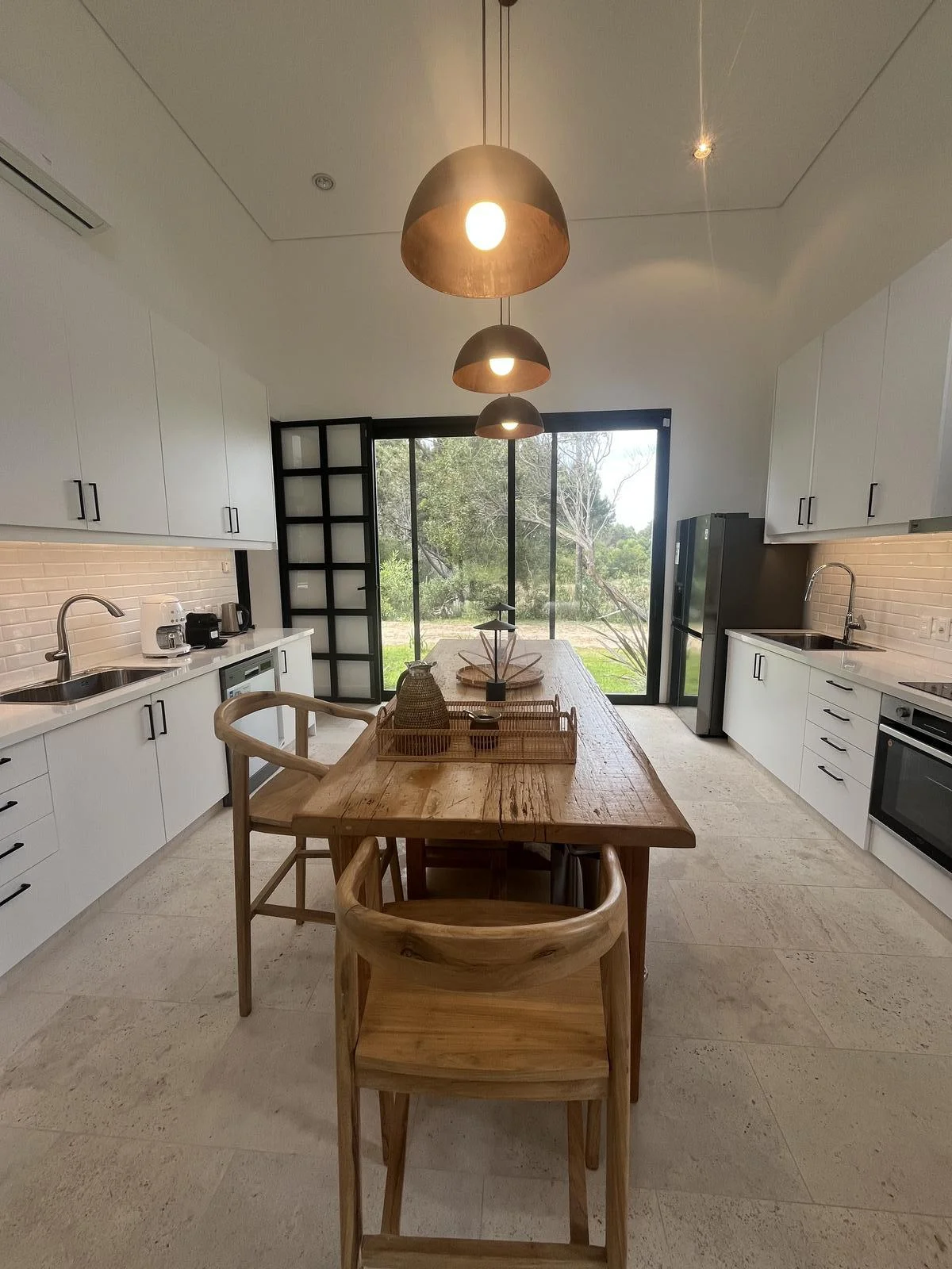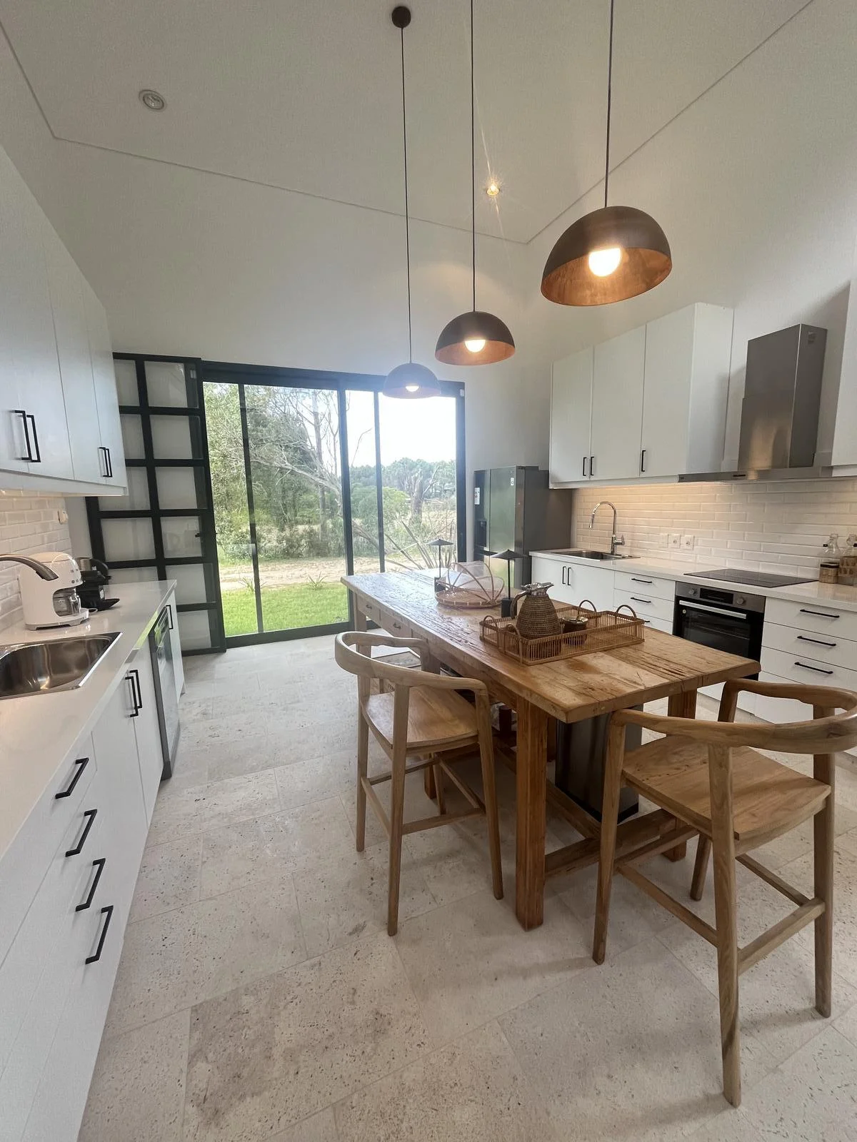 The second house offers a beautiful living and dining area with a semi-integrated kitchen and four comfortable suites.
