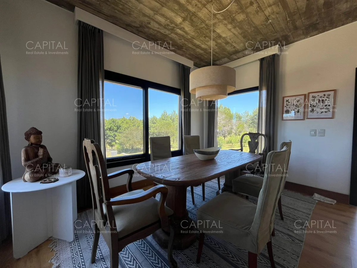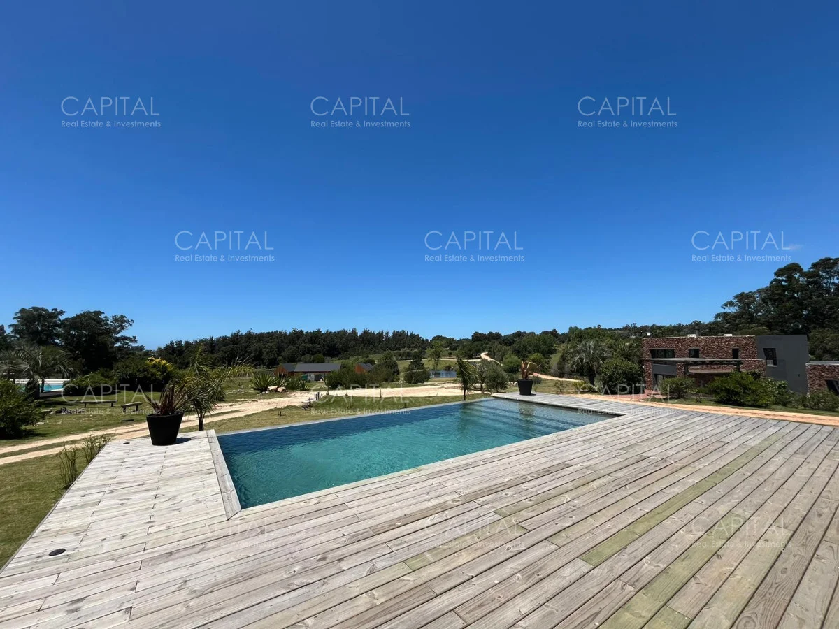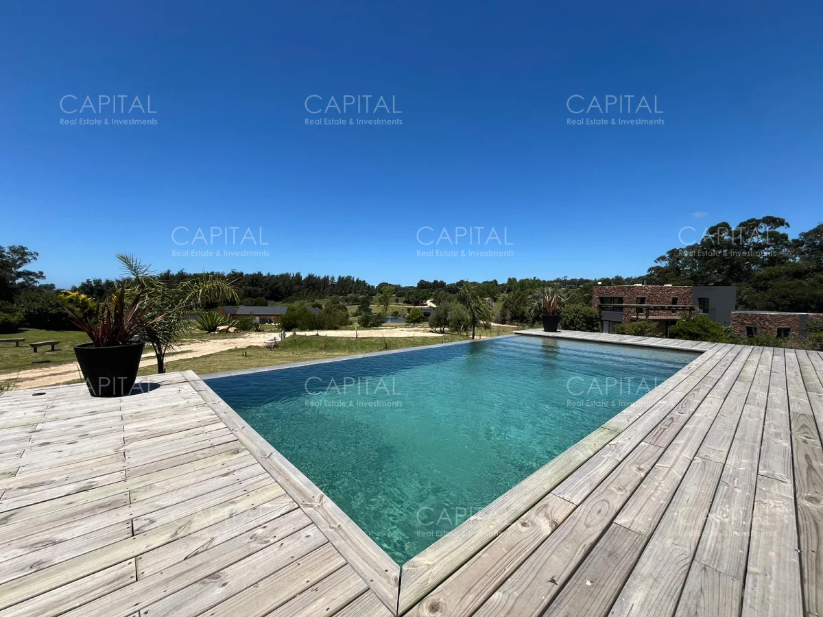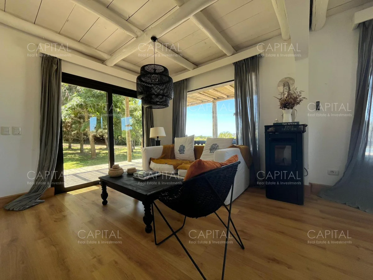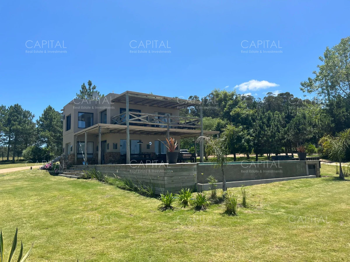 Esta moderna casa de estilo minimalista se encuentra dentro de un exclusivo barrio privado a solo 1km del centro de Manantiales, Mangrullos de punta piedra. Casa moderna, de ambientes amplios y luminosos. Desarrollada en dos plantas, cuenta con una gran recepción, un gran living y comedor, con grandes ventanales. Cuenta con 4 dormitorios lo cual 2 son en suite. Se puede apreciar un gran jardín y terraza externa con parillero para disfrutar con familia y amigos. No dude en consultar por mas información.