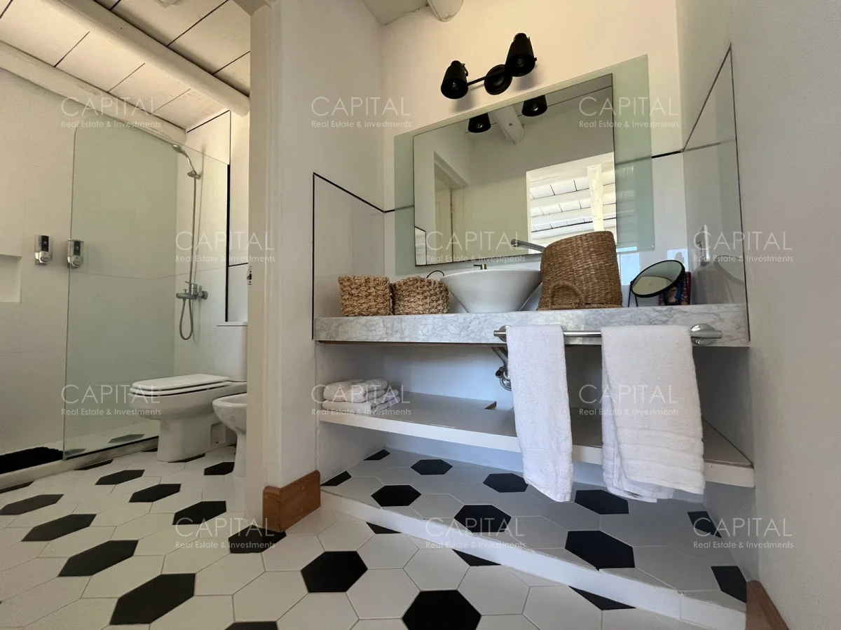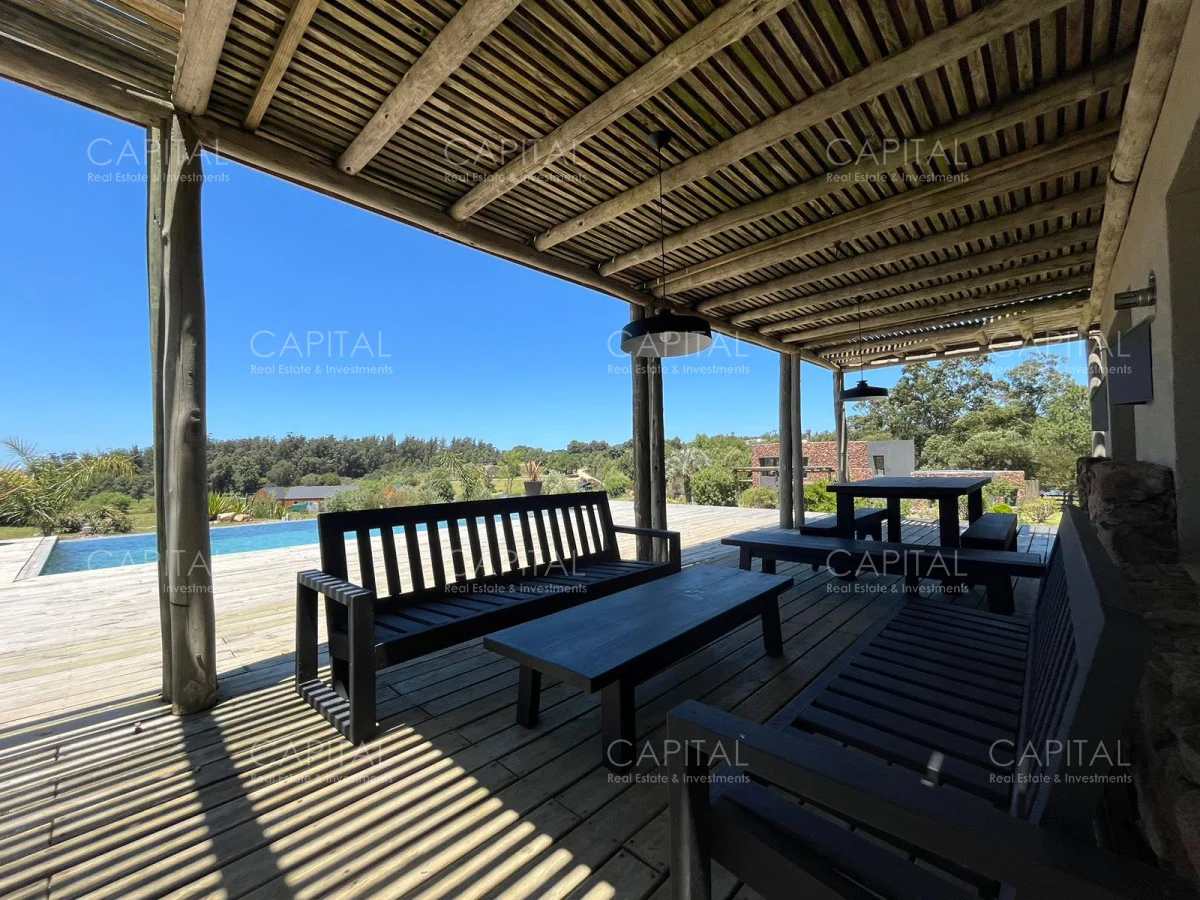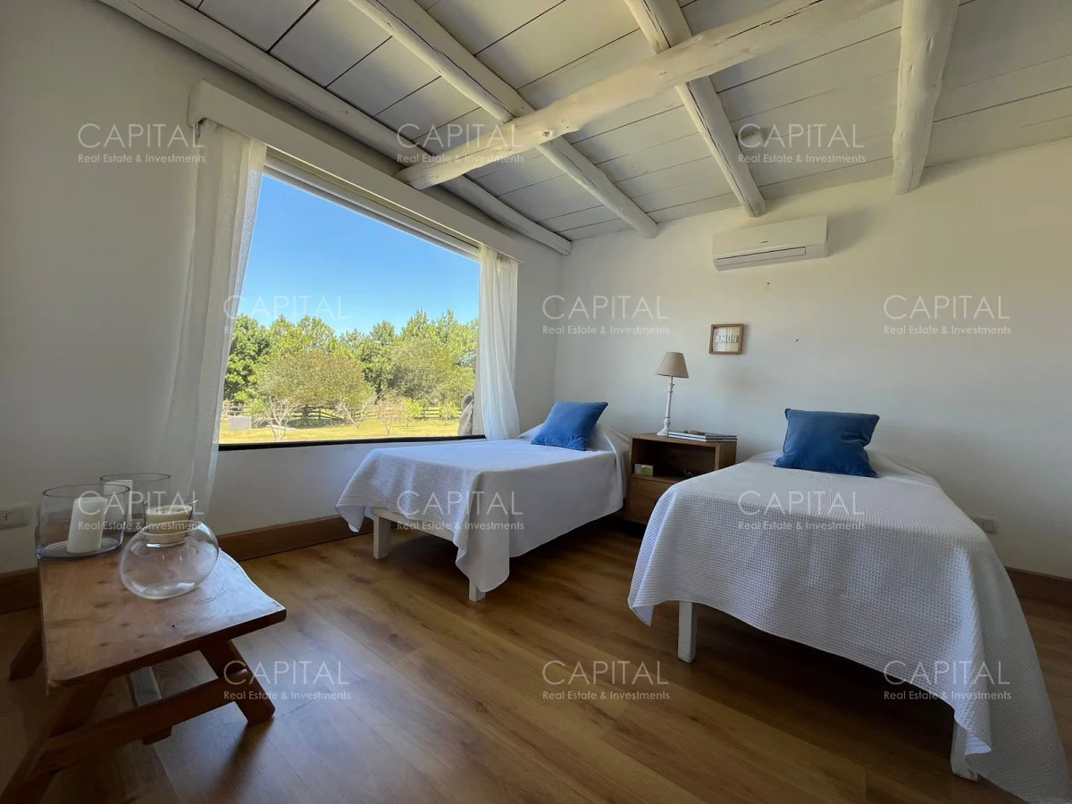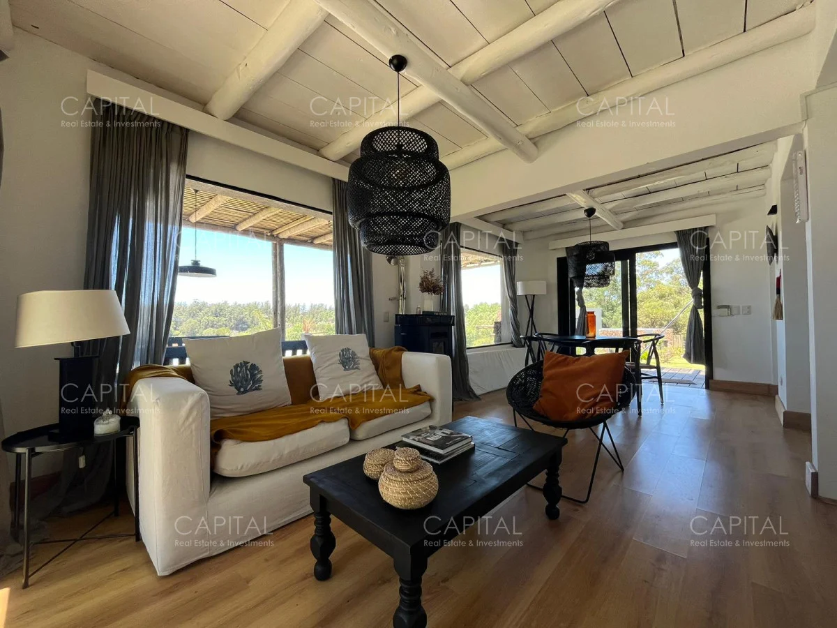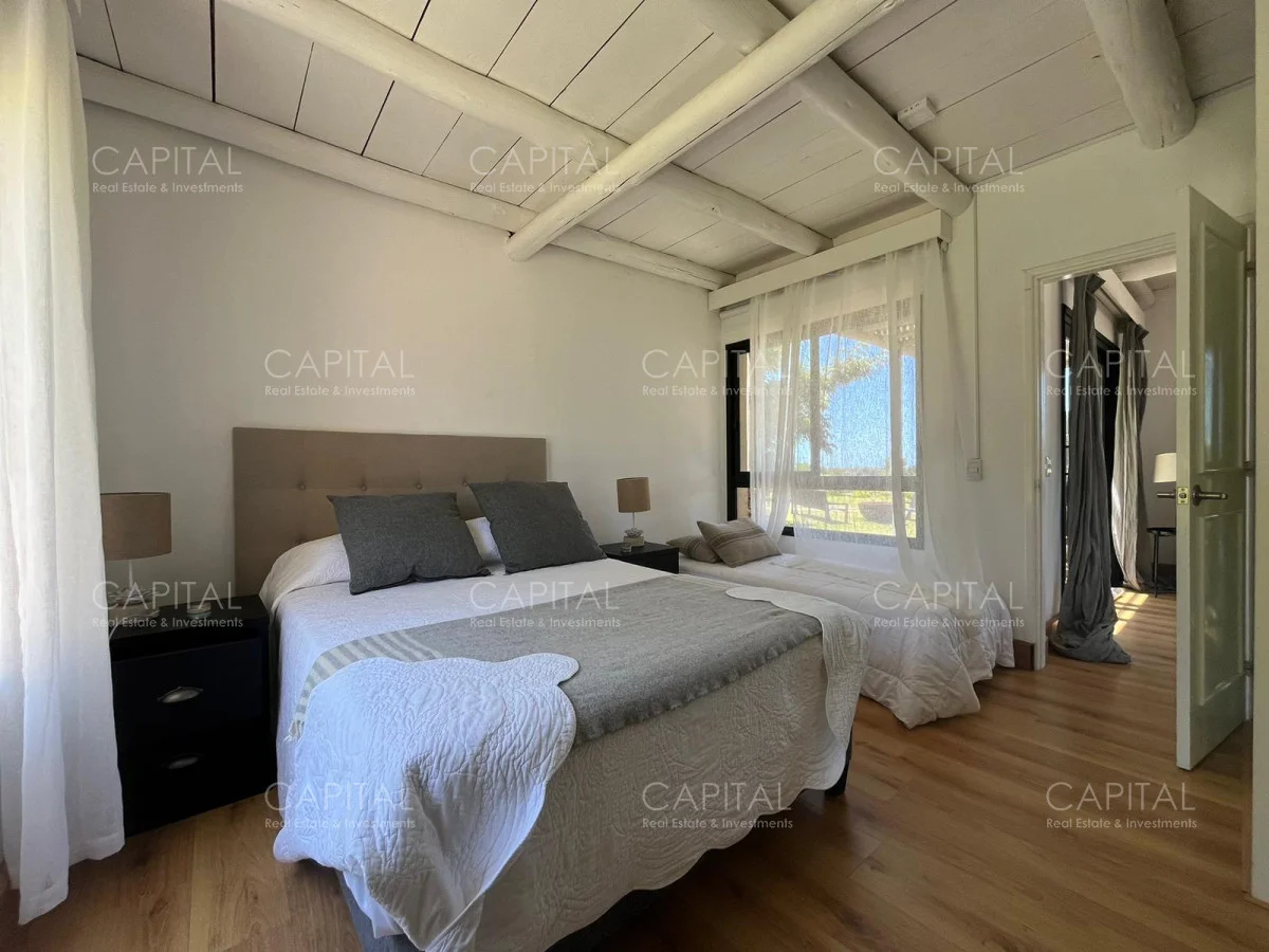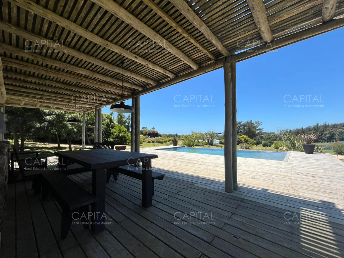 Esta moderna casa de estilo minimalista se encuentra dentro de un exclusivo barrio privado a solo 1km del centro de Manantiales, Mangrullos de punta piedra. Casa moderna, de ambientes amplios y luminosos. Desarrollada en dos plantas, cuenta con una gran recepción, un gran living y comedor, con grandes ventanales. Cuenta con 4 dormitorios lo cual 2 son en suite. Se puede apreciar un gran jardín y terraza externa con parillero para disfrutar con familia y amigos. No dude en consultar por mas información.