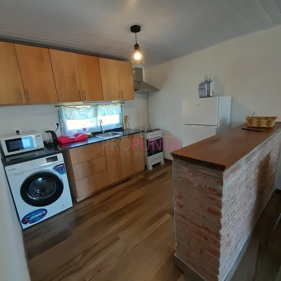 La propiedad cuenta con dos acogedores dormitorios, perfectos para descansar después de un día de playa. Un baño funcional y super amplio y una cocina semi-integrada con barra desayunador que se conecta con un luminoso living-comedor, creando un ambiente cálido y familiar. Cada rincón de esta casa ha sido diseñado para ofrecer comodidad y un estilo de vida relajado.