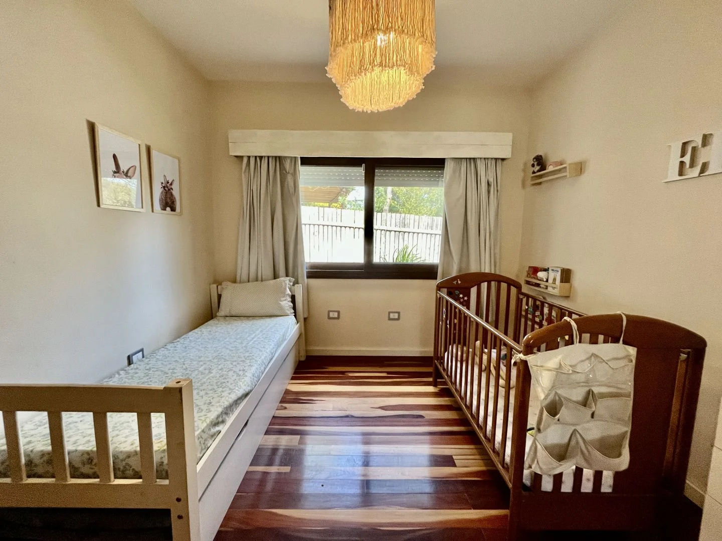 En la planta baja, hacia el lado derecho de la casa, encontrarás un dormitorio con baño y lavadero, seguido de otro dormitorio con dos camas en la planta superior. Hacia el lado izquierdo de la casa, separados por una puerta que brinda privacidad y tranquilidad, se encuentran los tres dormitorios restantes. El dormitorio principal, orientado hacia el jardín, cuenta con vestidor y baño privado, mientras que los dos dormitorios restantes comparten un baño.