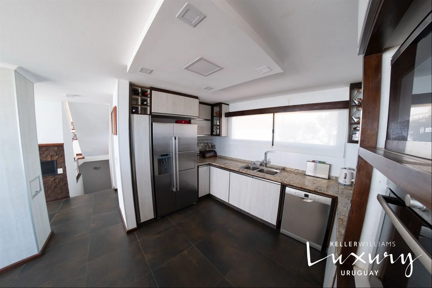 * Amplio living comedor con estufa y cocina.
