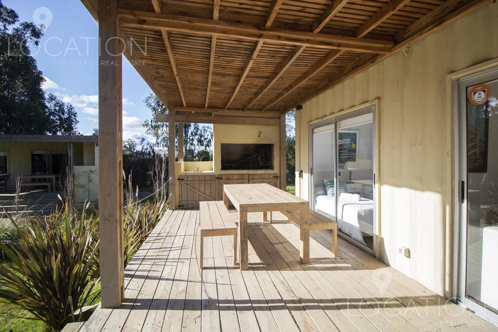 Sobre un lote de 420m², se encuentra esta propiedad con deck totalmente cubierto, donde se encuentra la parrilla con comedor diario y living., el modulo se encuntra por arriba del nivel de calle y muy proximo a ella.
