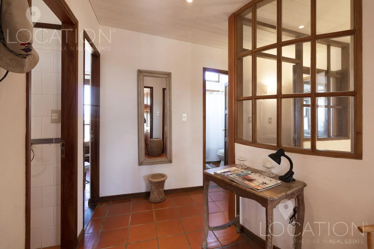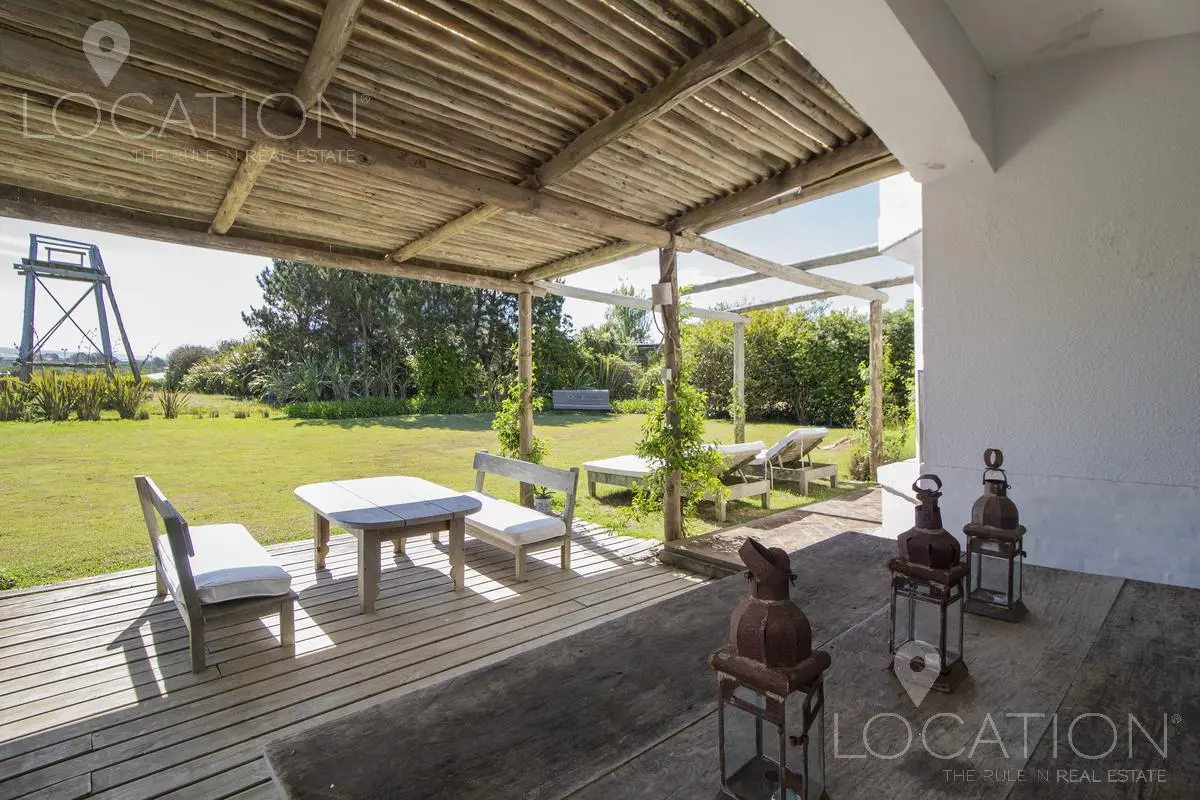 En planta baja, living con amplios ventanales hacia ambas playas, comedor y cocina independiente, rincon al este como playroom, dependencia de servicio y despensa.