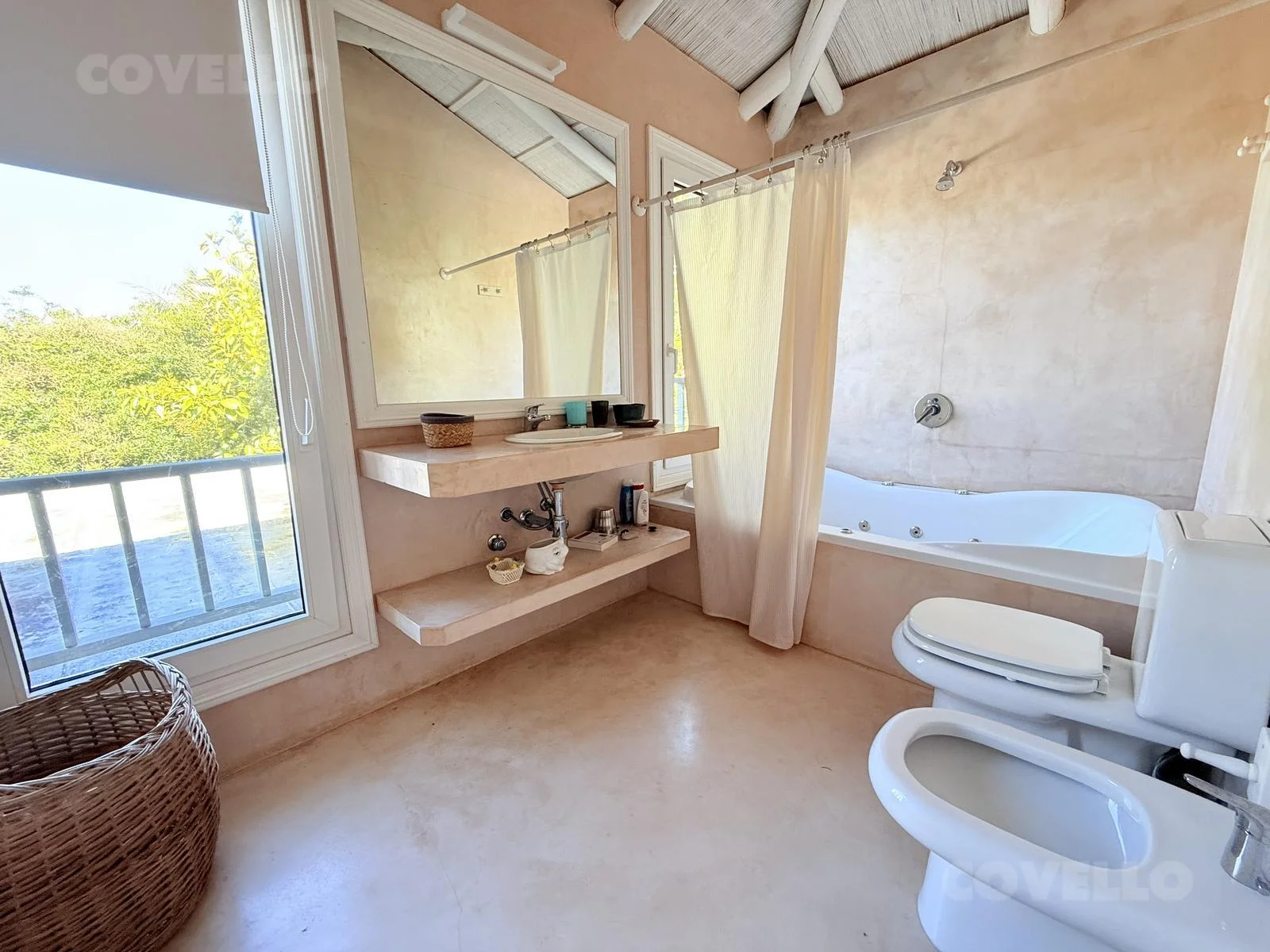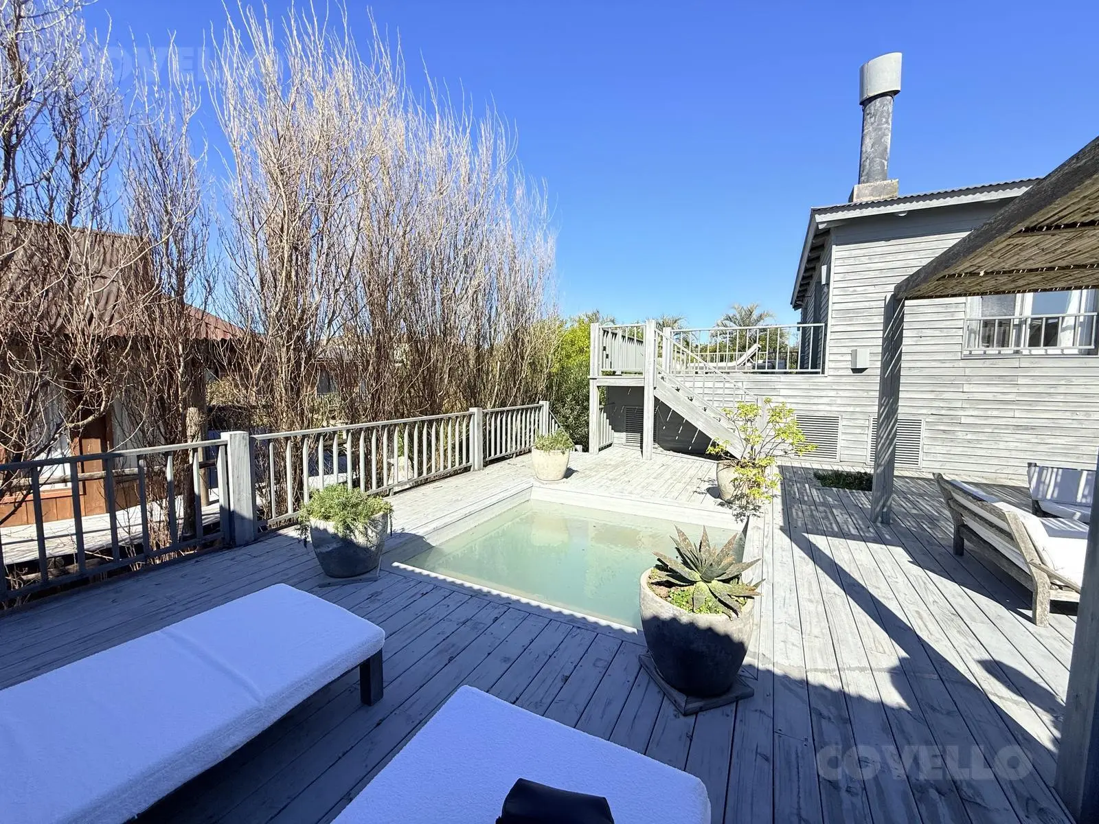En el exterior, se complementa con piscina, solárium, rodeados de un entorno natural único, con la ventaja de estar a metros de la playa y del mejor ambiente de José Ignacio.
