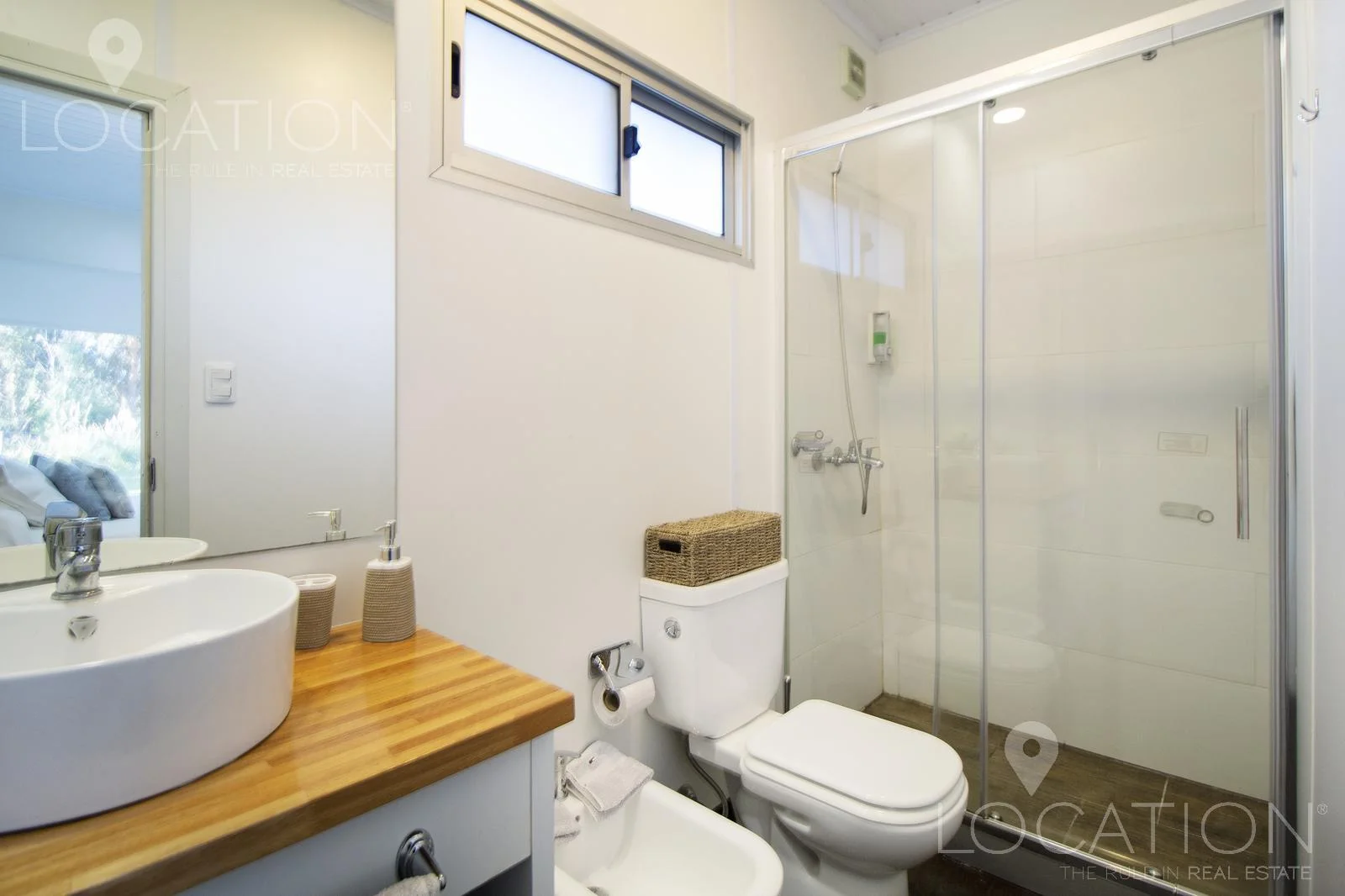 amplios ventanales corredizos conectan con la casa y un acogedor, cocina americana con living y comedor integrados. Buen lugar de guardado. Dormitorio en suite . Todos los ambientes con split.