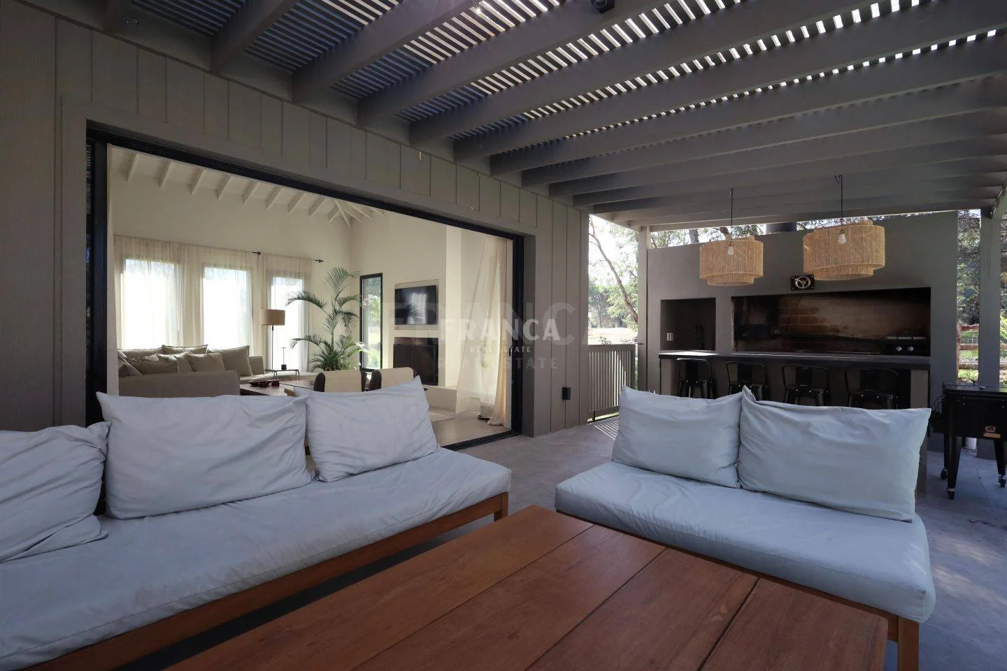 Casa en venta en La Barra, Maldonado Descubre esta excepcional propiedad en el prestigioso barrio cerrado y club de campo Don Miguel, del mismo visionario desarrollador de Narbona. Ubicada en un entorno privilegiado, a solo minutos del centro de La Barra, esta casa ofrece un ambiente tranquilo y seguro para disfrutar de la vida en Punta del Este. Con una superficie total de 1000 m² y 280 m² construidos, la casa se distribuye de manera funcional y cómoda. Cuenta con una master suite, dos dormitorios más en suite, y un cuarto de servicio, lo que la hace ideal para familias grandes o para quienes desean contar con un espacio adicional. El amplio y luminoso living-comedor tiene acceso directo al exterior, conectando con el jardín y la piscina. La cocina semi integrada es moderna, muy amplia, y está completamente equipada con electrodomésticos nuevos y de alta calidad, lo que la convierte en el espacio ideal para quienes disfrutan de cocinar. Además, la propiedad cuenta con losa radiante por bomba de calor, garantizando un ambiente cálido y confortable durante todo el año. En el exterior, el jardín ofrece un amplio espacio verde, ideal para disfrutar al aire libre, mientras que la piscina climatizada, de gran tamaño y con cerco perimetral, es perfecta para los días de sol. La galería techada con parrillero es el lugar ideal para reuniones y momentos de relax. La casa fue diseñada por el reconocido estudio Balut, lo que asegura una distribución funcional y estética, aprovechando al máximo la luz natural. El barrio cerrado Don Miguel cuenta con seguridad 24 horas, gimnasio y club house, ofreciendo un ambiente cómodo y seguro para vivir. . Caracteristicas: COMEDOR, DEPENDENCIA DE SERVICIO, DORMITORIO EN SUITE, LIVING, TOILETTE, VESTIDOR, CONEXI?N A INTERNET, ESTUFA A LE?A, LAVAVAJILLAS, LOSA RADIANTE, PLACARD EN COCINA, PLACARD EN DORMITORIO, AGUA CALIENTE CENTRAL, AGUA CORRIENTE, ALARMA, COCINA, HELADERA, LUZ ELECTRICA, MICROONDAS, SANEAMIENTO, VIGILANCIA, WIFI, BARRIO CERRADO XINTEL (FRO-FRO-1399)