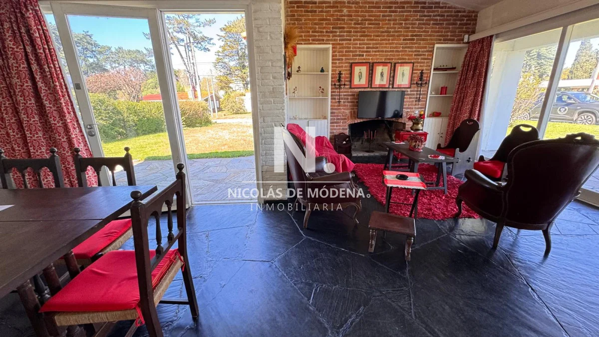 Son 3 dormitorios, 2 baños (1 en suite), cocina comedor, living-comedor con estufa a leña y cochera techada.