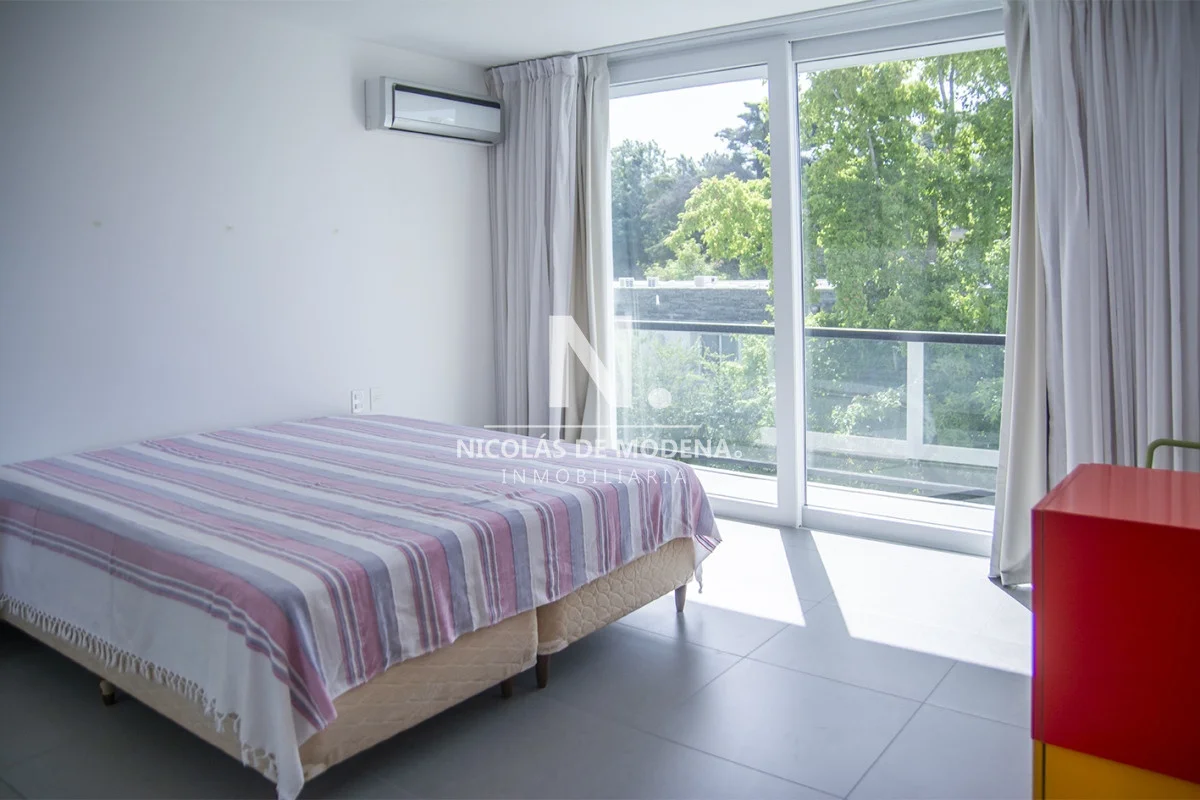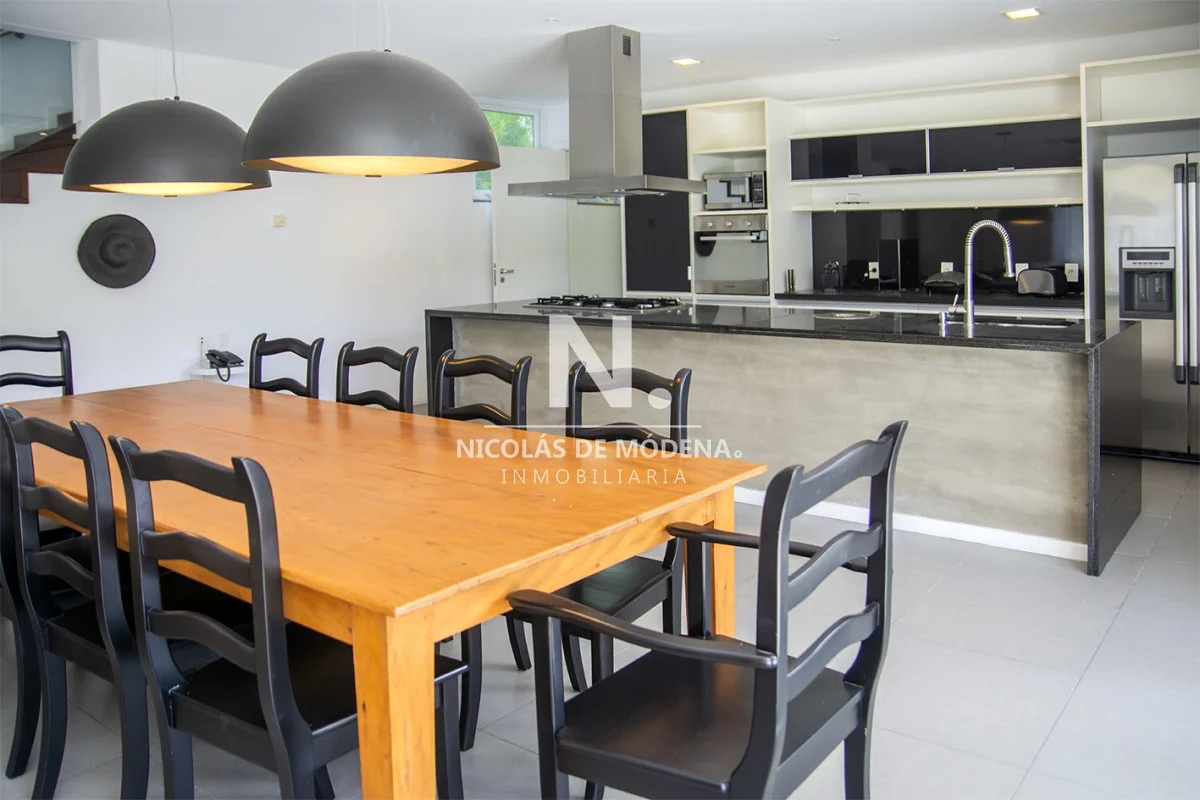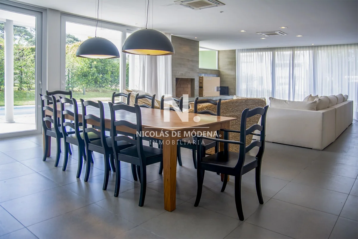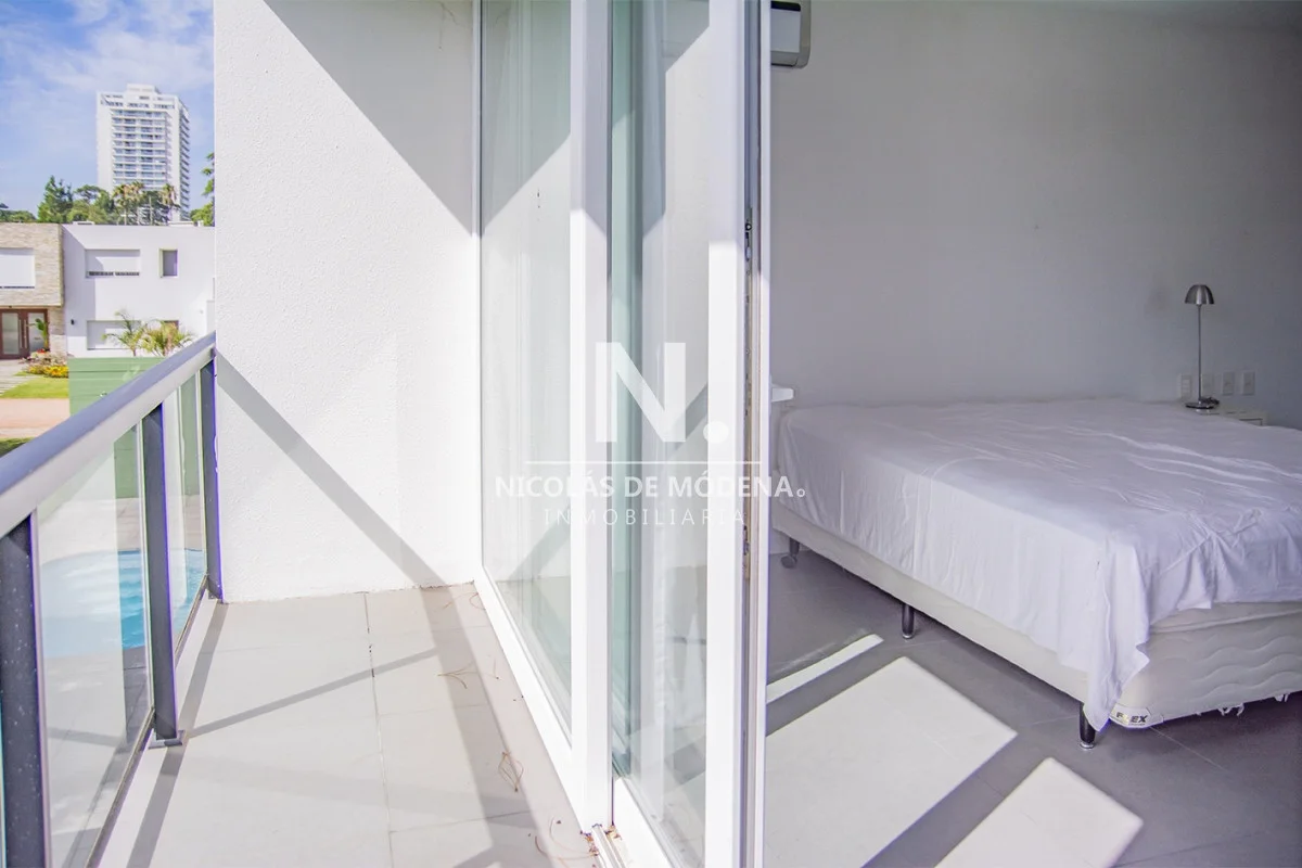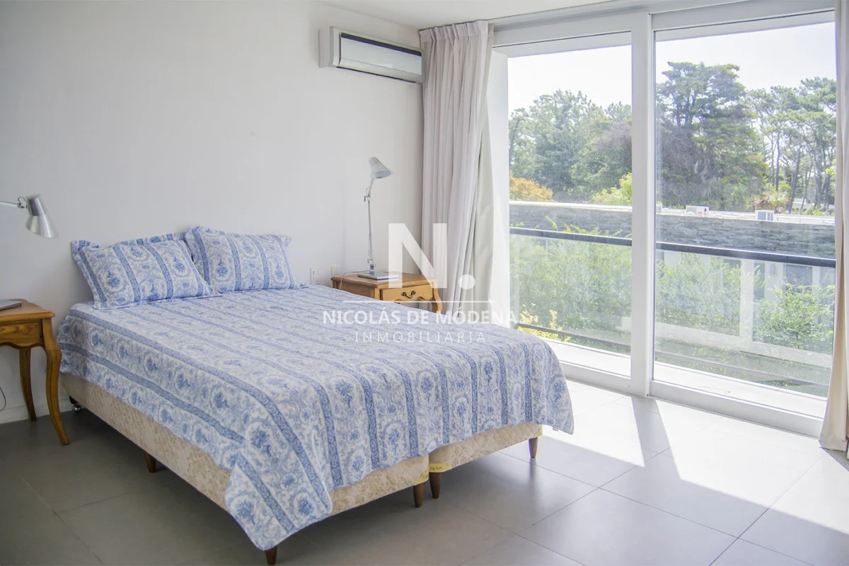 Esta casa en la Mansa, Punta del Este, ofrece una experiencia de alojamiento amplia y lujosa a tan solo 400 metros del mar. Con 5 dormitorios y 5 baños, todos en suite, la propiedad tiene capacidad para alojar a 10 personas con un total de 5 camas, proporcionando un espacio espacioso y cómodo, con una cocina de tipo americana que está equipada con anafe, microondas, lavavajilla, heladera con freezer y horno. El área de living comedor brinda un espacio abierto y acogedor para la convivencia teniendo en cuenta que incluye aire acondicionado y TV,