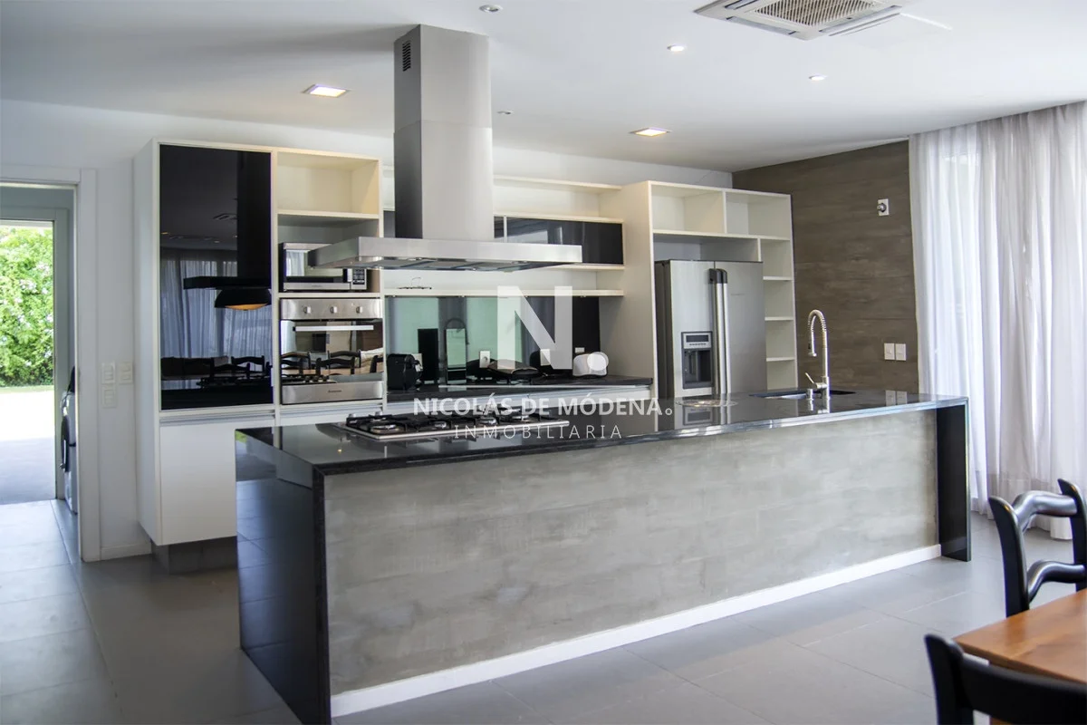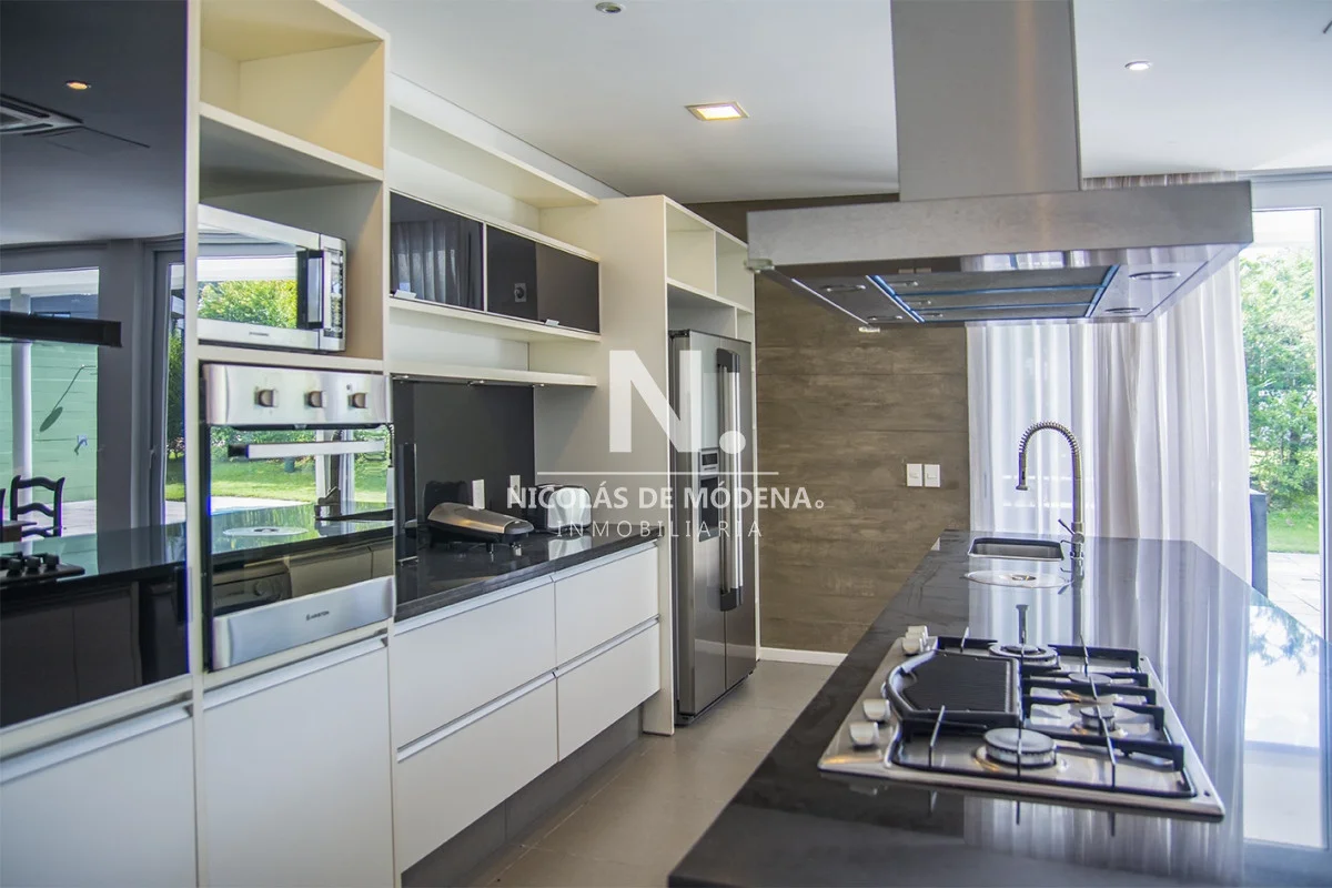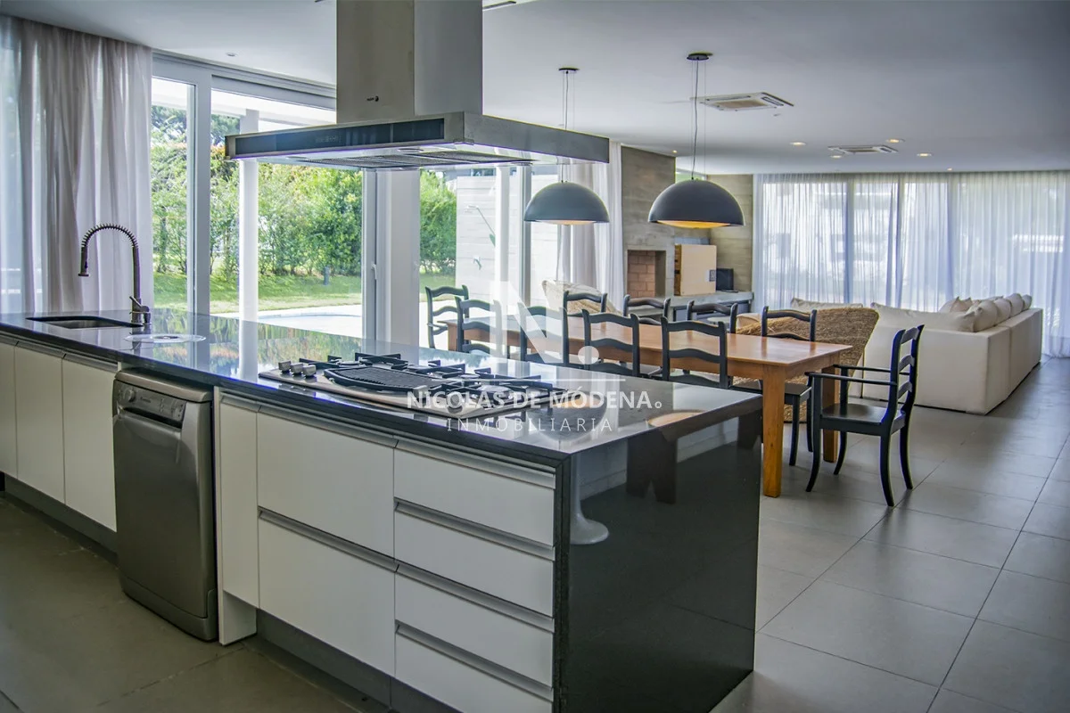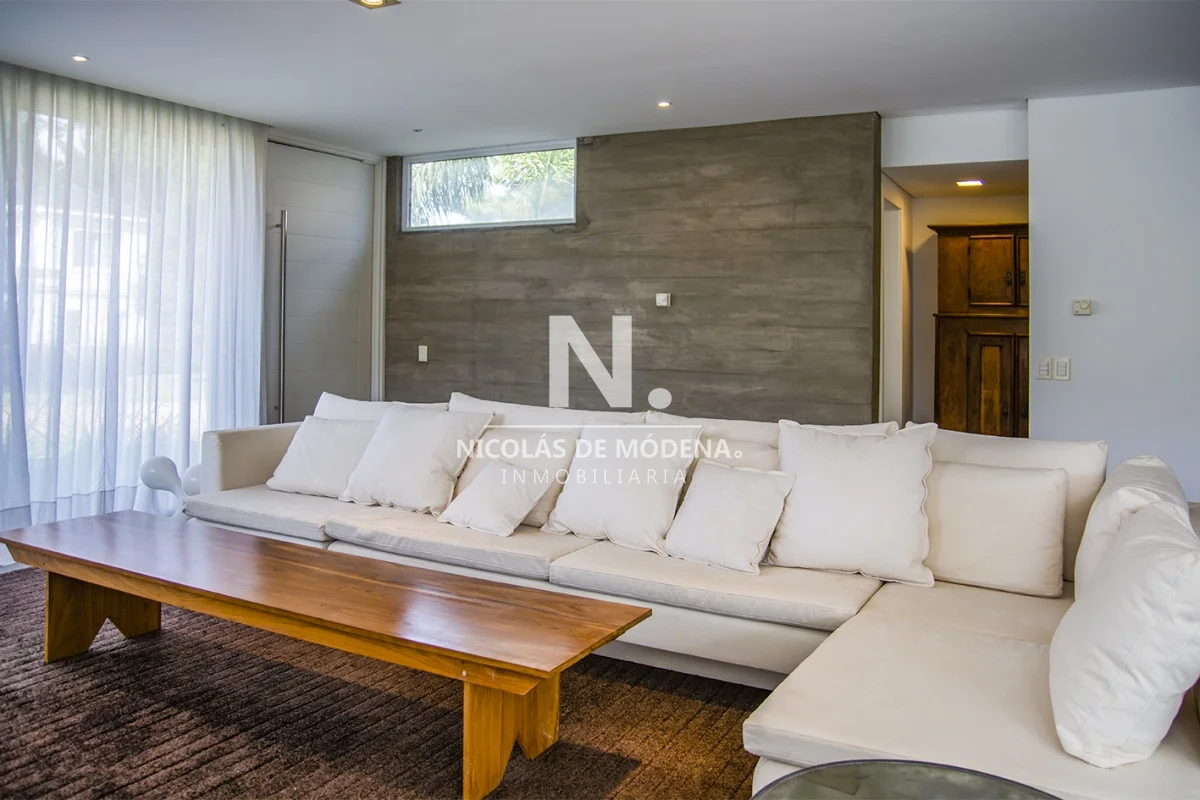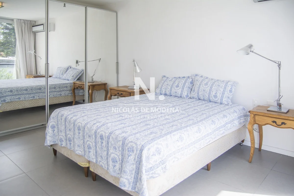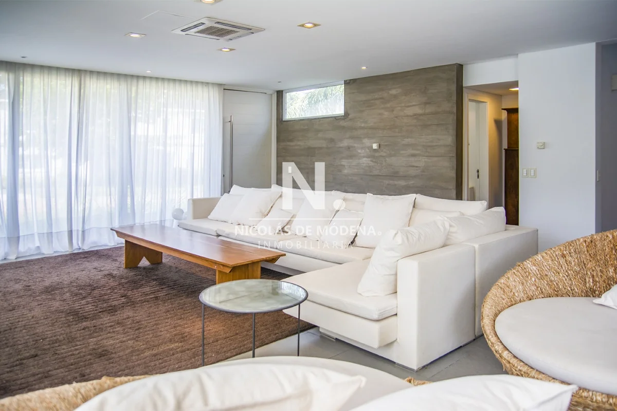 Esta casa en la Mansa, Punta del Este, ofrece una experiencia de alojamiento amplia y lujosa a tan solo 400 metros del mar. Con 5 dormitorios y 5 baños, todos en suite, la propiedad tiene capacidad para alojar a 10 personas con un total de 5 camas, proporcionando un espacio espacioso y cómodo, con una cocina de tipo americana que está equipada con anafe, microondas, lavavajilla, heladera con freezer y horno. El área de living comedor brinda un espacio abierto y acogedor para la convivencia teniendo en cuenta que incluye aire acondicionado y TV,