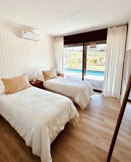Construcción nueva con excelente te gusta decorativo, tiene tres dormitorios (uno de ellos en suite) los cuales se encuentran en planta baja con salida a la piscina .
