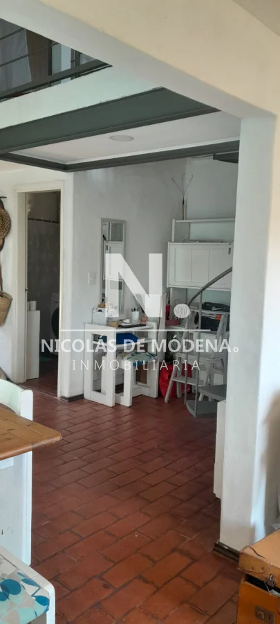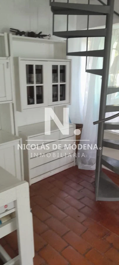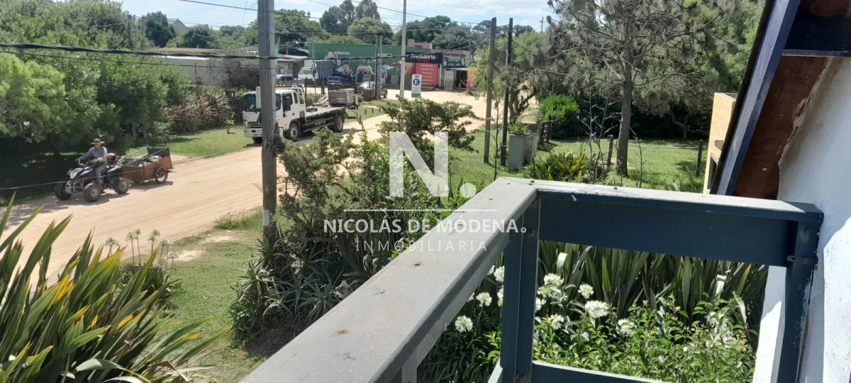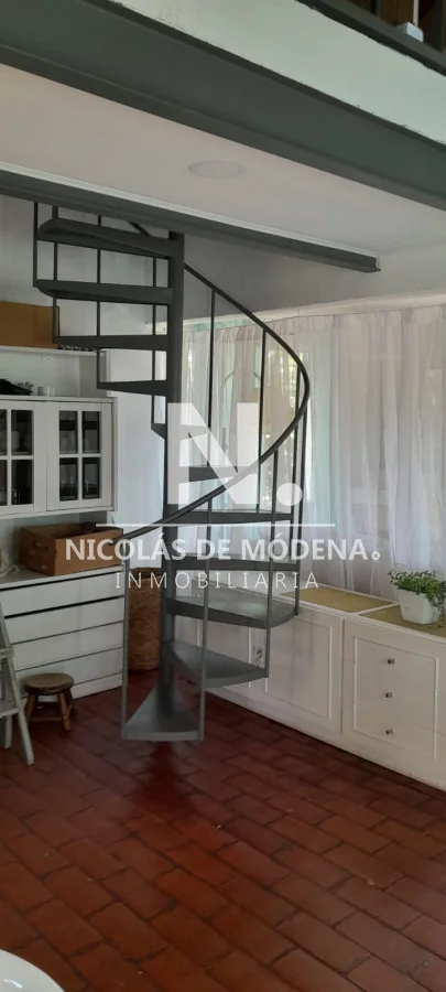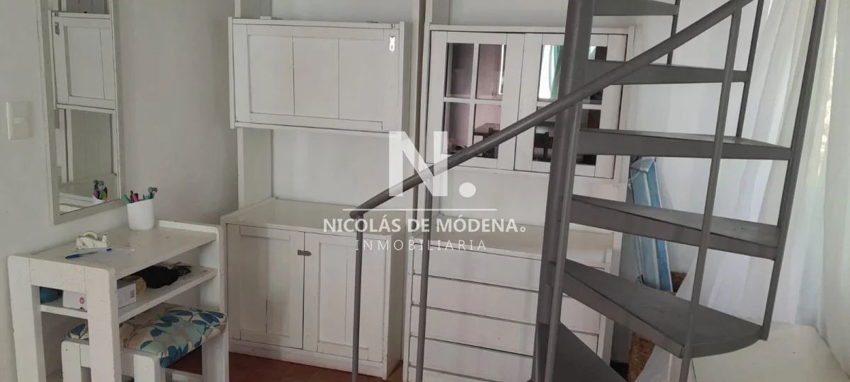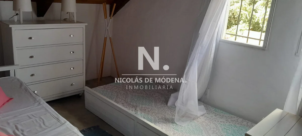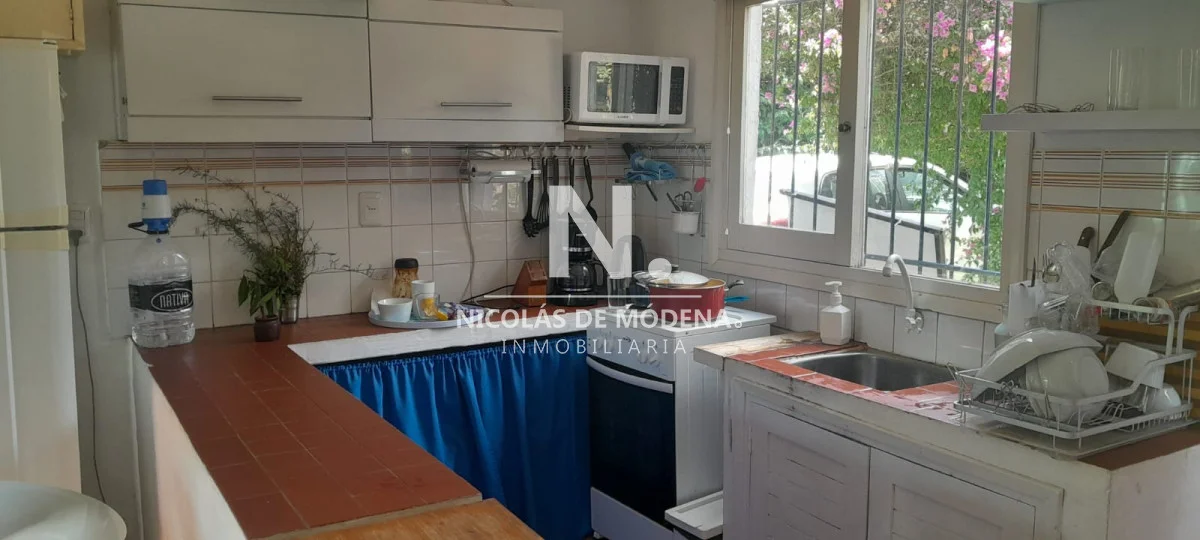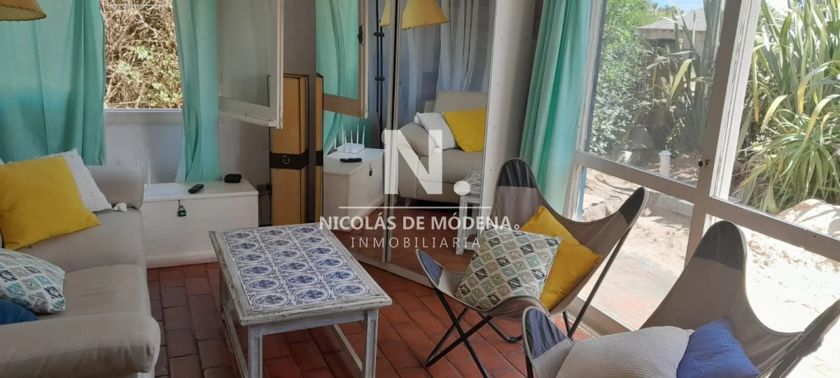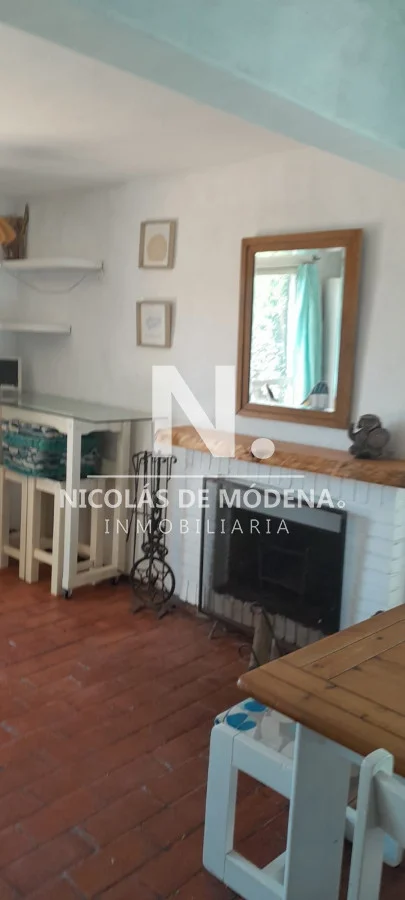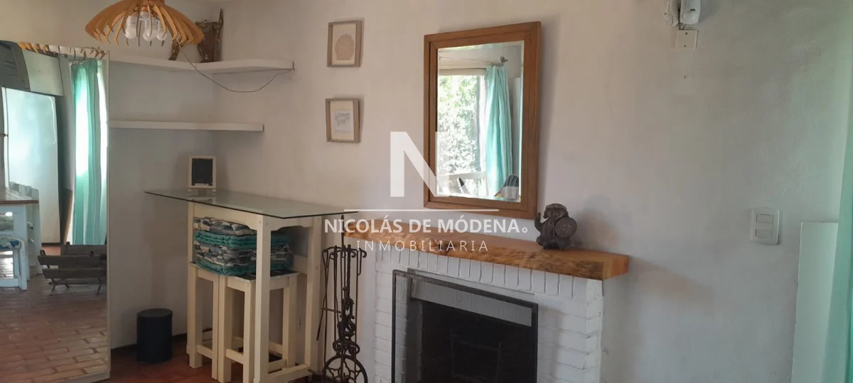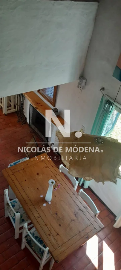 Casa estilo cabaña desarrollada en 2 plantas a 150 m del mar. Living comedor con estufa a leña, cocina integrada.