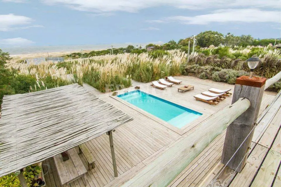 Casa en venta en Balneario Buenos Aires. Con una muy buena ubicación a metros de Ruta 10, muy fácil acceso. Con vista directa al mar, esta casa se desarrolla en dos plantas y esta distribuida en tres terrenos. La casa cuenta con 5 dormitorios en suite, la suite principal cuenta con una hermosa terraza. Cuenta con loza radiante y aire acondicionado en cada ambiente. Habitación de servicio con baño. Garage con capacidad para dos autos. . Caracteristicas: BALCON, COMEDOR, DORMITORIO EN SUITE, GARAJE, SOLARIUM, TOILETTE, VESTIDOR, CONEXI?N A INTERNET, ESTACIONAMIENTO, ESTUFA A LE?A, PARQUE, AGUA CORRIENTE, ALARMA, CALEFON, HELADERA, LAVARROPAS, LUZ ELECTRICA, MICROONDAS, TELEFONO, WIFI, VISTA AL MAR XINTEL (FRO-FRO-179)