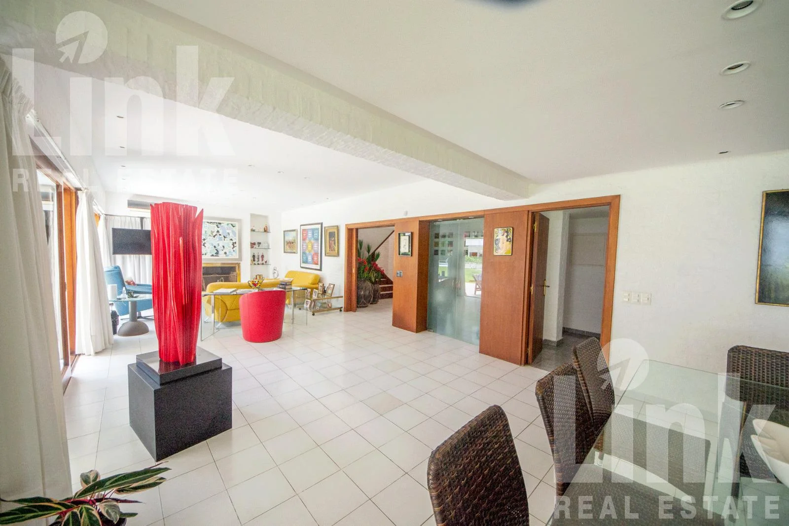 Esta excepcional residencia en el barrio del Golf se despliega sobre un terreno de 3.489 m2 con 700 m2 de construcción. La solidez de su estructura se destaca en esta casa, diseñada principalmente para un estilo de vida práctico y cómodo.