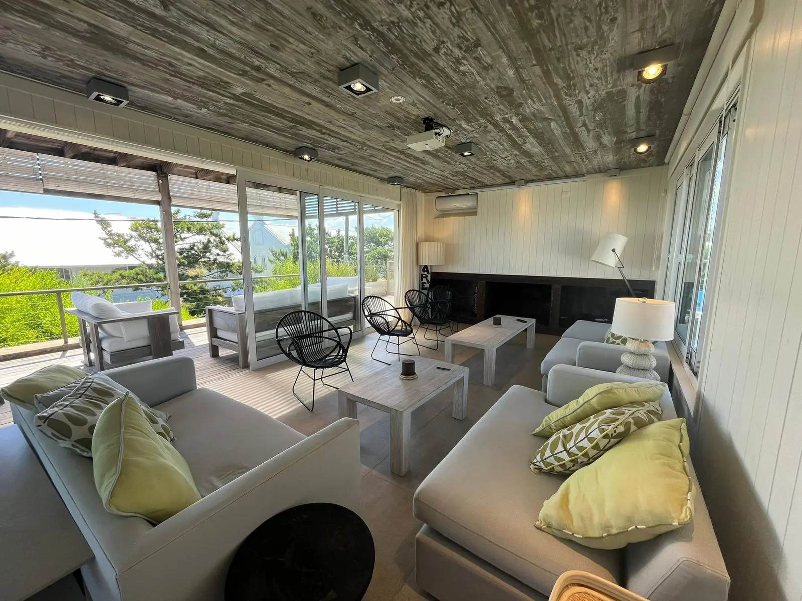 The upper floor features another living and dining room with a second fully equipped kitchen. It opens onto a terrace with an outdoor lounge and a large dining table, perfect for enjoying the best sunsets every day. The master suite, complete with a walk-in closet and bathroom, is also located on this floor.