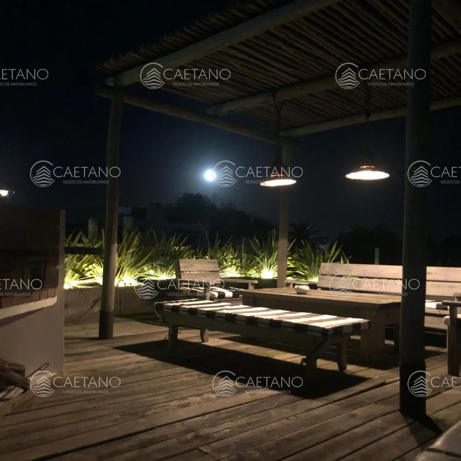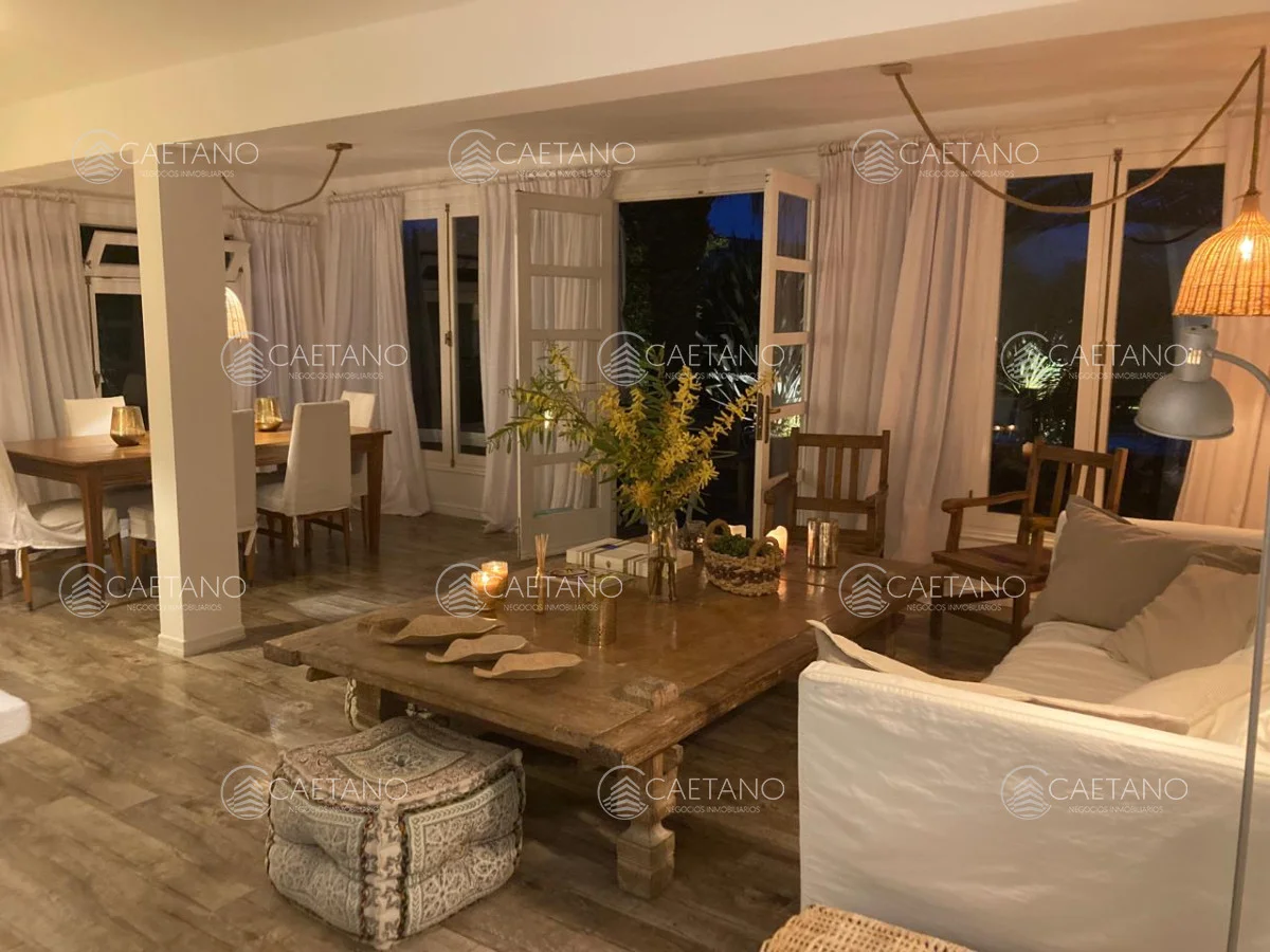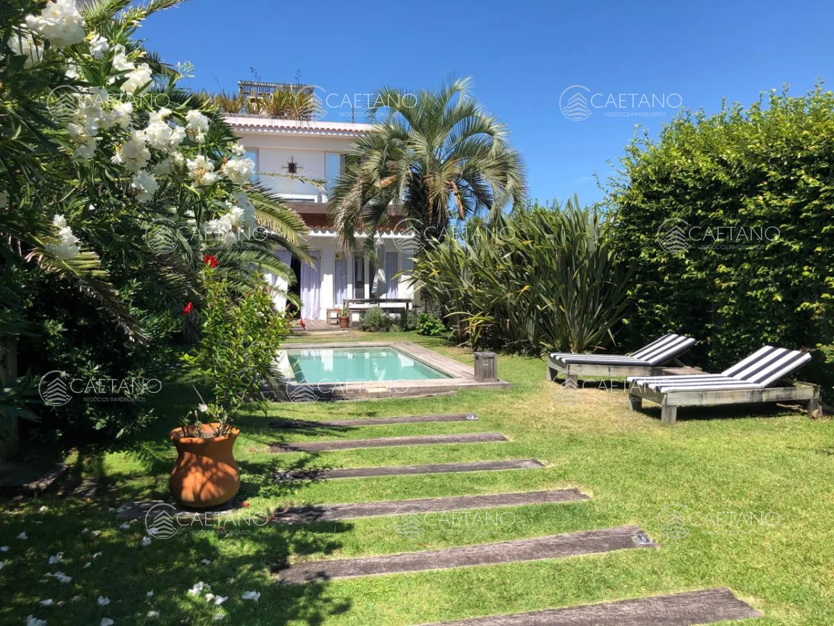 Divina casa con ubicación única de la ruta al mar en La Barra a pasos de la Posta del Cangrejo. En dos niveles, cuenta con living comedor amplio y luminoso con salida al jardín, cocina definida, 2 dormitorios en planta baja. Entrada independiente por escalera al segundo nivel donde se encuentra la gran master suite con vista al mar con hogar, gran terraza con vista espectacular y solarium. Jardín todo cercado con pileta. Muy linda equipada y decorada con estilo cálido y armonioso. Ideal para disfrutar de la cercanía al mar