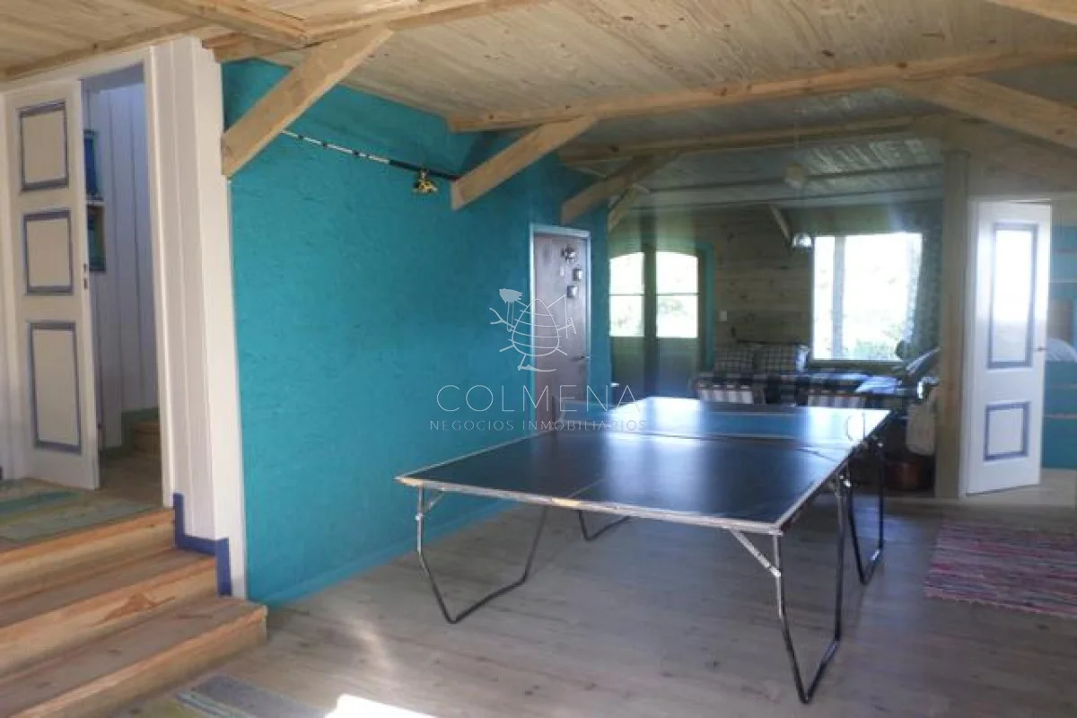 Luminosa, amplia y acogedora casa muy cerca de la playa con vista. En dos platas, P.B 2 dormitorios, 1 baño, 1 toillete, gran estar tipo playroom con dos camas. P.A gran living-comedor con cocina integrada, amplias terrazas, dos dorm. y dos baños.
