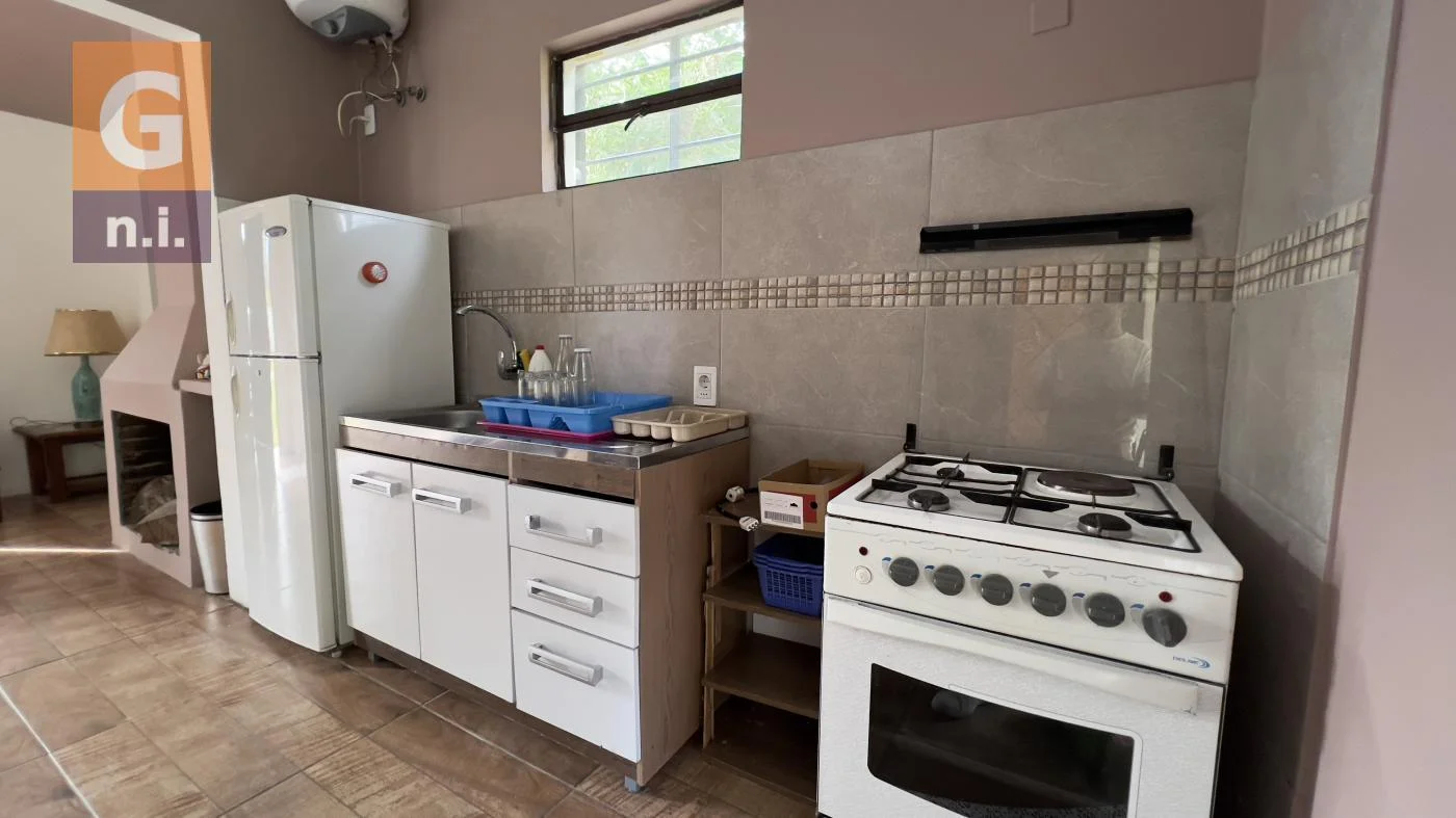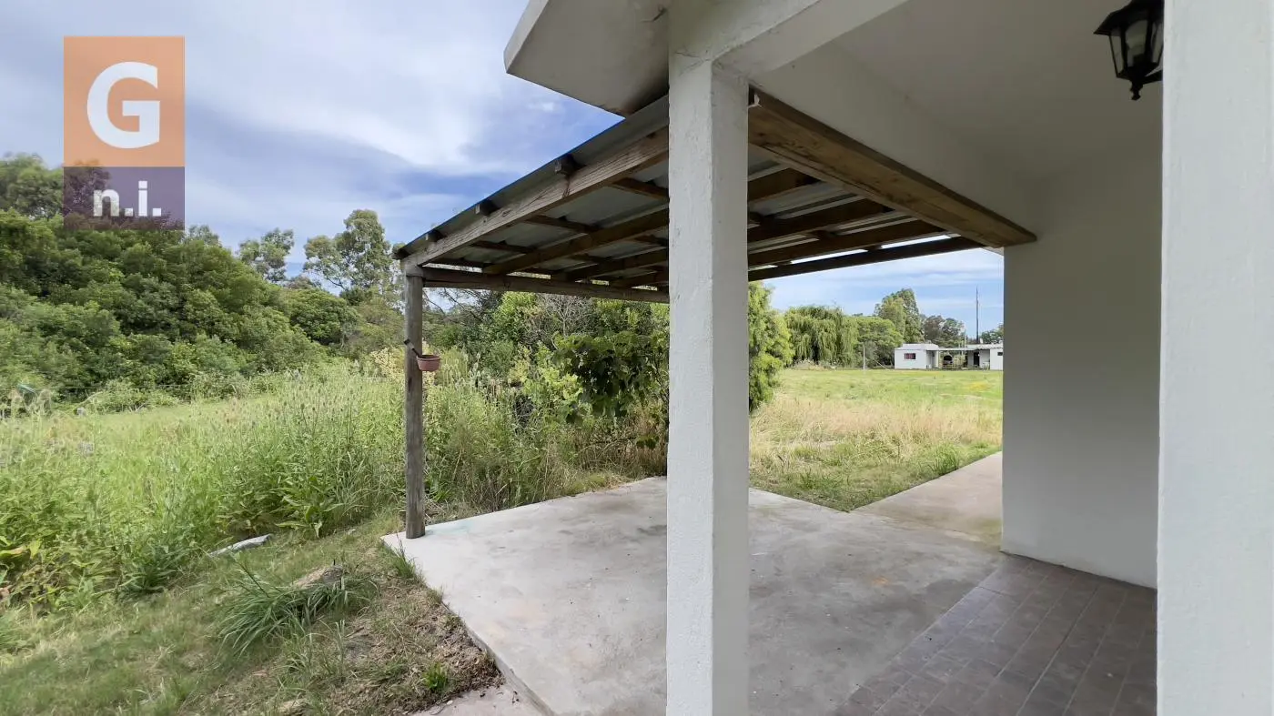 Casa a pasos de la Ruta Interbalnearia, de construcción tradicional, techo de planchada, pisos de cerámica, aberturas de aluminio y madera. Distribuida en living-comedor con estufa a leña, cocina kitchenette y baño completo, cuenta con 2 dormitorios y amplio patio interno.