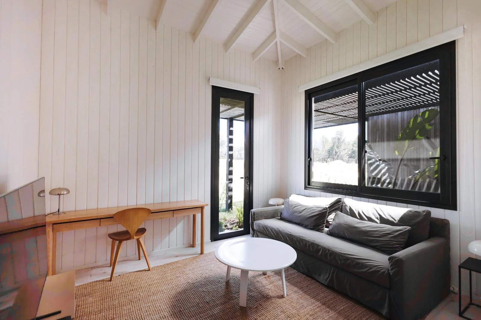 Piscina, jardín y proyector en el living