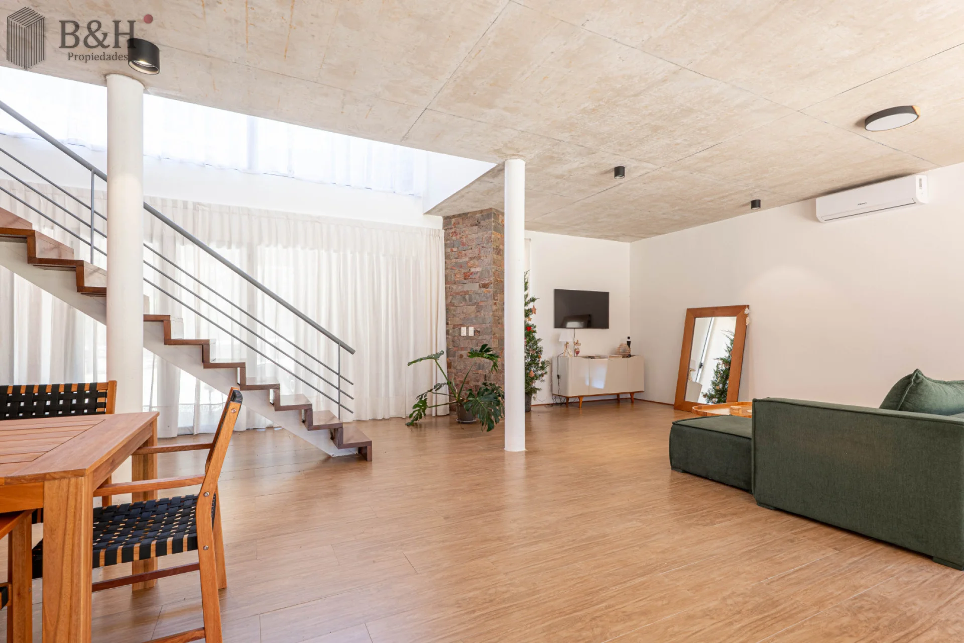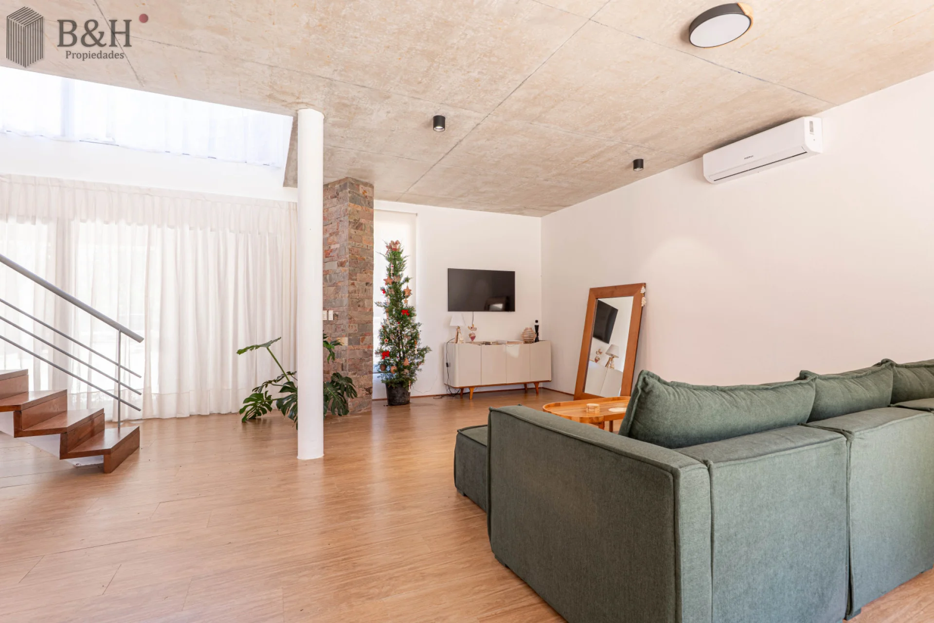 Cuenta con 3 dormitorios, 2 baños, toilette, cocina integrada y un living comedor luminoso con salida a galería con parrillero. Además, dispone de habitación de servicio con baño.