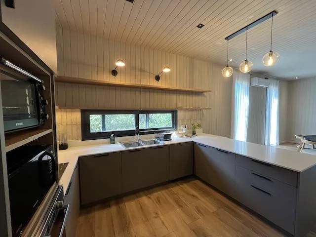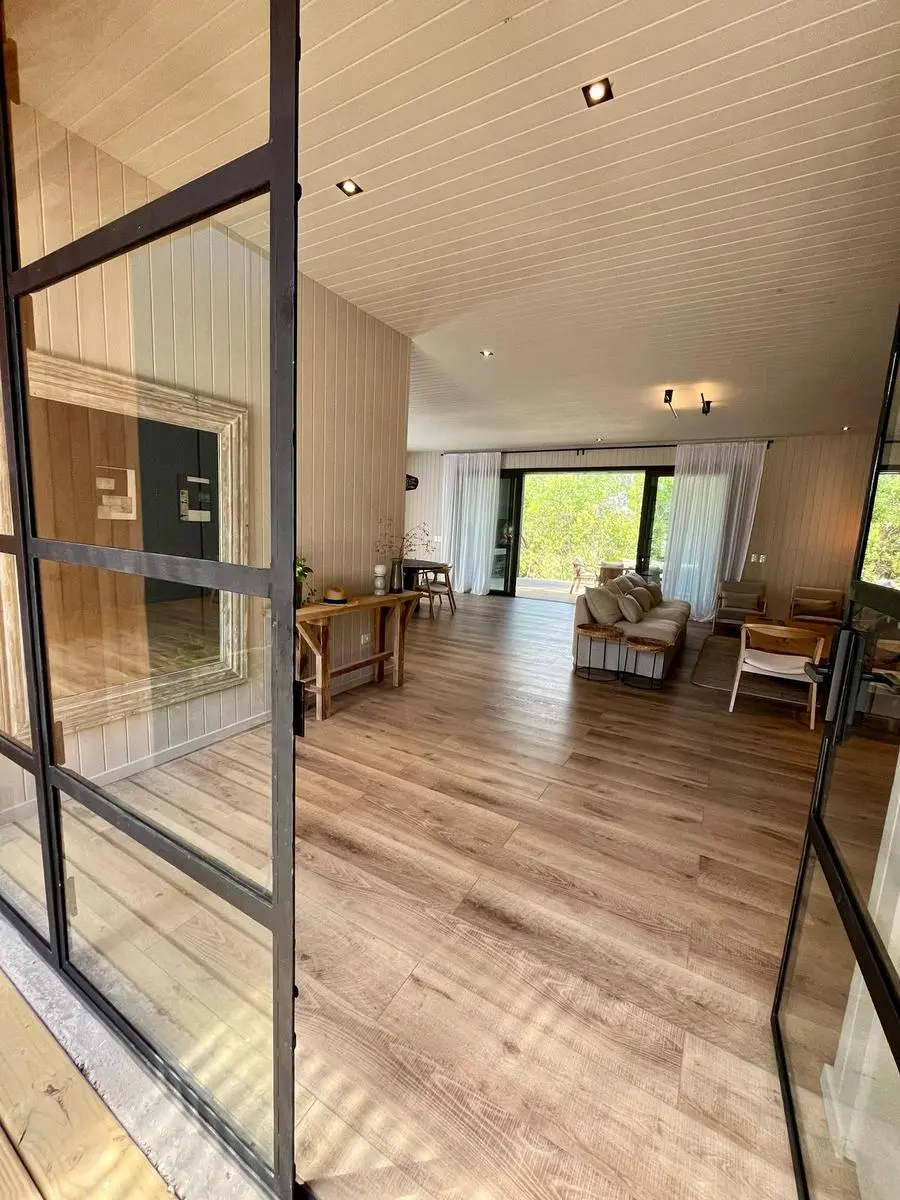 The house is all on one level and is distributed as follows: Upon entry, there is a hallway, followed by the living and dining room area and the integrated kitchen. Everything is of top quality.