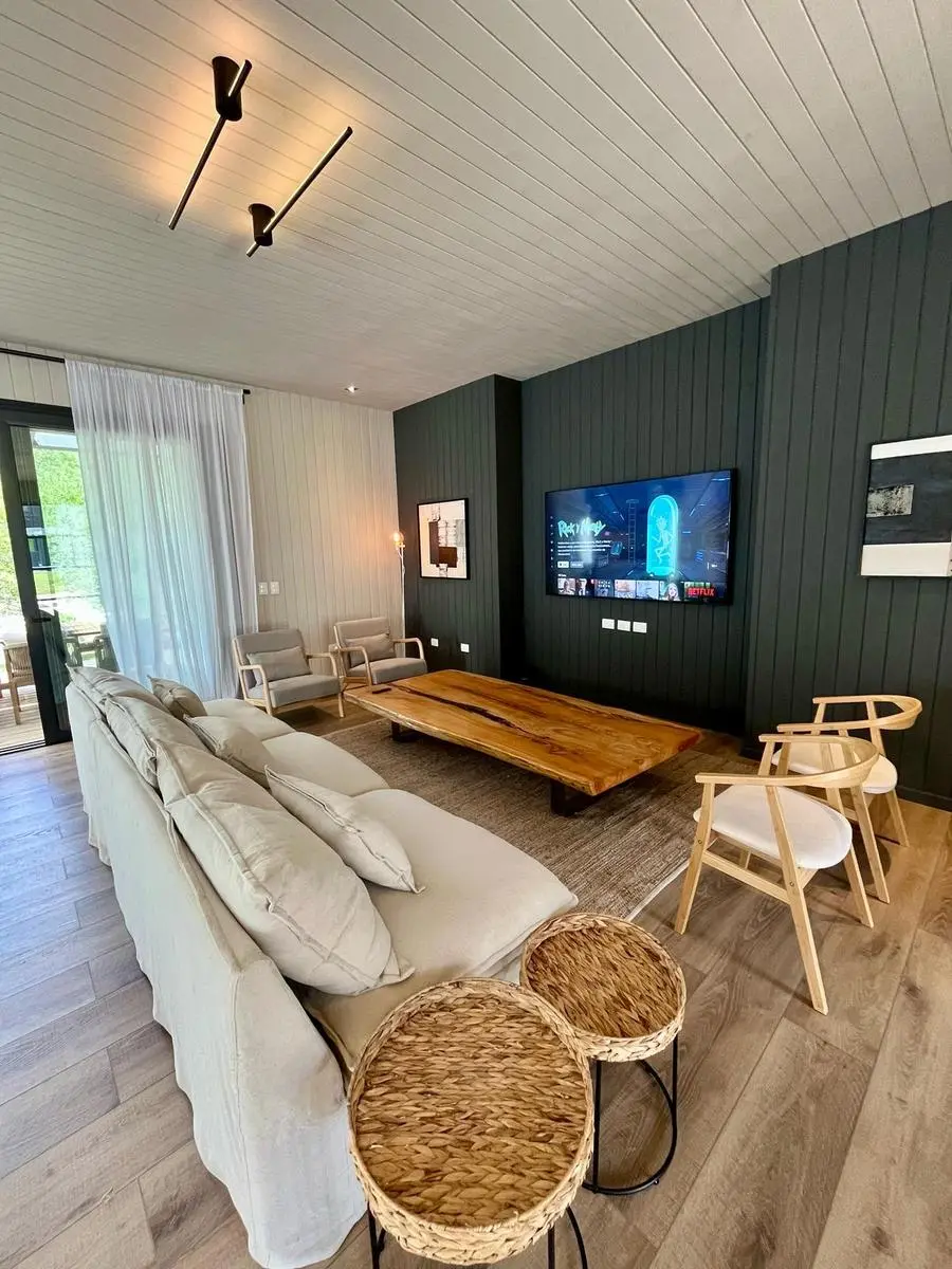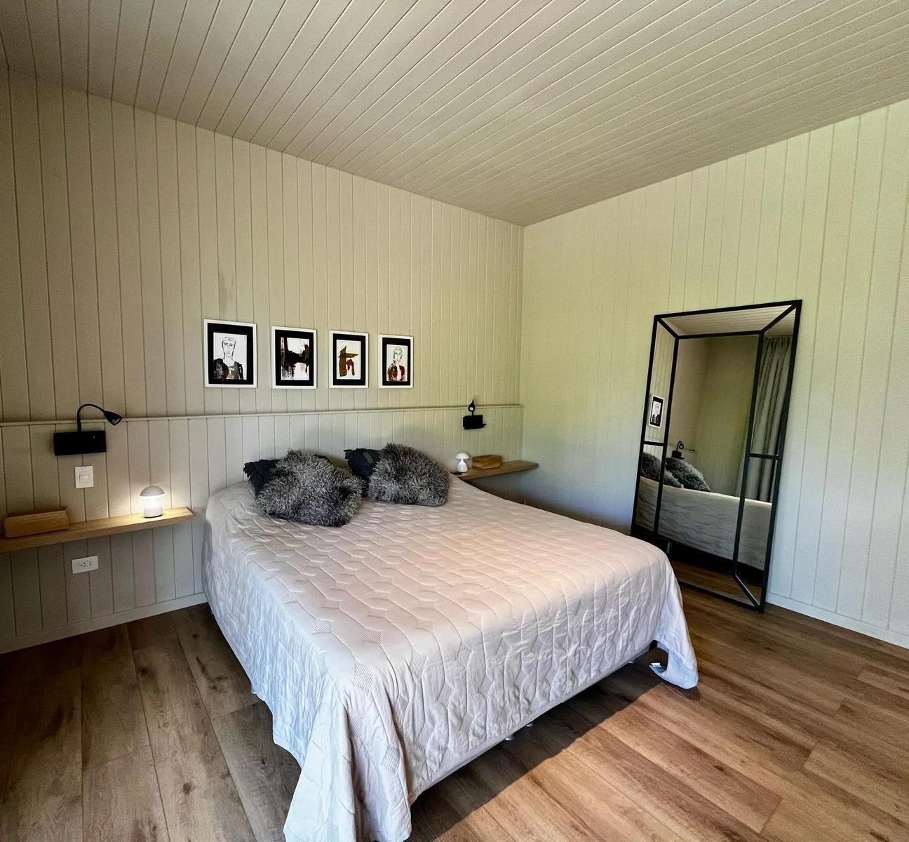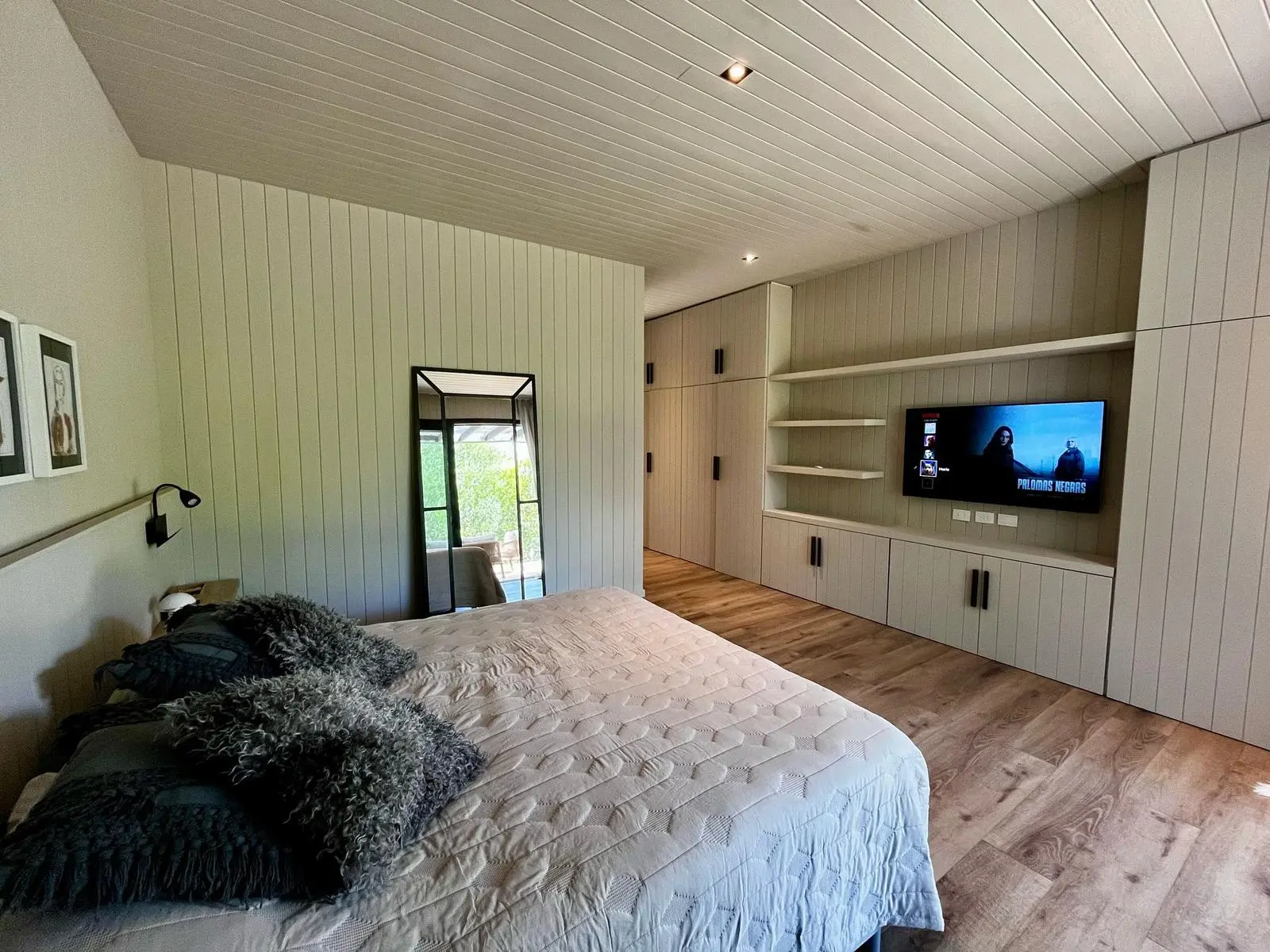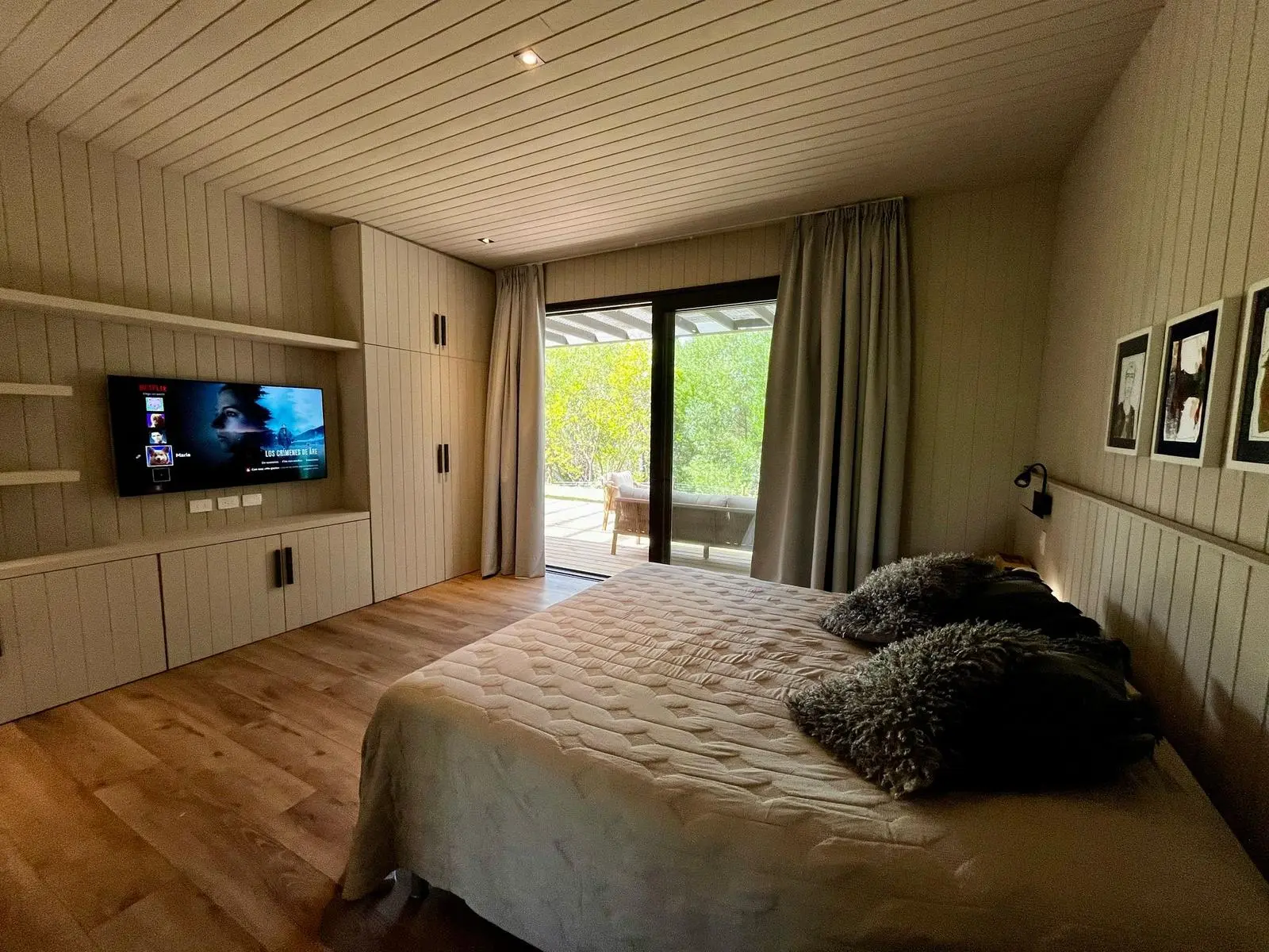 La suite principal mira al bosque y cuenta con vestidor. Luego dos suites mas completando tres comodos dormitorios.