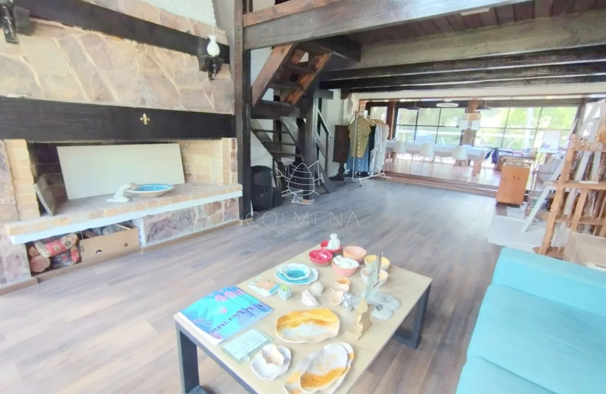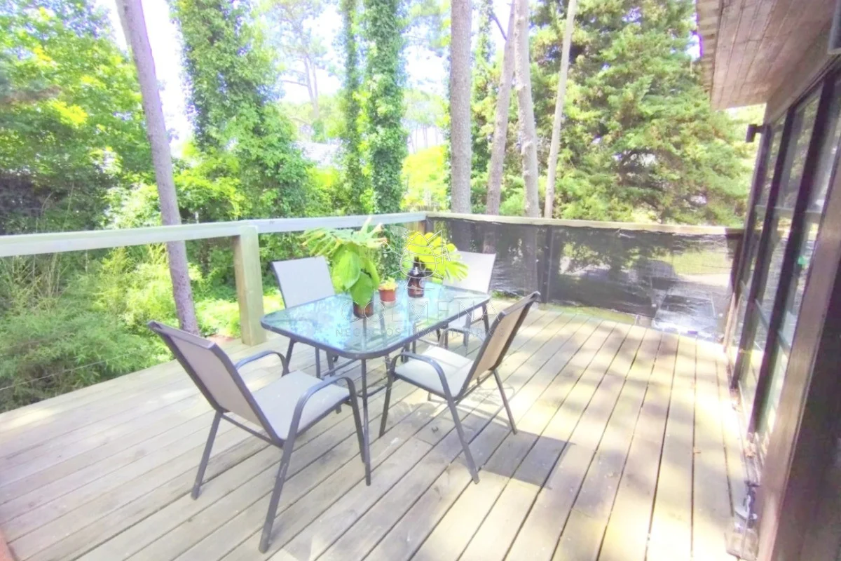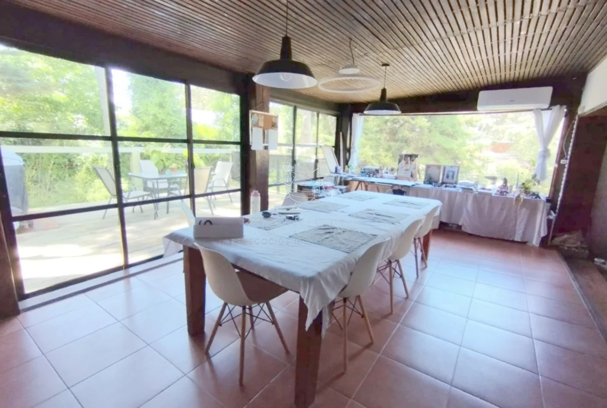 El comedor principal se encuentra estratégicamente entre la cocina y el deck exterior con parrillero y mesa para 12 comensales, cuenta a la vez con calefacción por estufa a leña individual y un gran aire acondicionado.