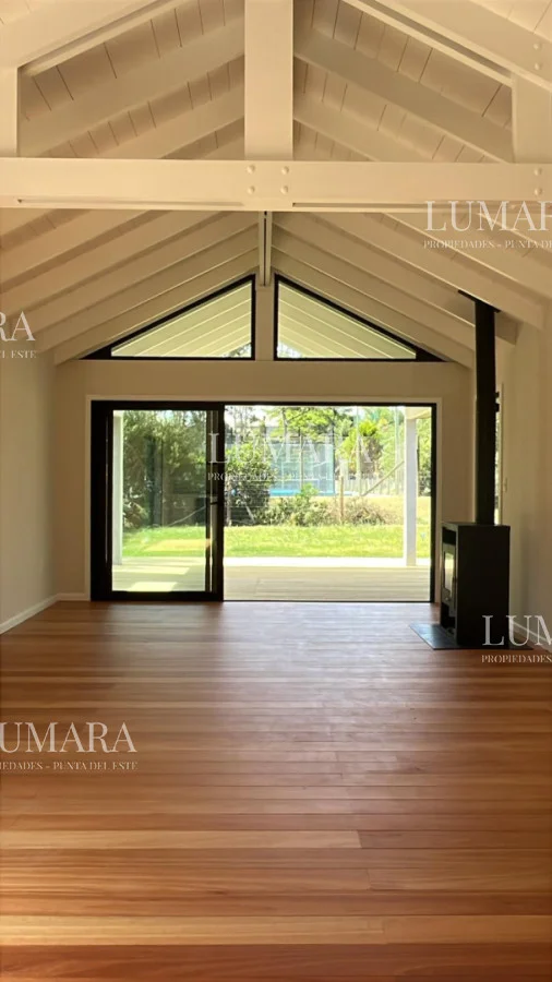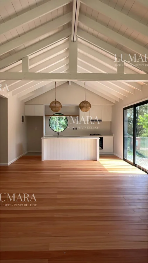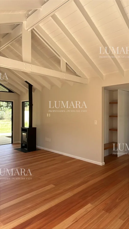 INTERIORES: CIELORASOS EN LAMBRIZ DE MADERA NATURAL. PISOS DE MADERA NATURAL DE EUCALIPTUS GRANDIS PLASTIFICADOS. PISOS DE BAÑOS EN MICROCEMENTO. PINTURA INTERIOR CON 3 MANOS DE INCALEX O SIMILAR INSTALACIÓN ELÉCTRICA CON MATERIALES DE PRIMERA CALIDAD. TABLERO ELÉCTRICO COMPLETO. PREVISIÓN PARA ENTRADAS DE CABLETV. TOMAS ELÉCTRICAS Y SPOTS LEDS EN EL CIELORRASO DE YESO. LUCES EXTERIORES Y PREVISIÓN PARA LUCES INTERIORES DECORATIVAS. CANALIZACIÓN PARA CAMARAS DE SEGURIDAD.