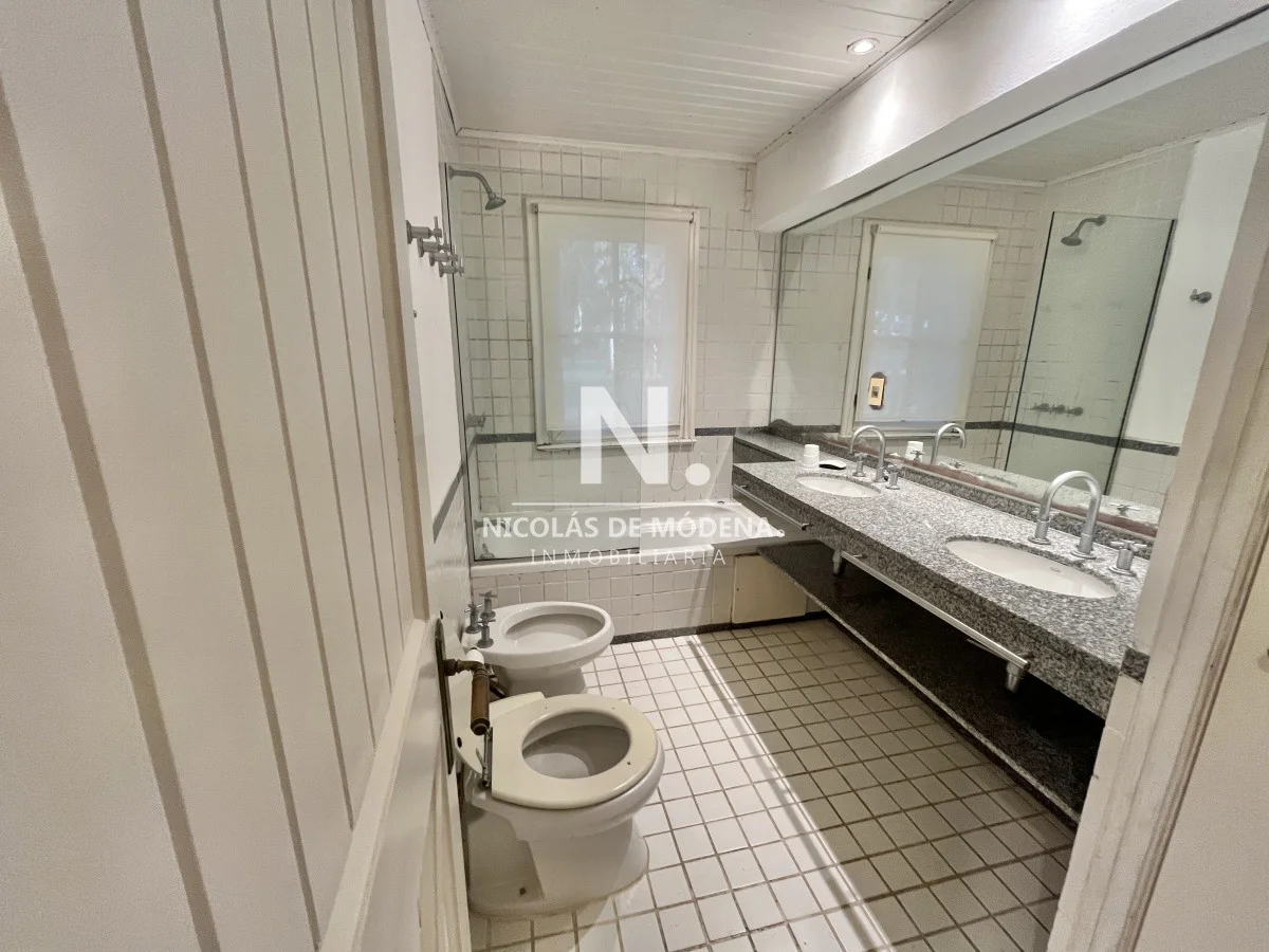 Planta baja: Hall de entrada, toilette. Dormitorio principal en suite con vestidor. Living amplio muy luminoso, comedor, ambos con salida a decks de madera, parrillero techado y jardín cercado. Cocina muy bien equipada, lavadero y garage.