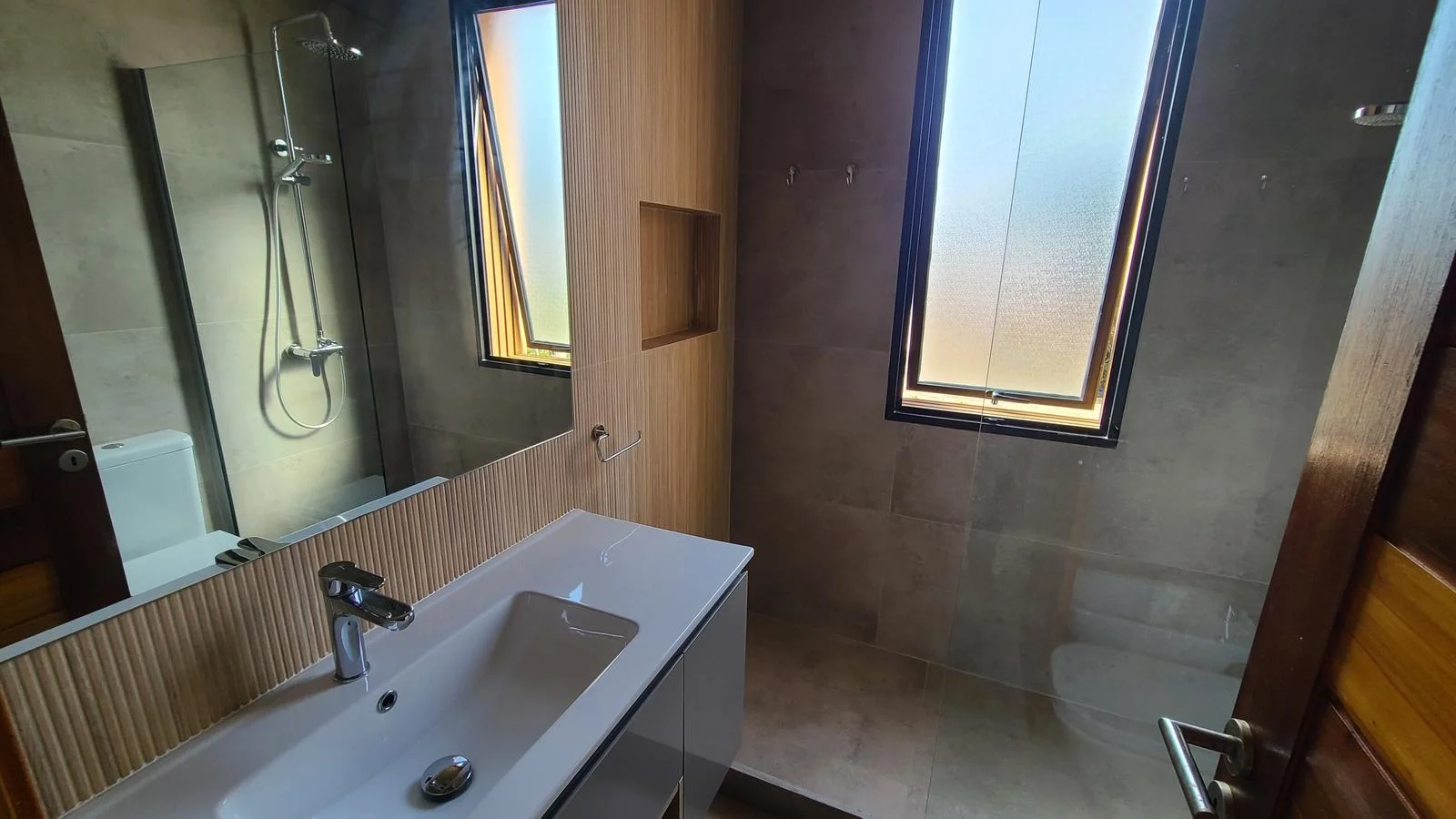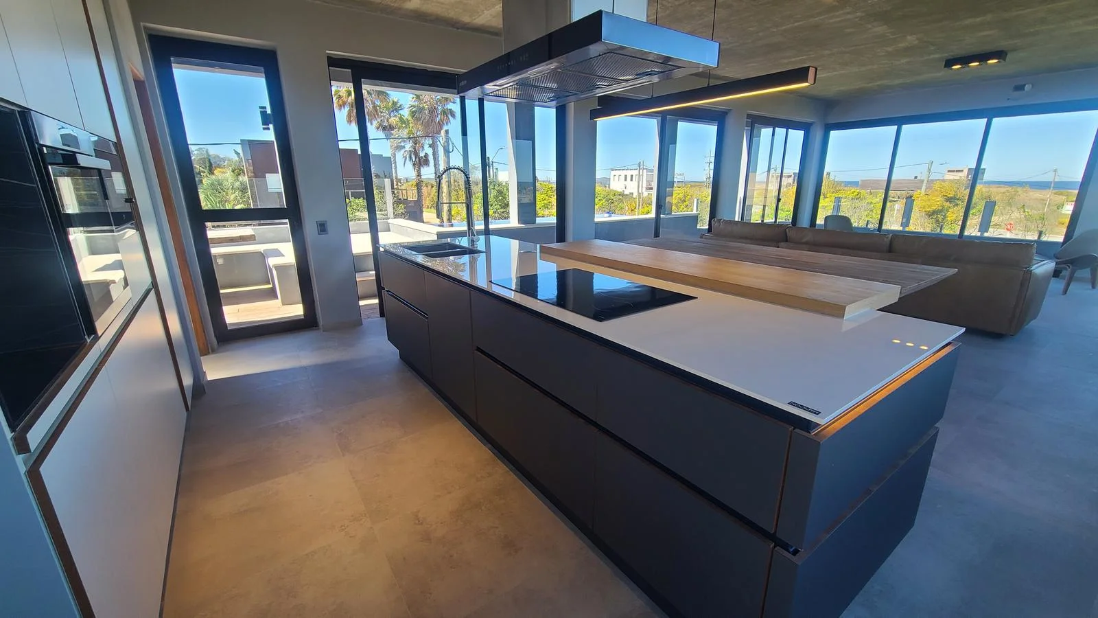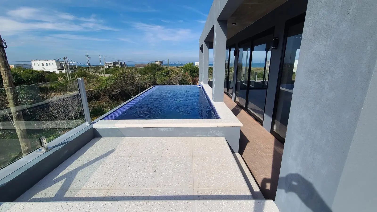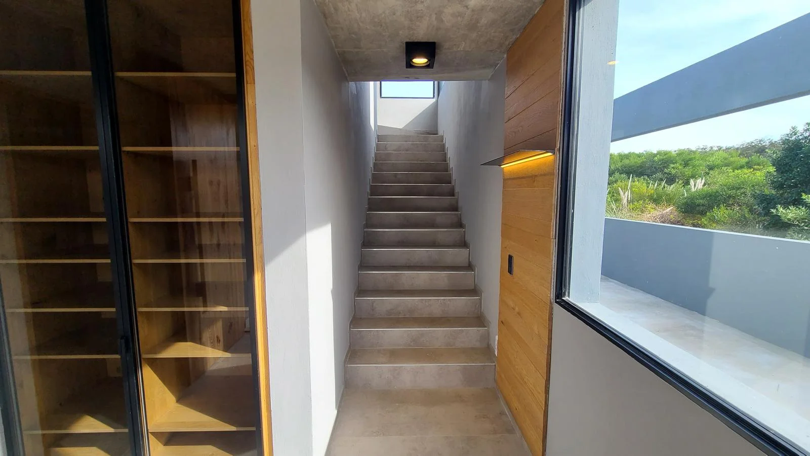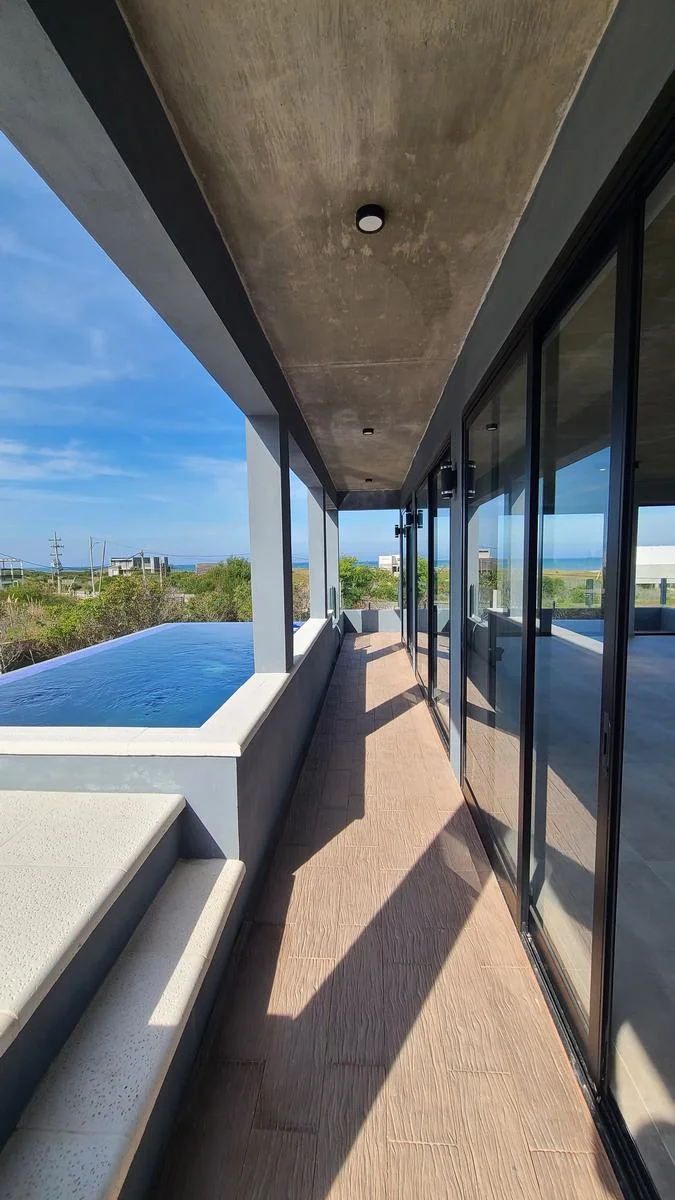 En la planta baja, un amplio hall de entrada con detalles de diseño y una puerta de madera maciza de pinotea. Tres dormitorios, dos baños y grandes ventanales que aportan luz natural y vistas al mar.