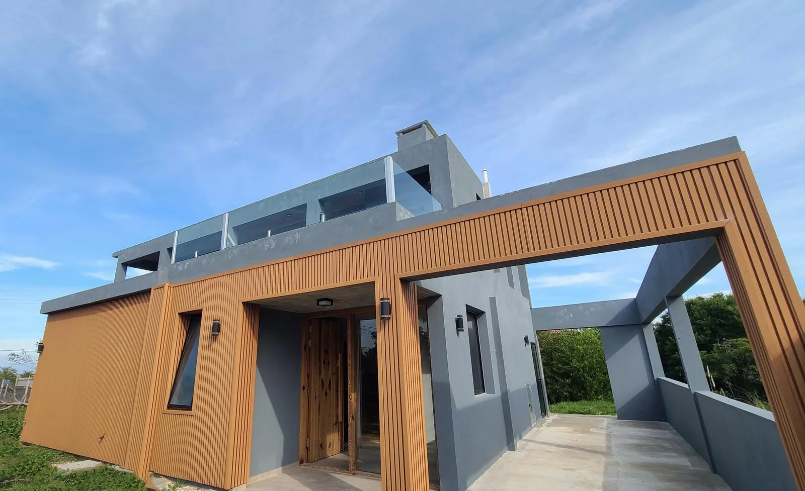 Ventanas con marco de aluminio y vidrio laminado, revestimiento exterior de WPC, con estufa española alto rendimiento ( sistema pelets), área de lavandería, cochera para tres vehículos, ducha exterior y amplio espacio de almacenamiento.