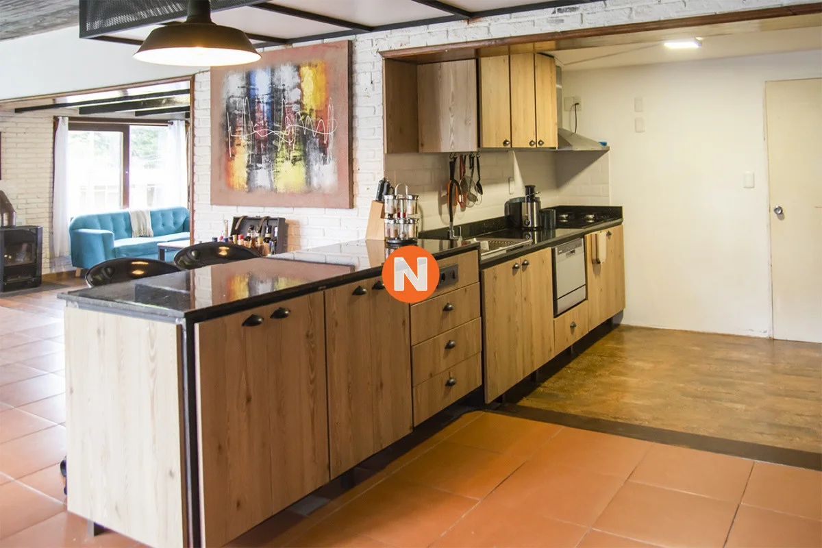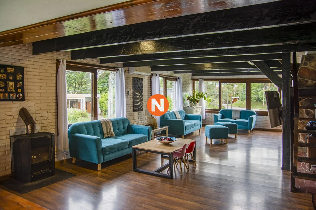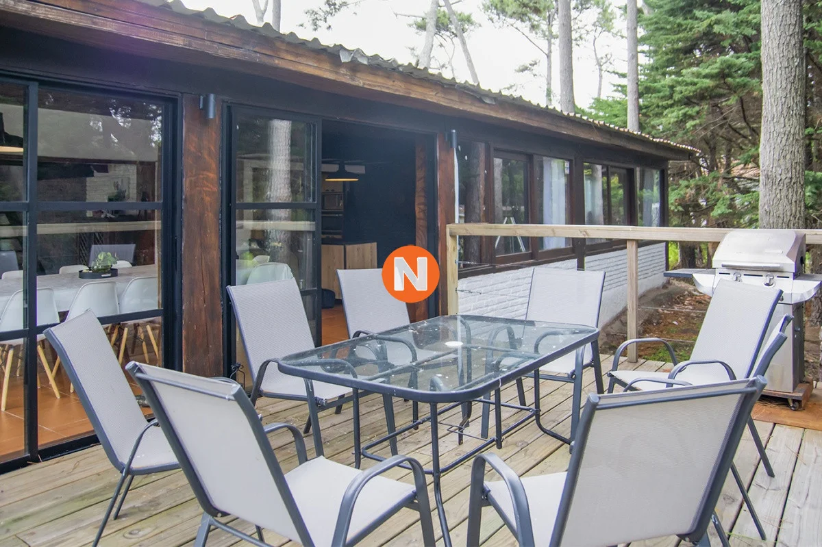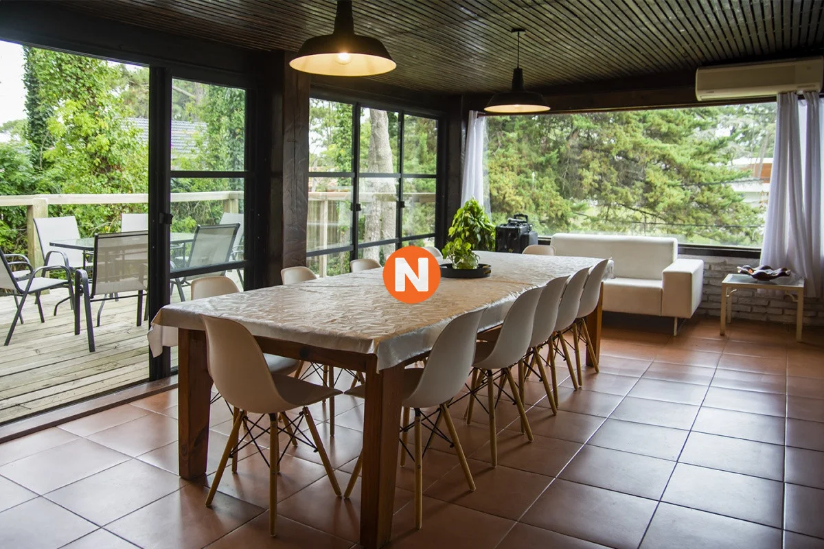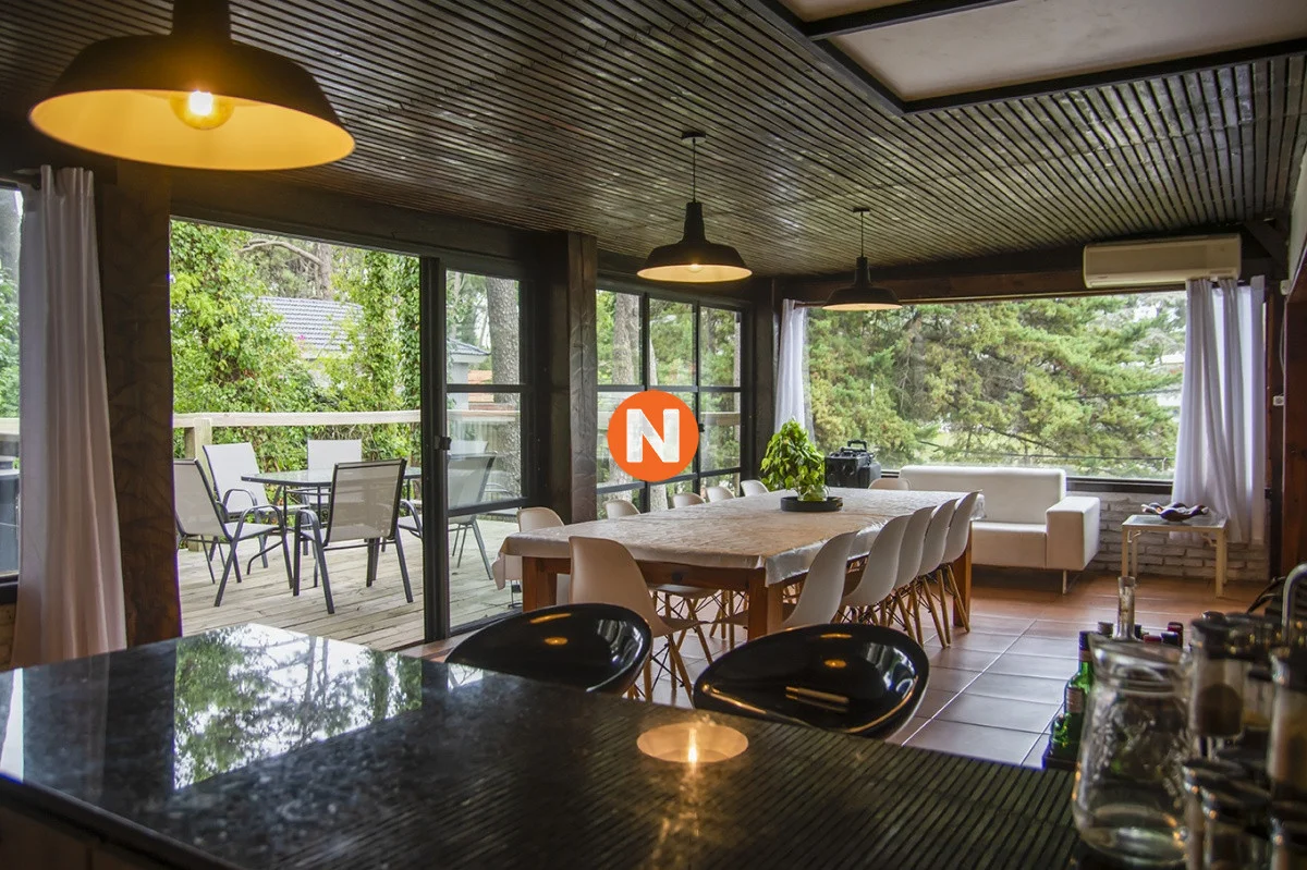 El comedor principal se encuentra estratégicamente entre la cocina y el deck, cuenta a la vez con calefacción por estufa a leña de alto rendimiento y un gran aire acondicionado.