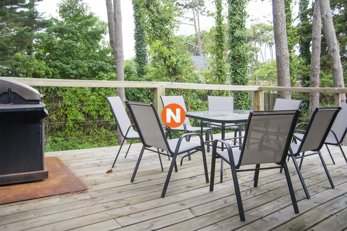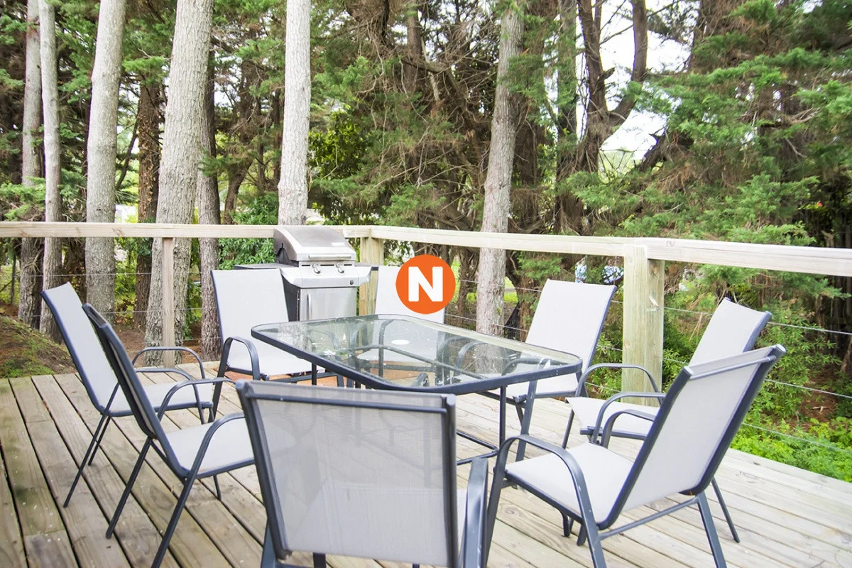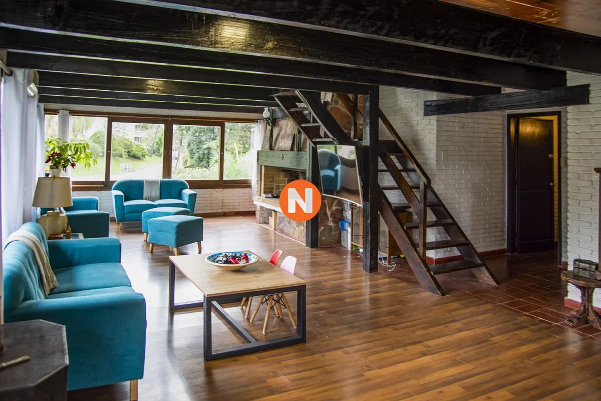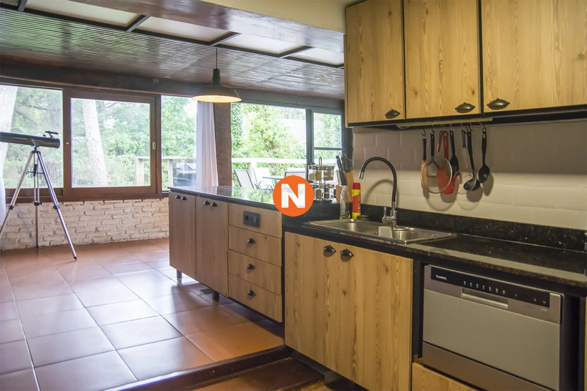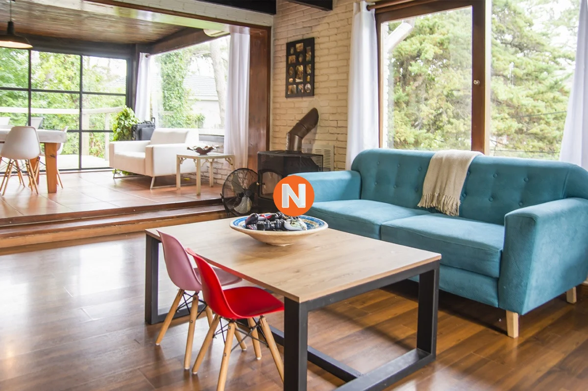 El comedor principal se encuentra estratégicamente entre la cocina y el deck, cuenta a la vez con calefacción por estufa a leña de alto rendimiento y un gran aire acondicionado.