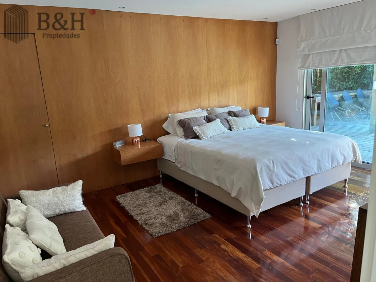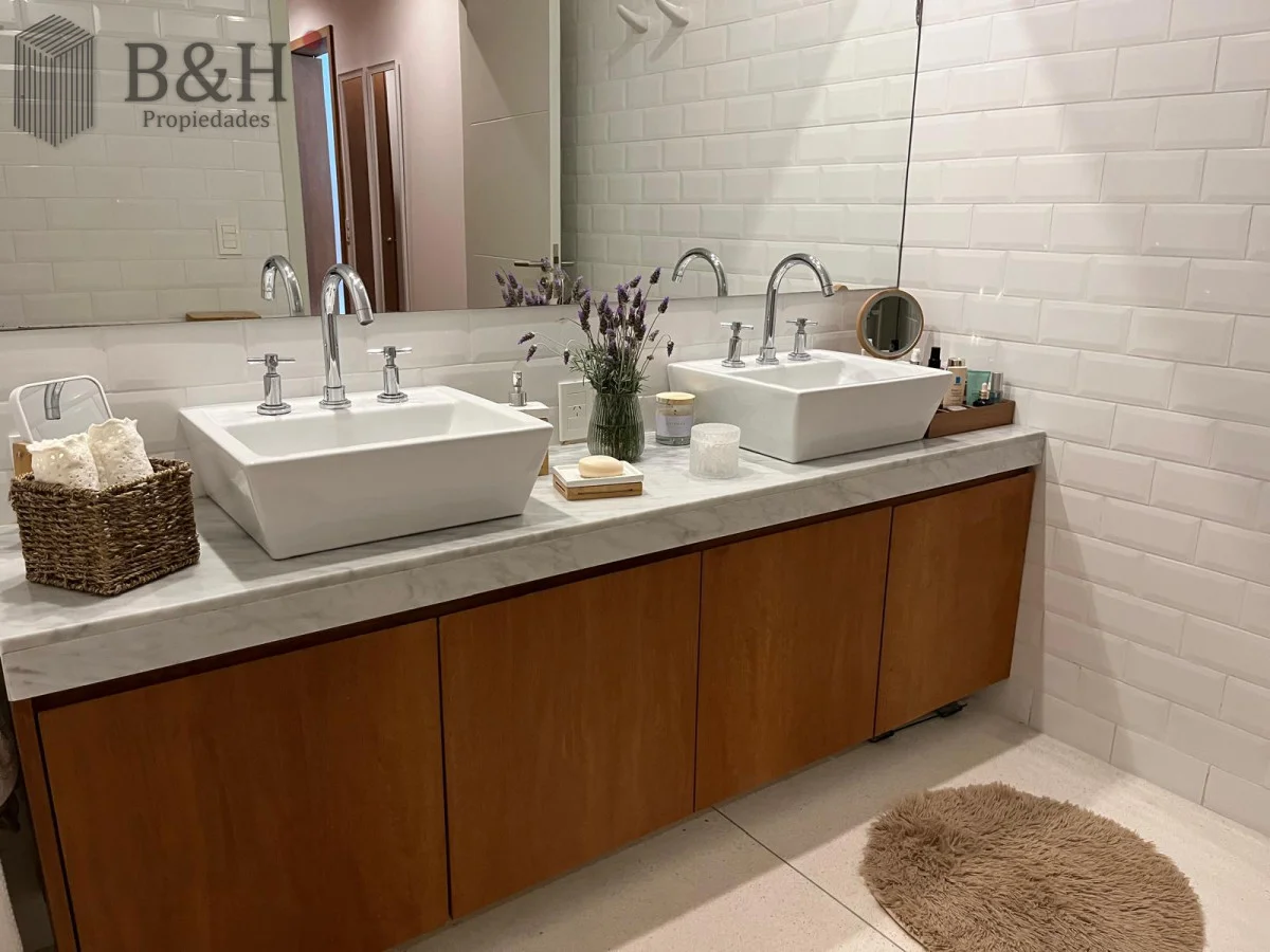 La propiedad cuenta con tres dormitorios en suite, todos bien distribuidos y con excelentes niveles de iluminación natural. Los dormitorios están equipados con placares amplios, aire acondicionado y baños completos que incluyen bañera y bidet, ofreciendo el máximo confort a residentes e invitados.