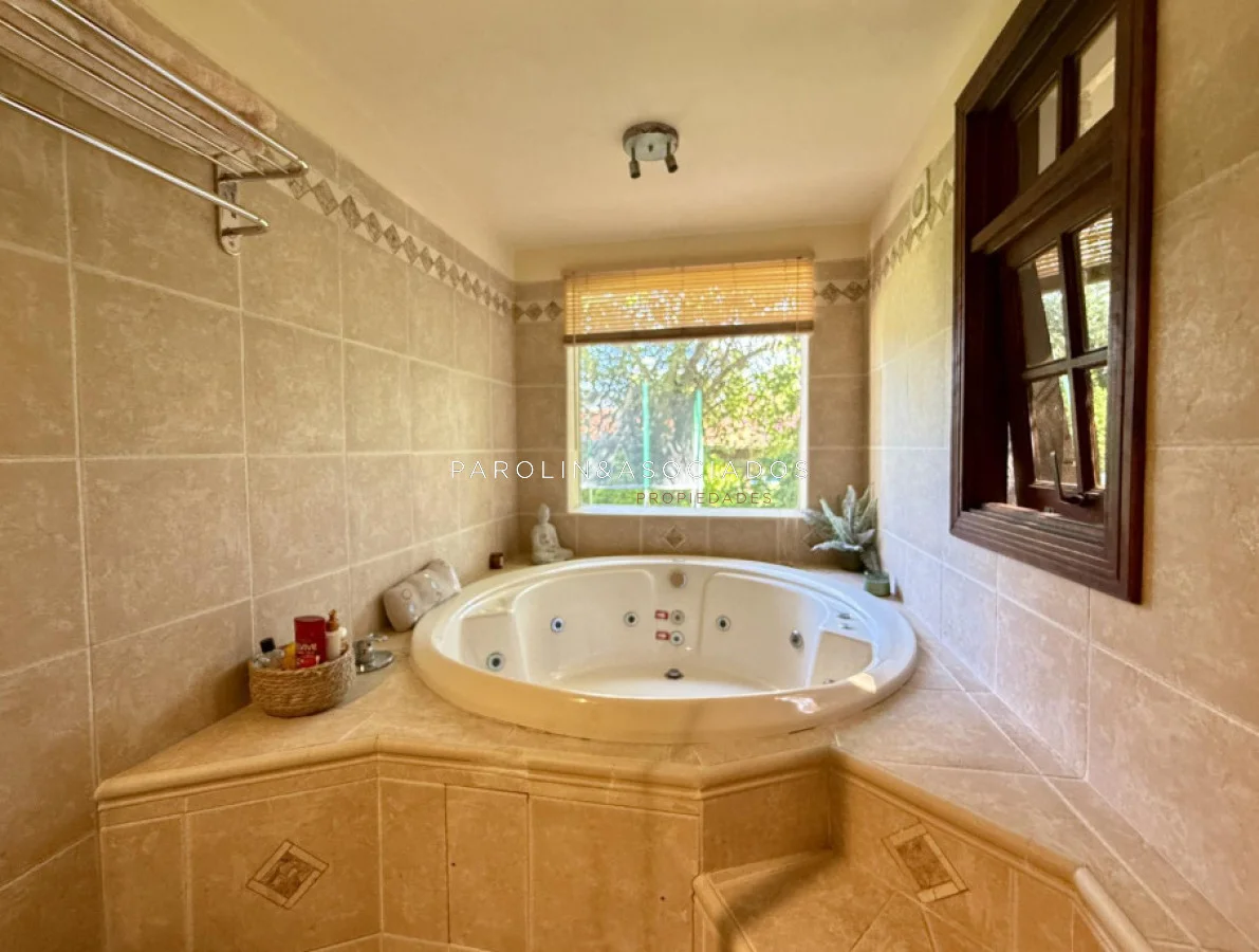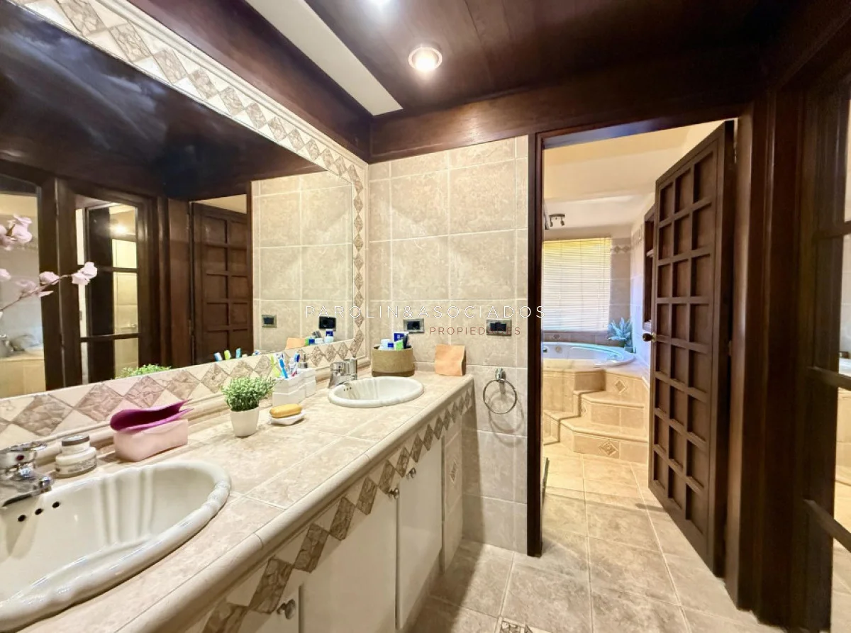 En el exterior, ofrece piscina climatizada, parrillero techado y garage cerrado para dos autos.
