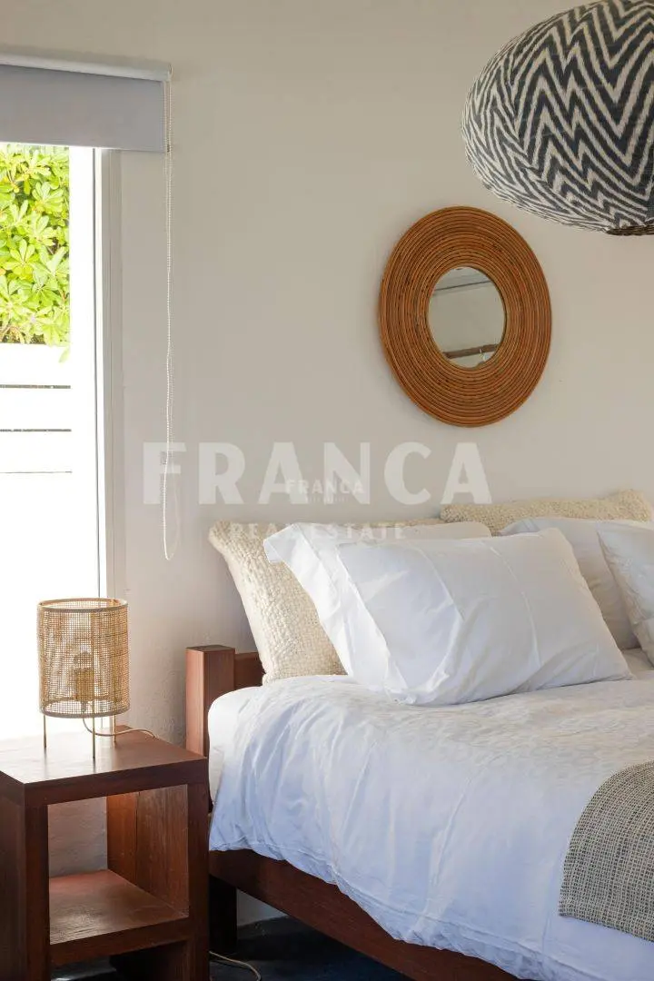 Venta de Casa en La Barra, Maldonado En una ubicación privilegiada en el centro de La Barra, a pocos pasos del océano, se encuentra esta destacada propiedad. En un terreno de 800 metros, el arquitecto Diego Montero llevó a cabo un proyecto impresionante de renovación, fiel a su estilo, con líneas rectas y limpias, combinadas con el encanto tradicional de La Barra. Esta residencia logró combinar de manera armoniosa la intimidad y la generosidad de sus espacios. Dispone de una amplia suite en la planta baja, comedor, sala de estar, cocina y área de servicio con entrada independiente. En el piso superior, se encuentra una suite importante y una terraza con vista al mar, así como dos dormitorios espaciosos que comparten un baño completo. Además, cuenta con una moderna casa de huéspedes que se abre al jardín. Los amplios decks, la piscina y las galerías complementan este lugar con un gusto exquisito en su decoración. . Caracteristicas: BALCON, DEPENDENCIA DE SERVICIO, DORMITORIO EN SUITE, GARAJE, LIVING COMEDOR, TOILETTE, ESTUFA A LE?A, HOGAR, PARQUE, SANEAMIENTO, VISTA AL MAR, LAVADERO, APTO PARA FAMILIAS/NI?OS, CERRAMIENTO, ESTACIONAMIENTO, COCINA, LUZ ELECTRICA XINTEL (FRO-FRO-1538)