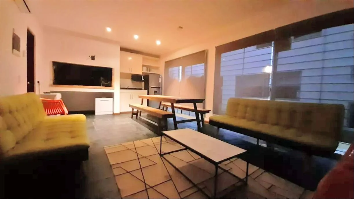 Espacio cerrado con dos sofácamas (1.5 plazas cada uno), TV, microondas, heladera con freezer, lavavajillas y cortinas blackout.